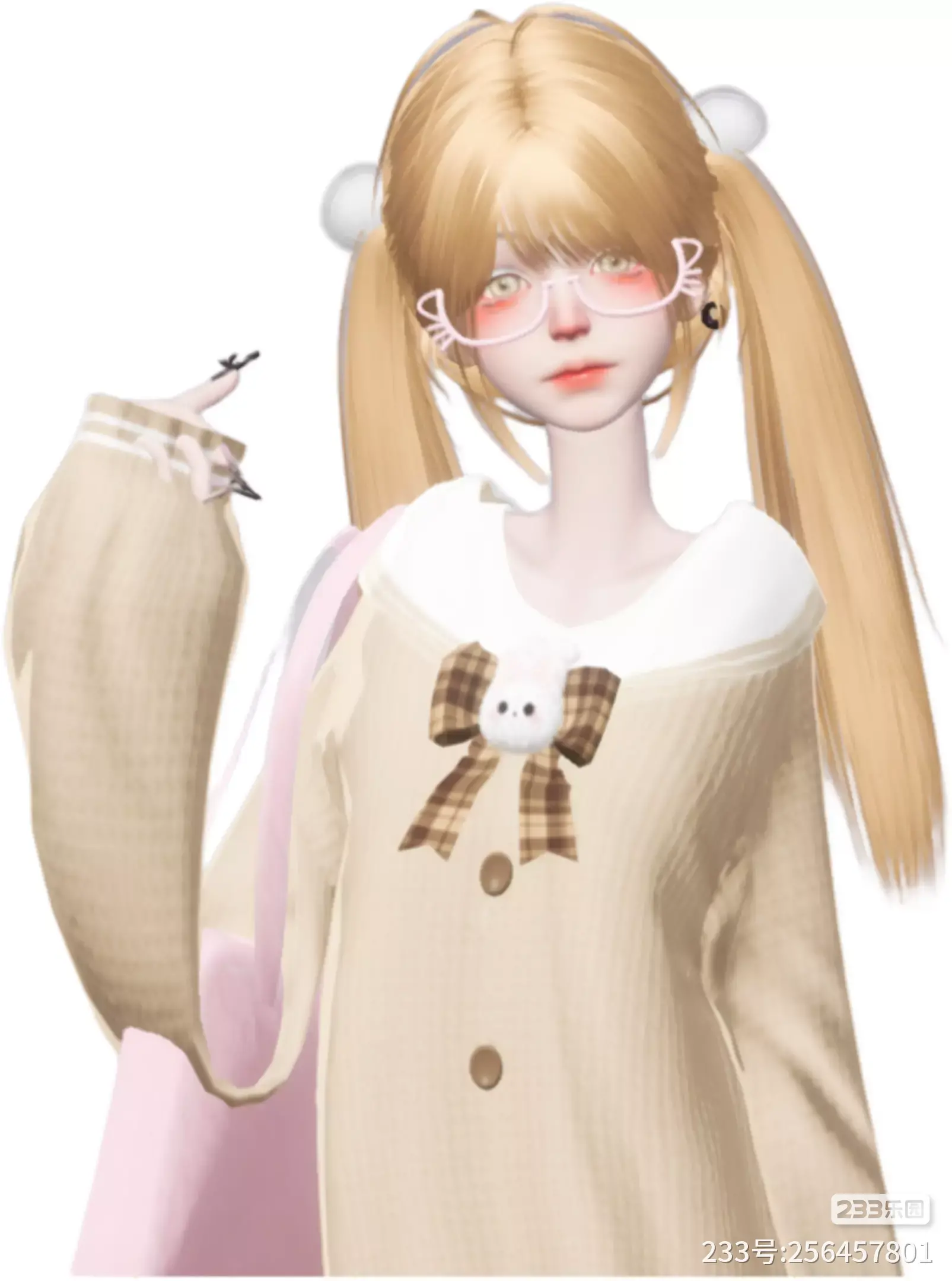 眼镜的装饰有种清冷感 白色包包中和整体暗色调