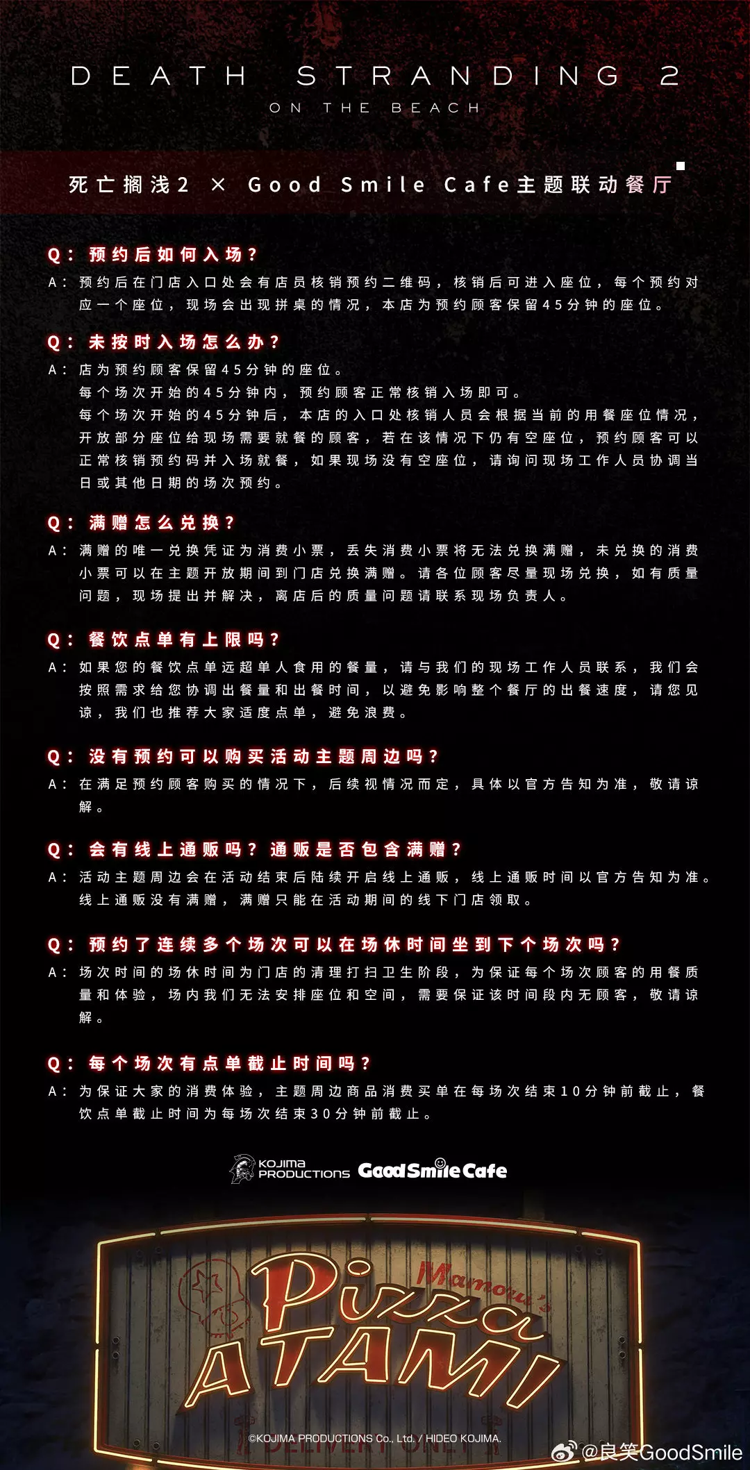 死亡搁浅2 ✖ Good Smile Cafe主题餐厅 今日,良笑官方公布死亡搁浅2主题餐厅详情(上海)。 GSC宣布死亡搁浅2主题餐厅追加【杭州】场 死亡搁浅2主题餐厅即将链接杭州工联CC。 从上海延续而来的追加开展,熟悉的场景与氛围,即将抵达杭州。