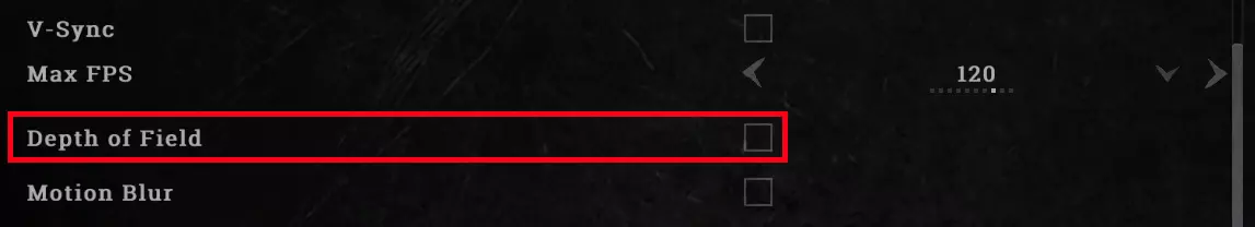 关闭景深和无最大帧率限制或120帧率 5. 关闭景深 景深对帧率的影响不像动态模糊那样严重,但它没什么用处。这里存在一些争议,权当是为了唱反调吧。启用景深后,当你瞄准射击时,周边视野的任何干扰都会被弱化,这样你就能专注于瞄准的目标。问题在于,随着你经验越来越丰富,当你专注于单个敌人时,你会发现自己能够忽略那些干扰,而能够在周边视野发现敌人的好处是无法被抵消的。 要关闭它,进入设置,然后进入图形选项卡。它就在动态模糊的上方。和前两个选项一样,这是一个需要保持空白的按钮,而不是用红色填充。我以前玩游戏时会开启景深效果,但我发现自己会瞄准一名猎人,却完全没注意到他的同伴正躲在灌木丛中瞄准我的头部。
