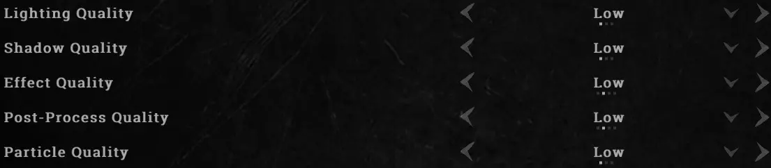 在《猎杀:对决》中,你总是希望在性能和视觉清晰度之间找到完美平衡。根据你的电脑配置,某些图形设置应设为低,而其他设置则设为高,同时保持约60或更高的帧率。 这些设置是游戏设置中图形选项卡的核心内容,你应该逐一查看右侧的简短描述以了解每个设置的作用。每个设置都有一个选项卡,可让你将其从低调整到中再到高,就像任何标准的图形设置一样。 我已将所有设置调整为如上图所示的状态。目前这些是画质和帧率之间最平衡的设置。以下是选择这些画质设置的原因: 物体质量:高 该设置负责猎人的渲染,设为高! 纹理质量:低