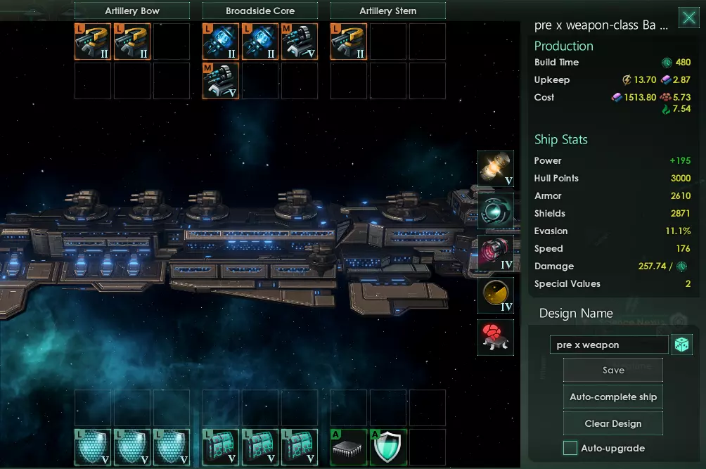 《群星》舰船设计示例 信息 本指南仅包含优秀的舰船设计示例。 关于设计说明和部件描述,请参考相关游戏资料。 护卫舰 每个舰队使用多种类型的护卫舰。 主力护卫舰: