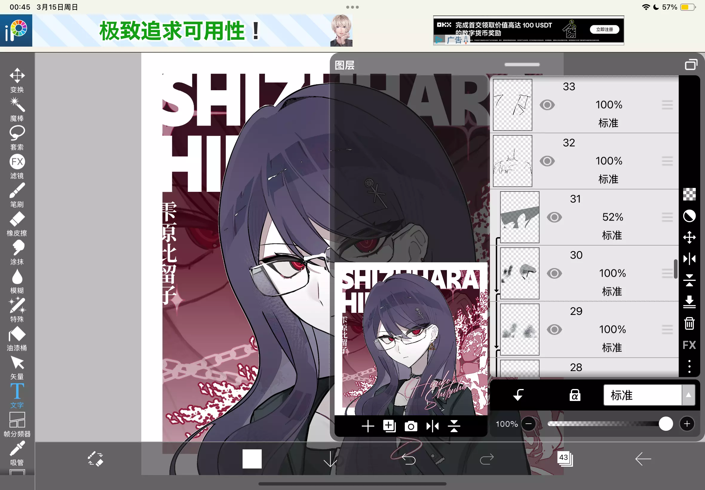 创作者发布了原创的雾原北留子绘画作品,附带绘画图层截图,疑惑自己登上月榜的帖子被修改,同时申请精华与月刊收录。