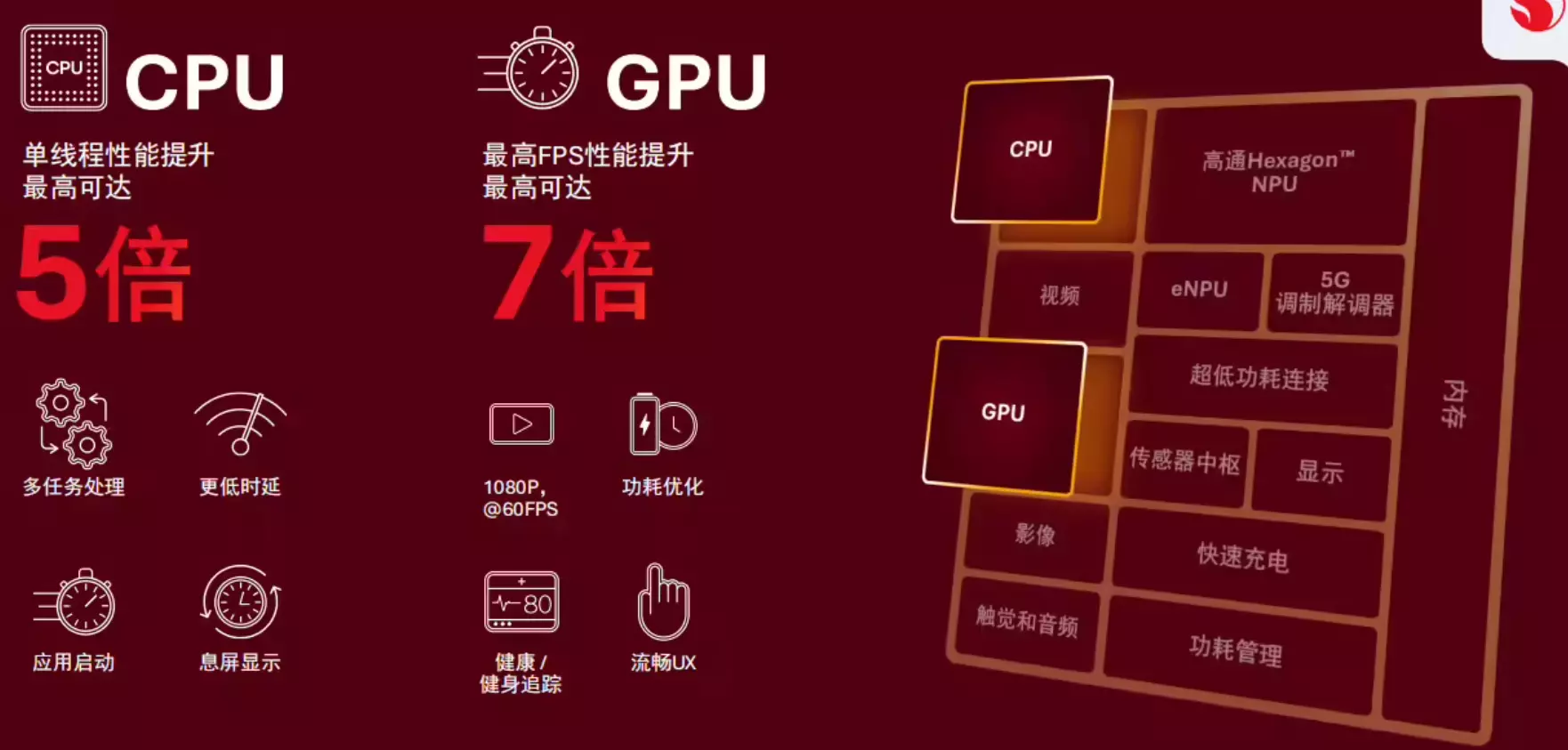 高通表示,骁龙Waer Elite能有效处理来自语音、视觉、位置,以及各类传感器的多模态输入,打造个性化的AI智能体。 除了NPU带来的AI提升,骁龙Waer Elite采用全新的五核 CPU 架构,还集成了升级后的CPU和GPU。 与上代平台,它的CPU性能提升最高5倍,GPU性能提升可达7倍。