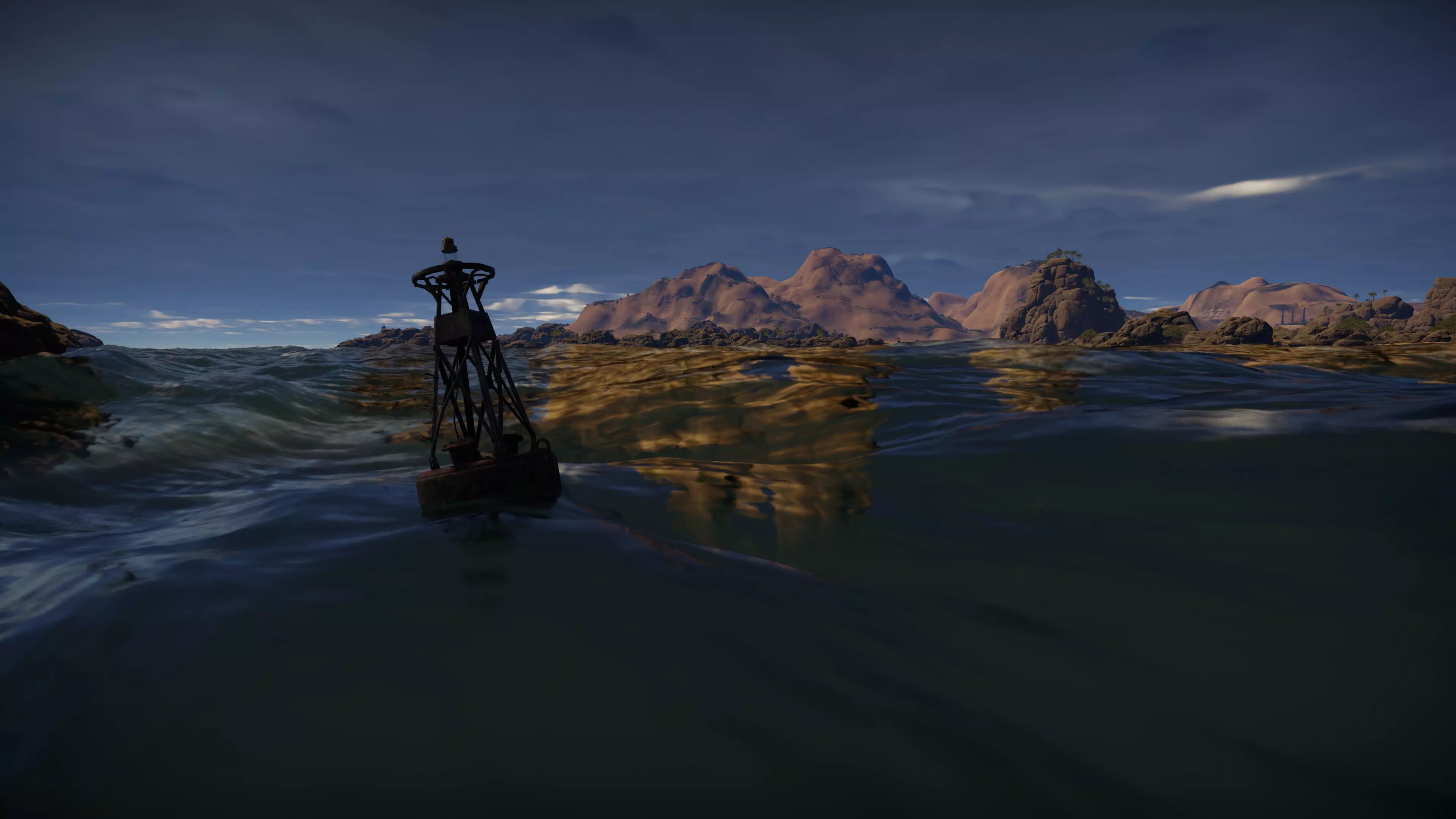 另一项工作重点是着色,即表面与光线和相机的相互作用方式。新渲染器中实现了次表面散射效果,通过计算光线与水面下物体相互作用时的分布情况,营造出水的内部体积感。同时还采用了新的原理,用于在不同视角下实现水面反射的各向异性分布,以此在不同海况下完善画面效果。