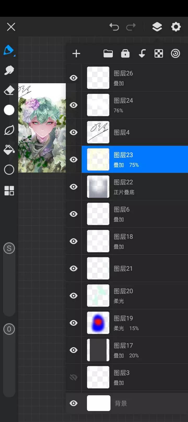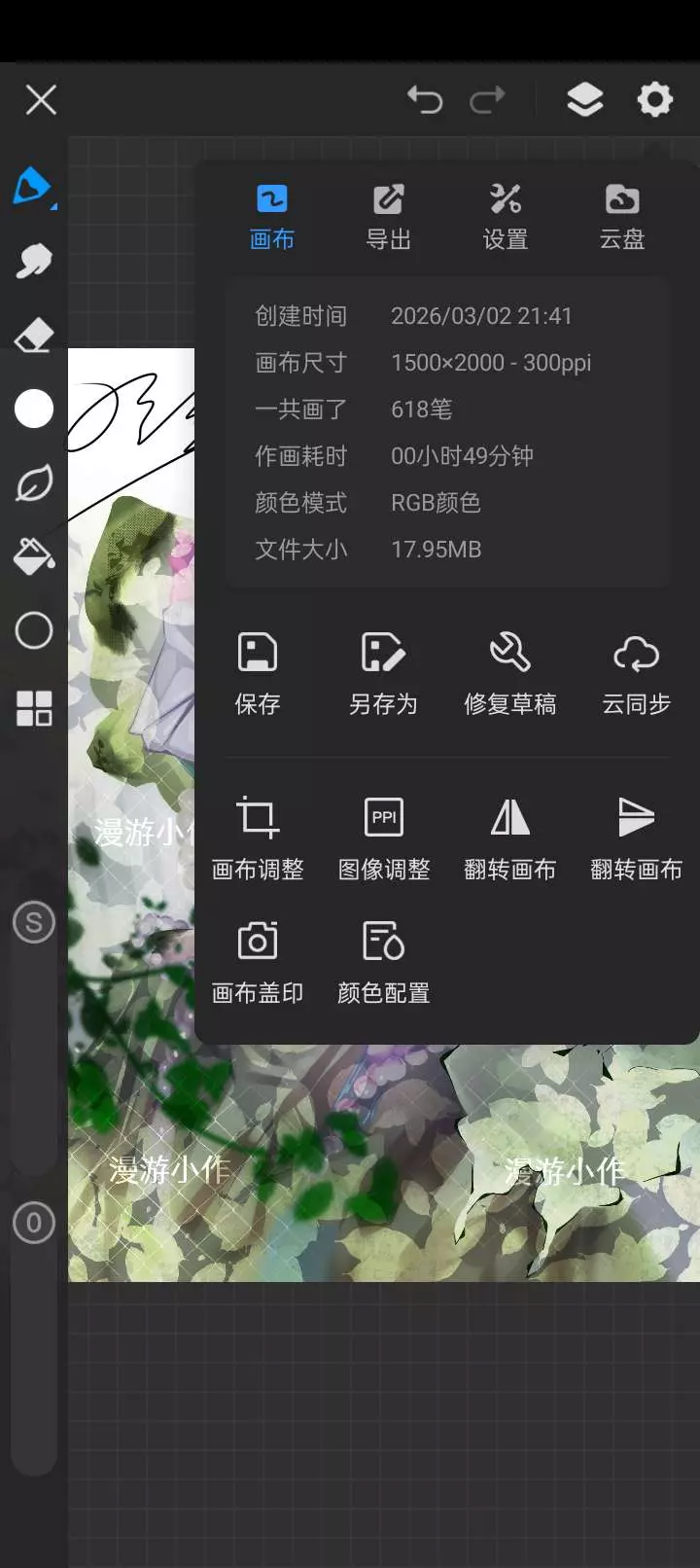 作者无偿展示了分两张画布创作的二次元插画作品,还晒出了作画的画布信息与图层详情,该插画是一位蓝发带花的二次元人物,创作耗时超3小时。