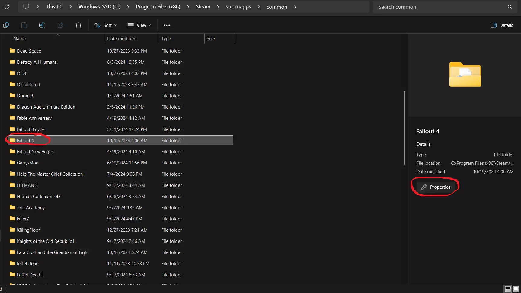 在该文件中,你应该可以调整帧率限制,希望这能帮到你! 更多可改善游戏体验的附加文件: 高帧率物理修复 长加载时间修复 武器碎片崩溃修复 Buffout 4(由于最新版本的《辐射伦敦》已包含Buffout 4,因此该文件现在为可选。如果你使用的是《辐射伦敦》的最初发布版本,则需要Buffout 4,否则它应该已包含在内。) 注意:添加和安装这些文件时,路径与上述说明完全相同!下载更新修复方法 我在尝试将游戏更新到最新补丁时遇到了“访问被拒绝”的提示,以下是解决该问题的方法。首先,你需要找到《辐射4》游戏文件的存放路径,然后点击该文件夹并选择属性。