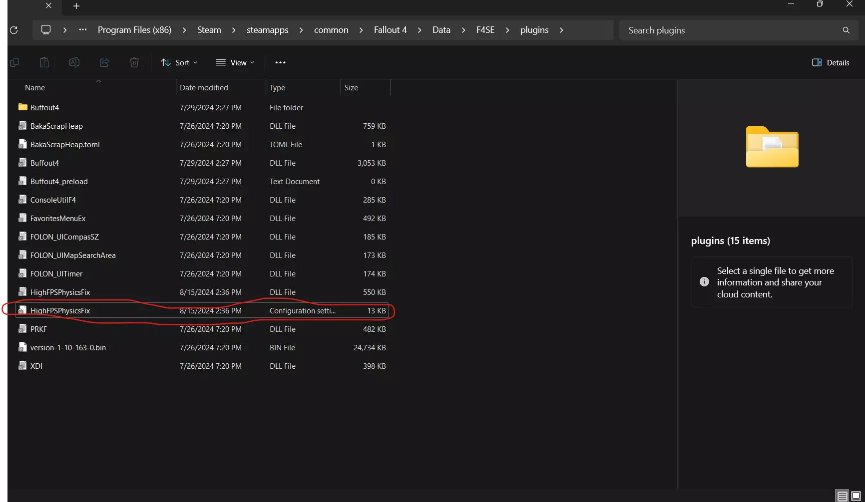 添加后,你现在可以编辑已插入数据文件夹的框架,路径如下:Program Filesx86>Steam>steamapps>common>Fallout 4>Data>F4SE>plugins。新文件应命名为HighFPSPhysicsFix。