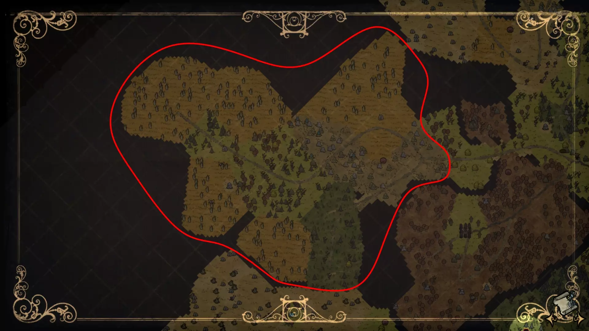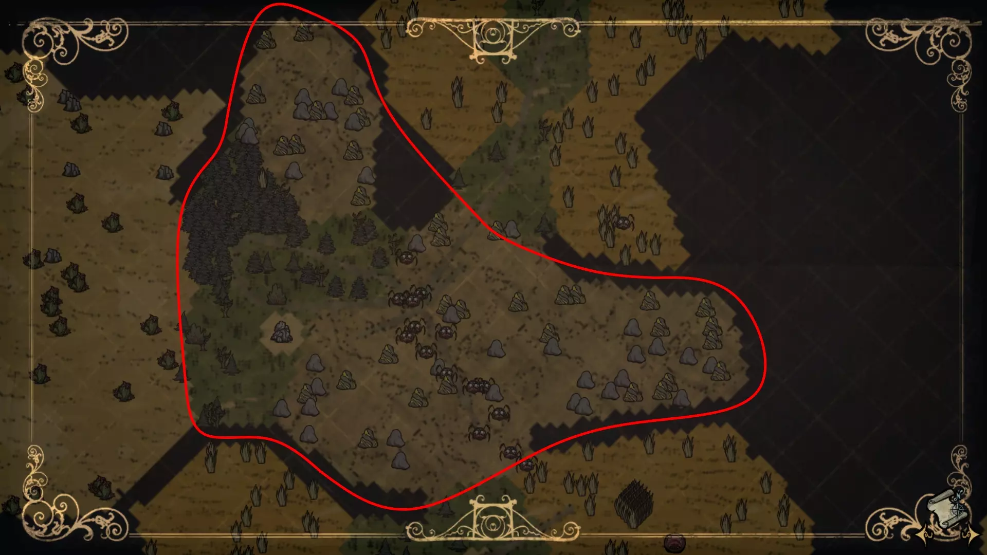 本指南详细介绍了《饥荒联机版》森林世界中可能生成的全部20种原生生物群系。内容涵盖资源分布、生物群系特有机制(如沙尘暴、风滚草生成点、陨石生成点)以及每个生物群系的显著特征。本指南旨在补充《饥荒》维基目前缺失的细节。 资源快速指引: 黄金:可在马赛克生物群系、岩石地、蜘蛛矿区和额外陨石生物群系中找到。 芦苇:可在沼泽和猪村生物群系中找到。 草壁虎:可在马赛克生物群系、龙蝇沙漠、额外陨石生物群系、岩石地、蜘蛛矿区和三麦克 tusks 生物群系中找到。 月岩:可在月面森林、马赛克生物群系和额外陨石生物群系中找到。 野牛:可在热带草原和曼德拉草森林生物群系中找到。伏特山羊 - 详见绿洲沙漠。 曼德拉草 - 详见曼德拉草森林。 生物生成点: 蜘蛛巢穴 - 详见曼德拉草森林、月面森林和蜘蛛采石场。 麦克 tus k 营地 - 详见月面森林和三麦克 tus k 生物群系。 猪人房 - 详见猪人村、猪王、曼德拉草森林和月面森林生物群系。在其他生物群系中很少见。 秃鹫 - 详见龙蝇沙漠、绿洲沙漠和岩石地生物群系。 鸟类 - 详见附录。 地标: 猪王 - 详见猪王生物群系。 月石 - 详见月面森林。 湖泊(又称绿洲) - 详见绿洲沙漠。 首领战: 战利品藏匿处 - 详见马赛克、猪王和额外落叶林生物群系。另见附录。 蚁狮 - 详见绿洲生物群系。 暗影碎片 - 详见附录。 蜂后 - 详见蜂后生物群系。 龙蝇 - 详见龙蝇沙漠。驼鹿/鹅与小鹅——详见附录 切斯特:眼骨——详见附录 简介 本指南旨在全面介绍《饥荒联机版》默认设置下森林中生成的所有生物群落。森林指的是地表世界;洞穴中的生物群落不在此处讨论(若有足够动力,可能会在未来指南中涵盖)。本指南未涉及世界生成的详细机制,只因笔者对此尚不了解,且未进行深入的代码研究。因此,本指南仅基于笔者的观察提供相关细节。不过,本指南比当前《饥荒》维基百科提供的内容更为详细。此外,笔者尽量避免给出个人观点或推荐策略/技巧(例如哪个生物群系最适合建造基地呢?因为每位玩家心中都有不同的目标、技能水平和游戏风格。所以,我会详细介绍每个生物群系的资源和优势,由读者自行决定如何利用它们。 定义 我所说的“生物群系”是什么意思呢?维基百科也不完全确定该如何定义这个术语。它似乎将生物群系定义为基于单一地形/地皮的区域,但这是否意味着龙蝇沙漠中的那片稀树草原是一个稀树草原生物群系呢?那曼德拉草森林中的稀树草原区域又该如何定义呢?基于单一地形/地皮来定义的问题在于,这些地形/地皮在地图上都是分散的,而有些地皮仅作为特定场景的一部分生成(例如,包含棋子及所有变种的【象棋】生态区)。此外,著名的【马赛克】生态区中也存在混合地皮。由此可见,这种定义方式混乱、不一致且不方便。在《饥荒联机版》中描述位置本就具有挑战性,模糊的生态区定义对此毫无帮助。其实有更好的定义方式。 本指南中的“生态区”定义如下:在《饥荒联机版》世界中,由独特的地形、资源和特定场景共同组合生成的区域。你可以把每个生物群落想象成一座房子(即游戏世界)里的一个“房间”,每个房间都包含一系列独有的“家具”(即资源、环境设施和特殊效果)。这些房间可以以各种方式排列,但它们永远不会被拆分,始终作为一个连贯的整体生成(此处需要特别说明——详见附录中关于生物群落交叉的部分)。这一概念在很大程度上受到了T Shaw Killer的Force Biomes模组的启发,其效果在示意图中能得到最直观的展现。