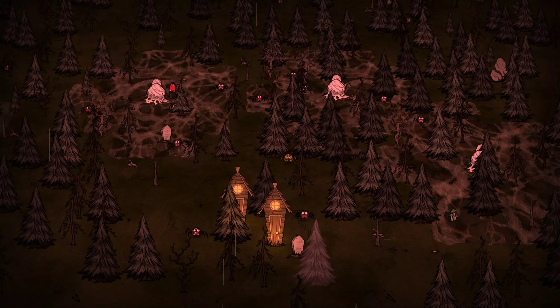 常绿森林中有少量的常青树、树苗和浆果丛。这里有萤火虫。 蜘蛛领域: