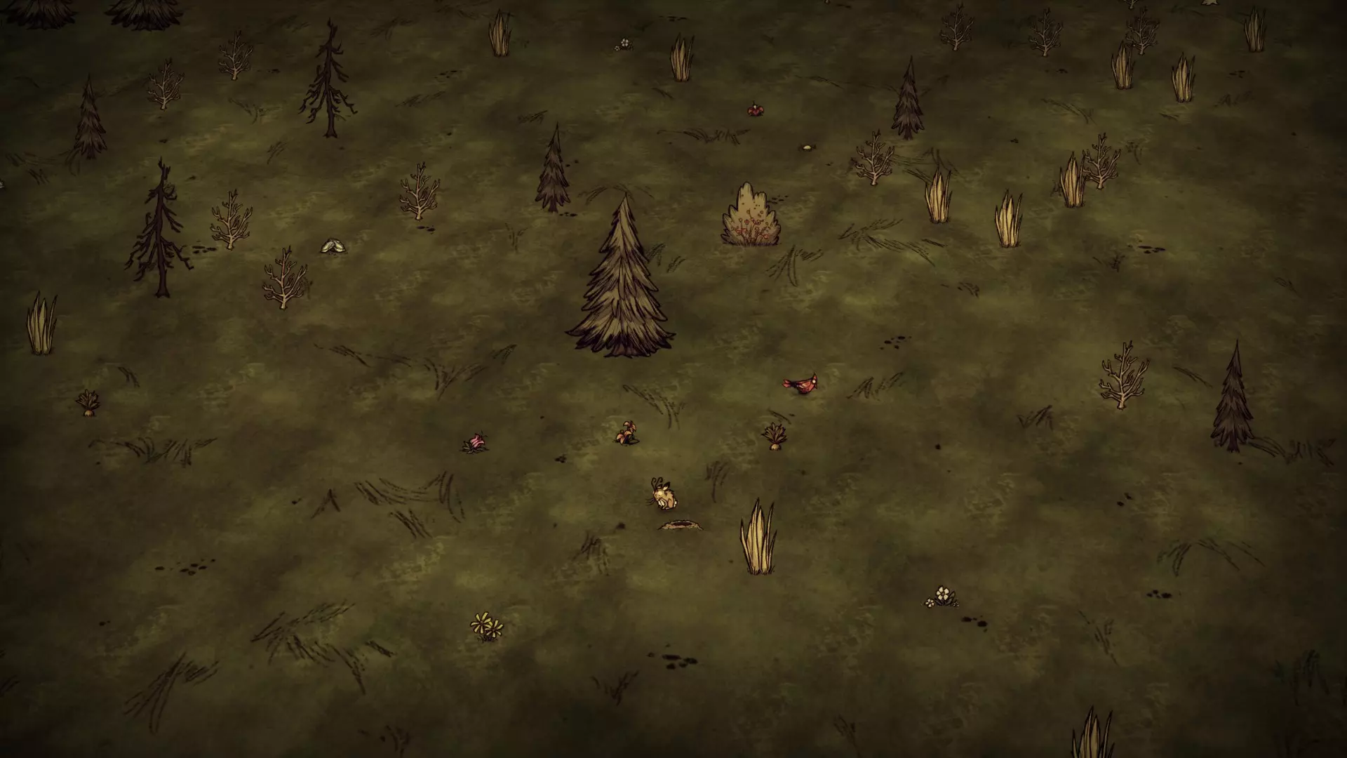 贫瘠森林是一片覆盖着森林地皮的相对空旷区域。这里仅有的资源包括常青树、树苗/多枝树、浆果丛、红蘑菇和萤火虫。蜂巢、猪房和草可能会在这里生成,但并非一定会有。 虫洞和天坑:虫洞和天坑都可能在这个生物群系中生成,但并非一定会有。 草壁虎世界:在草壁虎世界中,野牛草原里的草不会生成。兔子草原里的草则正常生成。此生物群系不会生成草壁虎。 资源: 草簇 树苗/多枝树 浆果丛 红蘑菇 绿蘑菇 含硝石的岩石 花朵 兔子洞 蜂巢 猪房 野牛 萤火虫 可选建筑: 野牛围栏