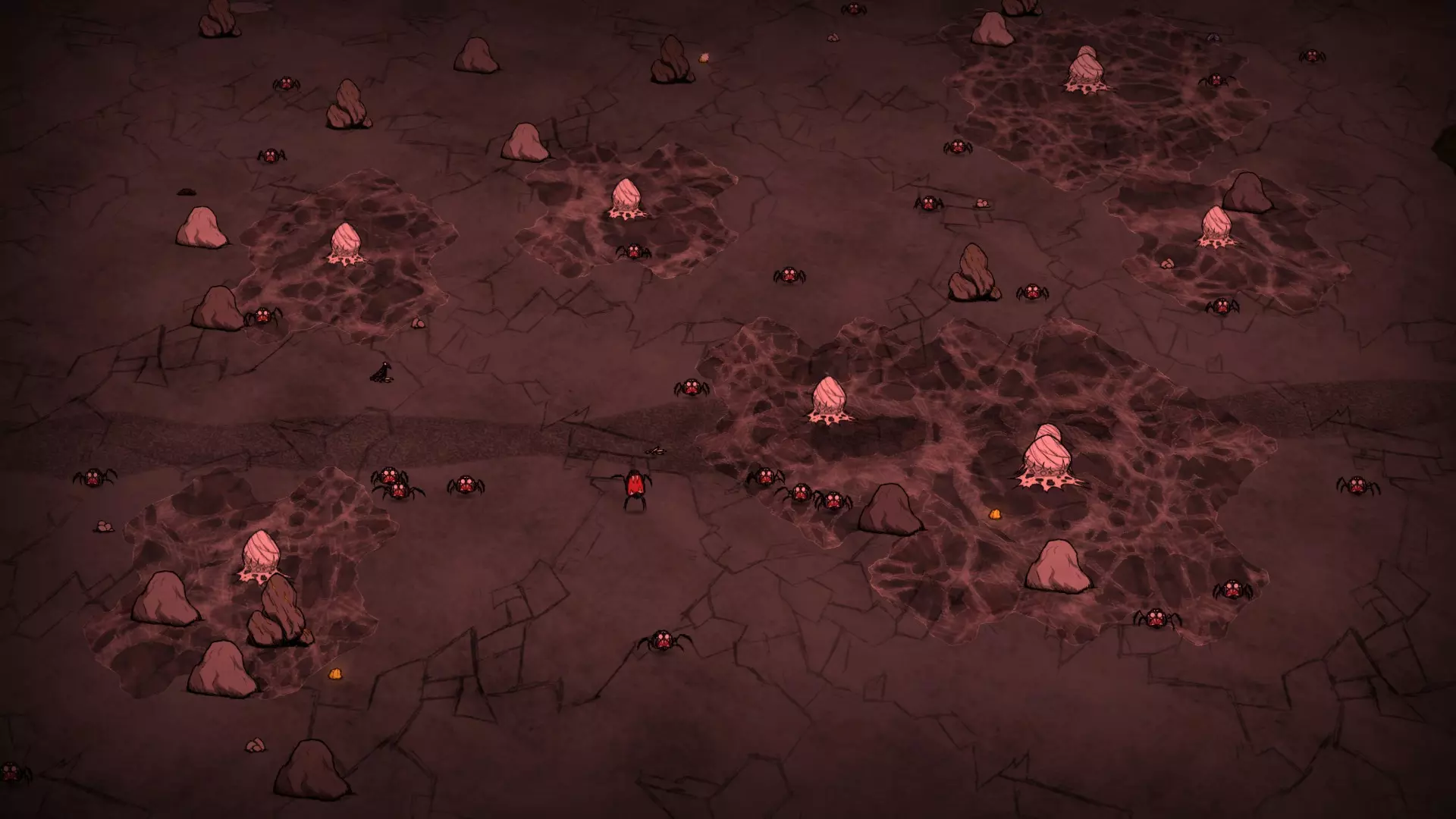 蜘蛛区域由一片岩石、金矿、硝石矿和金矿组成的区域内的一群蜘蛛巢穴构成。 岩石区域: