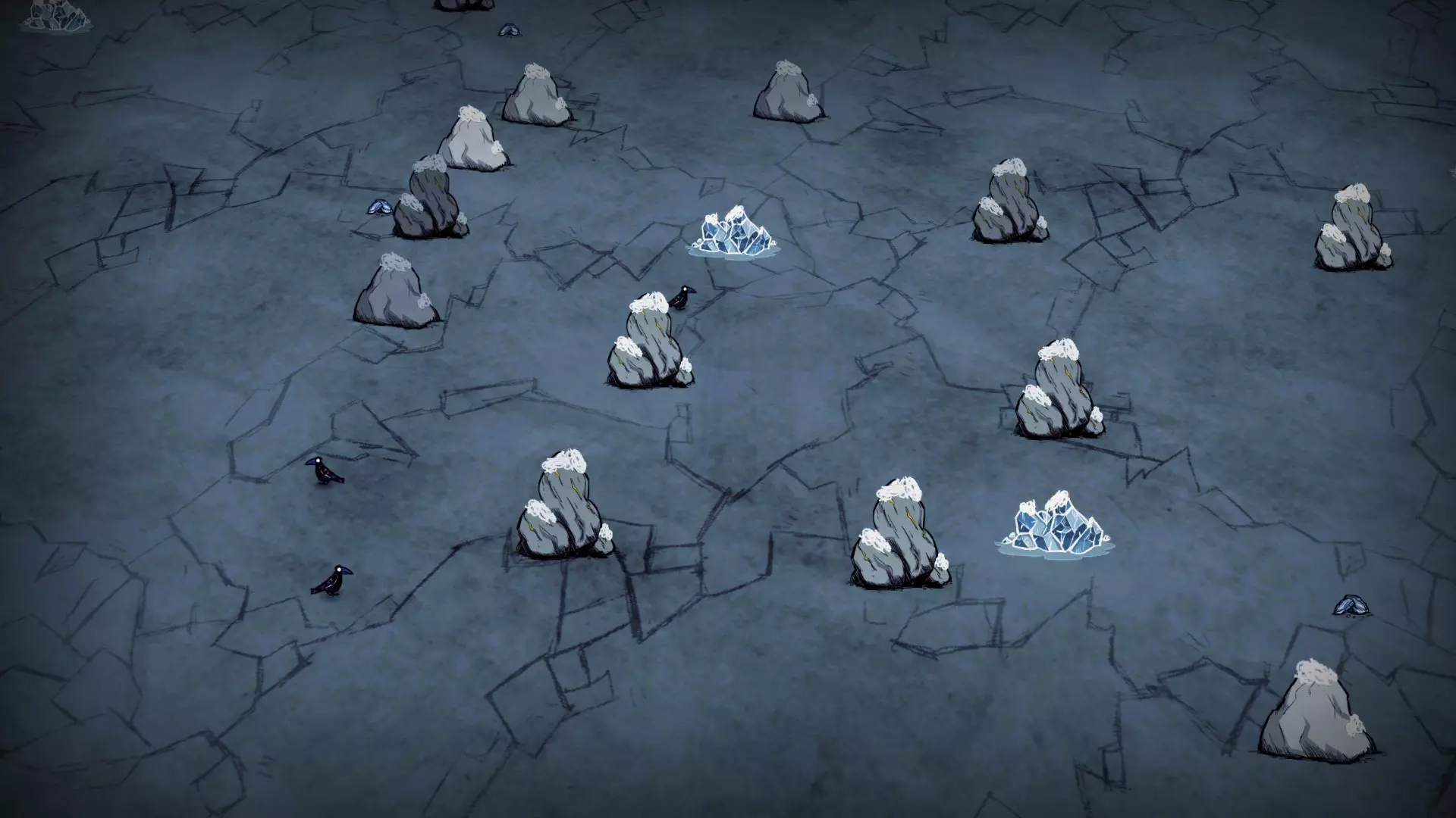 该生物群系内均匀分布着小型冰川、含硝石的巨石和含金的巨石。地面上可以轻易找到岩石和燧石。秃鹫通常会在这里生成,但并非一定会出现。