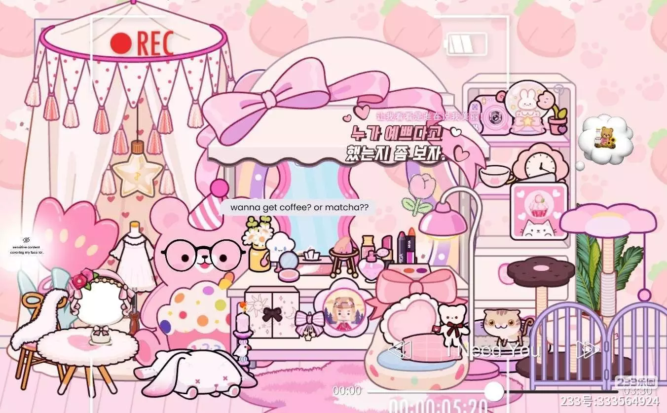 这是米加世界的粉色系化妆台装修分享,整体风格粉嫩可爱,布置了各类美妆用品与可爱装饰,打造出充满少女心的化妆空间,是米加装修里颇具特色的少女风场景。