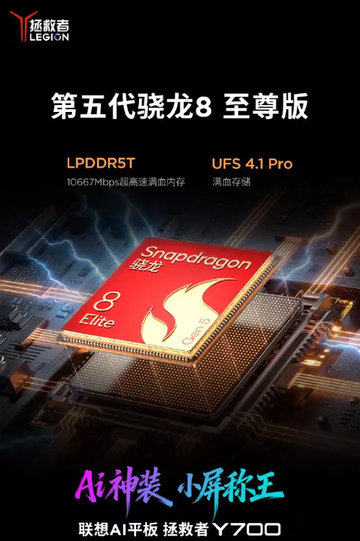 快科技3月2日消息,全新联想拯救者Y700小平板将于3月发布,这是Y700系列第五代机型,性能全面升级。 今日, 联想拯救者官微宣布全新Y700搭载第五代骁龙8至尊版芯片(骁龙8E5 ),这是目前安卓阵营最强芯片 ,Y700也成为首款搭载该芯片的小尺寸平板。