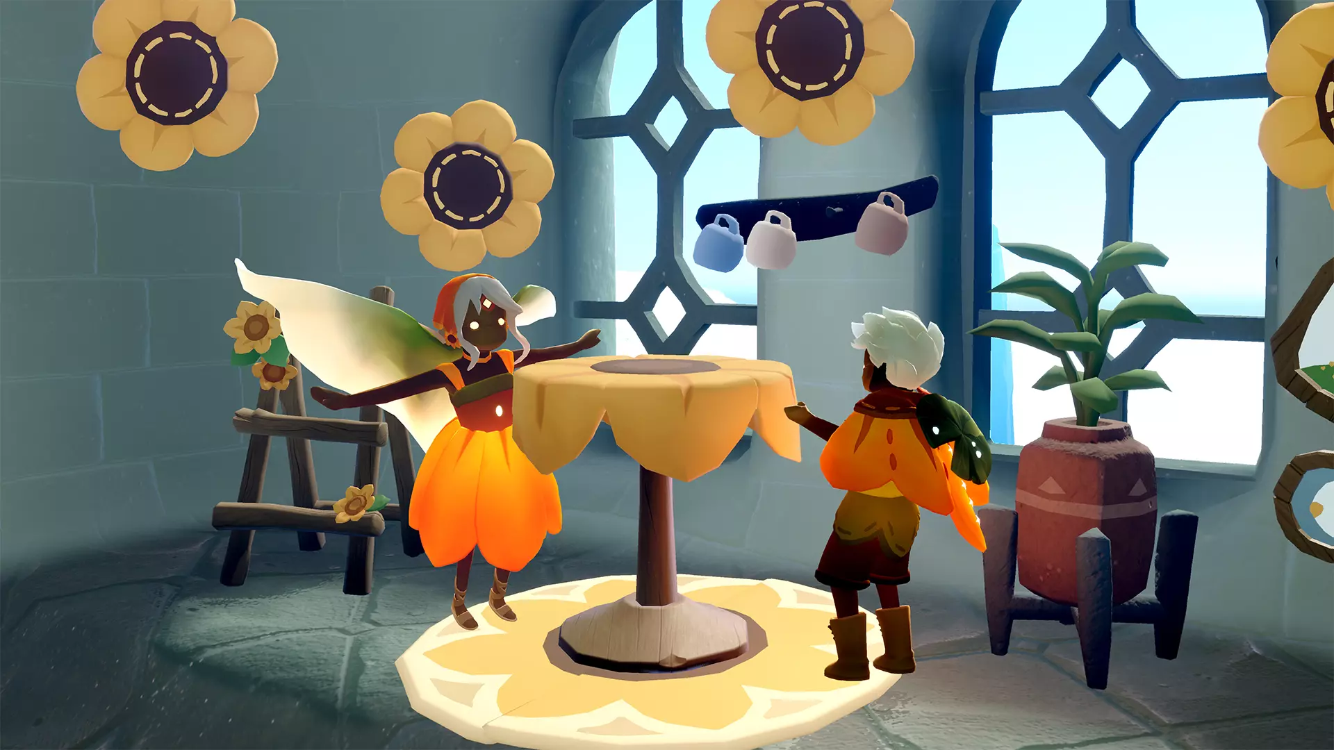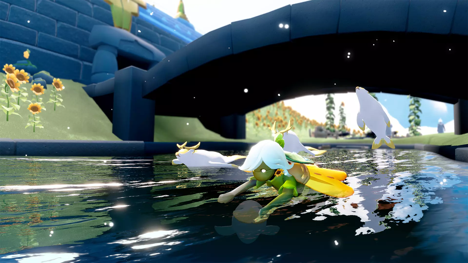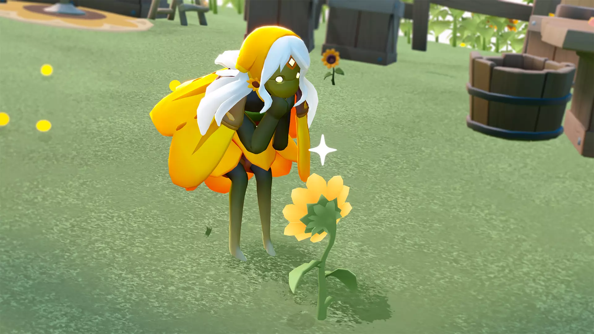 照料完向日葵后,记得花些时间放松并关爱自己! 和欢笑捕光者一起演奏乐器收集光芒,在池塘里畅快游泳,或者只是和先祖及朋友们小坐片刻,享受温暖与阳光。
