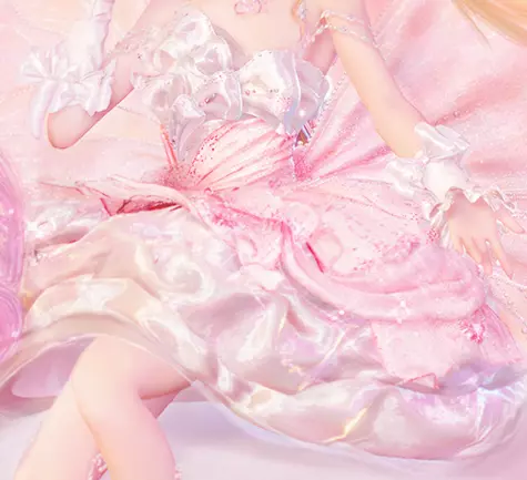 蝴蝶结与宝石间绽放着甜蜜,奶油蛋糕般的裙摆轻盈飘动,散发着甜美的魅力。飘逸的缎带在身后拖曳,每走一步都洒落精致的糖霜。 她优雅地屈膝行礼,化身为童话中的偶像,仿佛从梦境中走出。灯光下旋转时,微风拂过她缀满蝴蝶结的发辫,带着一丝柔和的甜点魔法气息。 造型师们,本期《缝纫背后》将带您探索【梦境馈赠】的设计灵感,一同踏入甜蜜幻想的世界。 套装背后的故事 对日记的低语: 这个世界本应是完美的……不是吗? 在童话逻辑的束缚下,这片梦境过滤掉了所有不和谐的声音与阴影。在这里,我可以亲手塑造每一个菌灵的笑容。没有烦恼,它们只需要爱慕我就好。 艾维妮塔说,我距离成为完美偶像只有一步之遥。剩下的,就是站在最大的舞台上,在所有菌灵的欢呼声中戴上桂冠。 在童话故事里,偶像能把彩虹云变成自己的舞台,挥一挥手就能召唤奇迹。可对我而言,自从那场才艺表演的灯光熄灭后,舞台就像一个黑洞,吞噬了我心中最后残存的勇气。 所以当他透过浓重的雾气望过来时,我垂下眼帘,勉强挤出一个微笑。“也许下次吧。”我说。 艾维妮塔的脚步声渐渐远去。雾气再次弥漫开来。如果我真的踏上那个舞台……要是没人喜欢我的表演怎么办?他们会不会对这片梦境感到失望然后离开? ——他们肯定会的,就像那场演出里的观众一样。 真奇怪。我以为自己早就抛弃了不够好的那部分自我。可为什么这份完美如此脆弱? ——安吉莉娜·万花之星·洛可可 心之问: 如果“完美”意味着让每只菇灵都露出一模一样的笑容,那我可不接受。 我一来到这个陌生的地方,就觉得那些规则不过是枷锁。它们背后一定有什么,有某种他们试图掩盖的真相。我曾试图带领其他菌灵反抗,但我的同伴们一个接一个消失,新的规则却像杂草般疯长。最后,连我也成了大家避之不及的存在。 难道是我错了吗?我从未想过,自己不顾一切的反抗会落得如此下场……可我绝不相信,把每个菌灵都硬塞进同一个疯狂的模子里是正确的!童话里,世界之所以五彩斑斓,是因为每个人都有不同的梦想。而不是像这里,每个菌灵的愿望都被染成了一模一样的颜色。 大人向我招手,那个声音再次呼唤着我,在我脑海中挥之不去。我能感觉到——真相就藏在恩典餐厅的地下。 来吧,不管是塞西莉还是柔可可。为了殿下,为了拉波博他们,为了所有你一直坚信的事物……让我们去改变些什么吧。 ——赛莉莉 现实世界的觉醒: 回到现实,我终于能好好看看这个与那个“完美”梦境截然不同的一切。 今天早上,我在舞台边停下脚步。一只道具菌灵正拖着一卷比它自己身体还大的彩色丝绸朝后台走去,布料拖在地上,像一条流淌的彩虹光带。不远处,曾为我伴舞的菌灵哼着古老的曲调,一只蹦跳着经过的小菌灵努力模仿着,让最后的音符飘向远方。那些嗡嗡的声音中蕴含着一种宁静的力量,让我周围的一切都安静下来,让我想起了那个梦境。那里的每一只菇灵都做着被我的情绪染上色彩的梦,就像一锅只有单一味道的浓汤。但此刻我眼前的声音、气味和色彩交织在一起,显得粗糙而未经雕琢,有时甚至相互冲突。然而,正是这些原始的日常瞬间,让这个世界感觉如此温暖,充满了生命的活力。 小时候,我最喜欢的童话故事说,一个多彩的世界并非由一模一样的梦想编织而成。它由无数不同的生命塑造而成,每一个生命都沿着自己的轨迹成长,彼此交汇——有时碰撞出喧嚣,有时迸发出光芒——直到共同融合成我们眼前的现实。我那时并不太理解,如今,我打心底里明白了。 远方,晨曦如幕布般缓缓升起。新的一天再次开始。在渐渐褪去的夜色下,无数梦想正等待绽放,每一个都闪耀着如同彩虹般绚烂多彩的光芒。 ——罗可可 设计灵感 【梦境礼赞】的设计灵感源于一个简单的问题:梦幻甜美的终极表达是什么样子的?这套服装以纯粹甜美的美学为设计理念,层层叠叠的糖果元素与蝴蝶结点缀其间,轻盈飘逸如打发的奶油。粉色宝石、优雅褶边与精致缎带的巧妙搭配,将童话中的完美偶像形象生动呈现——光芒四射,魅力十足,宛如从梦境中走出一般。