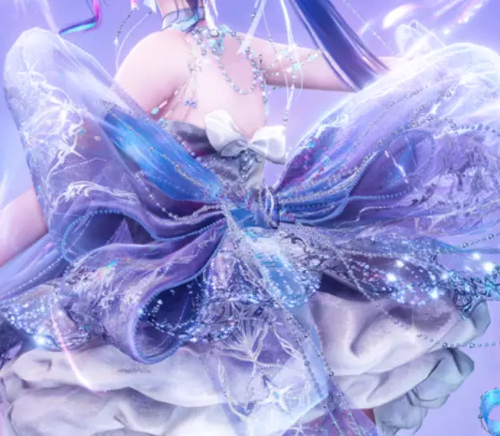 设计背后的细节 服装:开场圆舞曲 这款裙子整体呈现出蓬松的奶油漩涡造型,轻盈又甜美,宛如一款备受喜爱的法式小甜点。内层的设计模仿了打发的奶油质感,外层则如同精致的粉色薄纱包裹。裙身点缀着糖霜般的花纹和闪耀的宝石,整体宛如一件刚出炉、可供穿着的漂亮小蛋糕裙。
