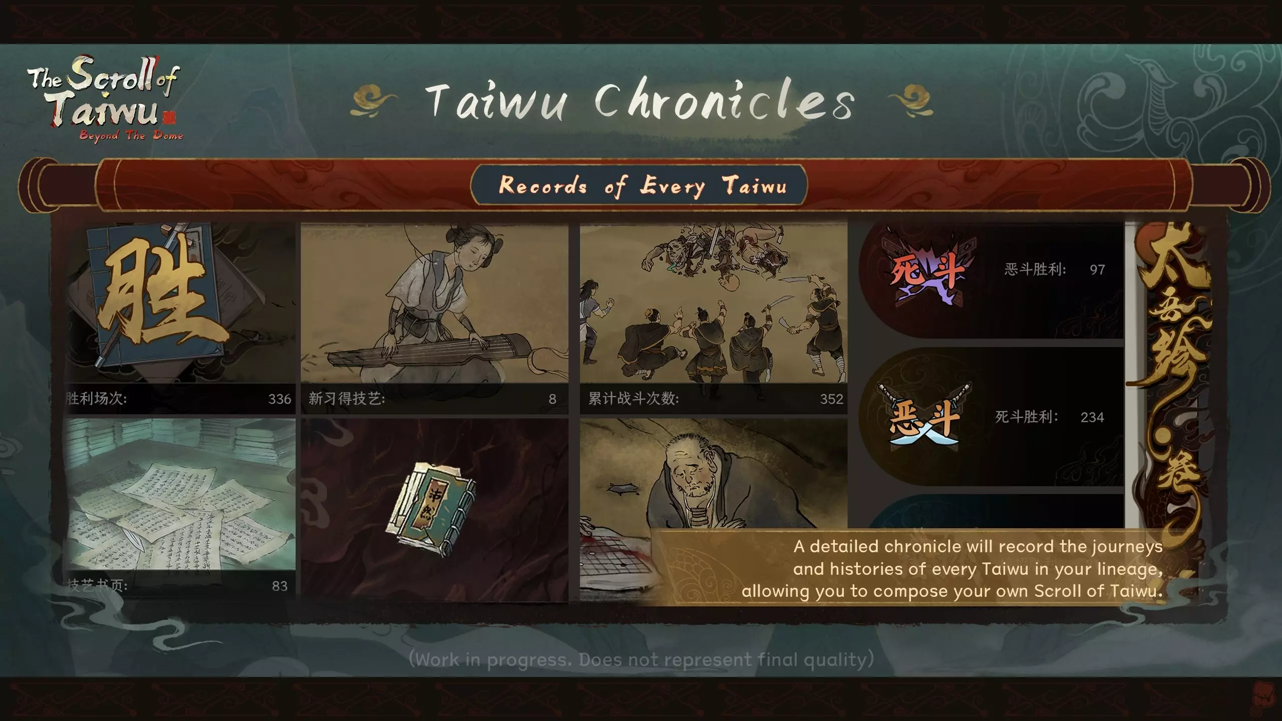 VI. 太吾纪传 历代太吾录 详细的纪传将记录你谱系中每一位太吾的历程与历史,让你谱写属于自己的太吾绘卷。