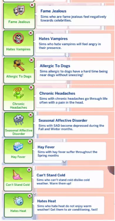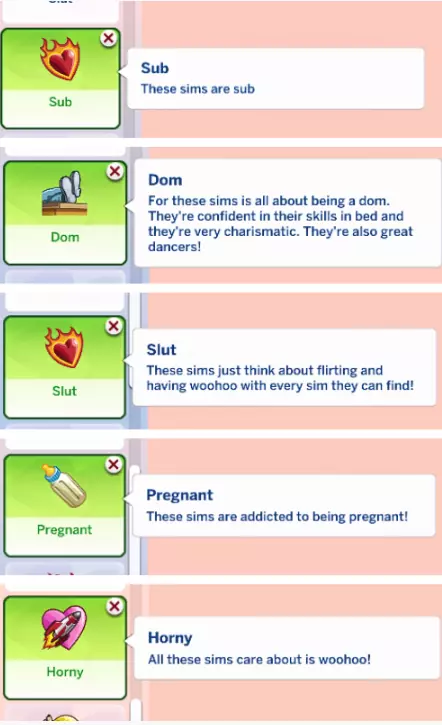 特质模组 让你的模拟市民更加独特的一种方式就是“特质模组”。你可以添加更多如情绪、成瘾、恐惧等行为。
