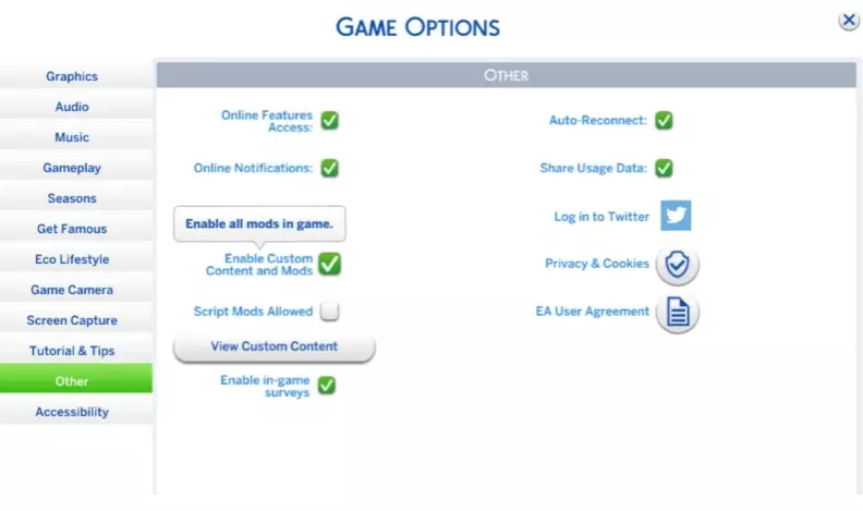 进入游戏后,在【游戏选项】中选择【其他】,启用【允许自定义内容和模组】以及【允许脚本模组】选项即可。 注意:您可以随时关闭这些选项。 加载屏幕 您可以像图片中那样自定义您的加载屏幕。