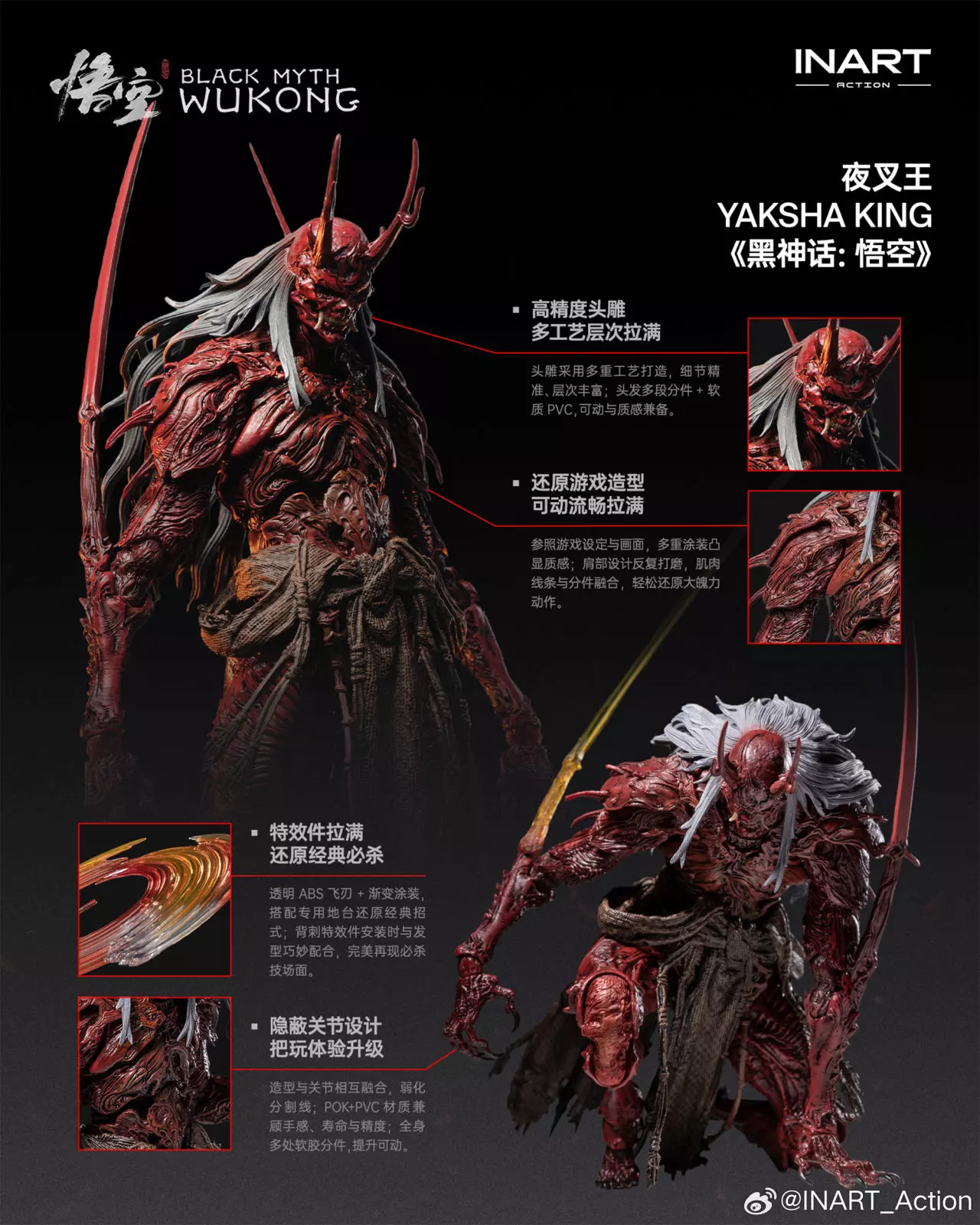 INART ✖《黑神话:悟空》 今日,INART_Action官方宣布,《黑神话:悟空》夜叉王1/12可动人偶将于2026年3月20日正式开启预售。 目前售价暂未公布。