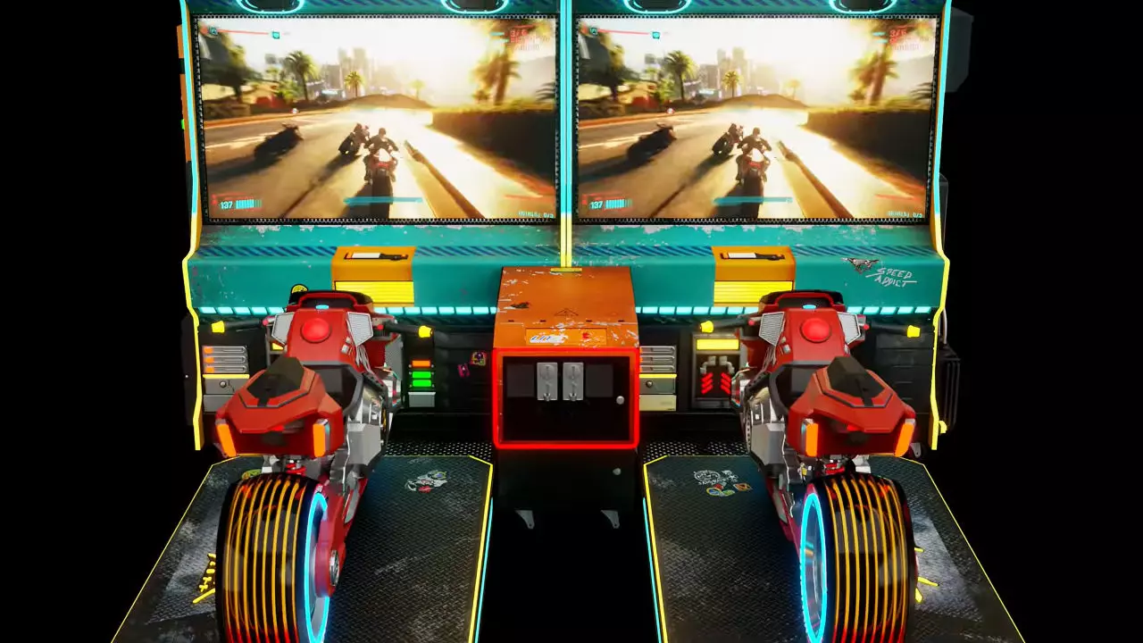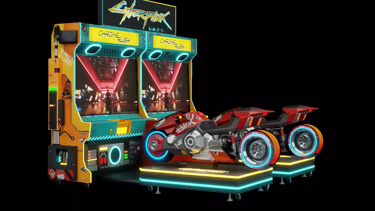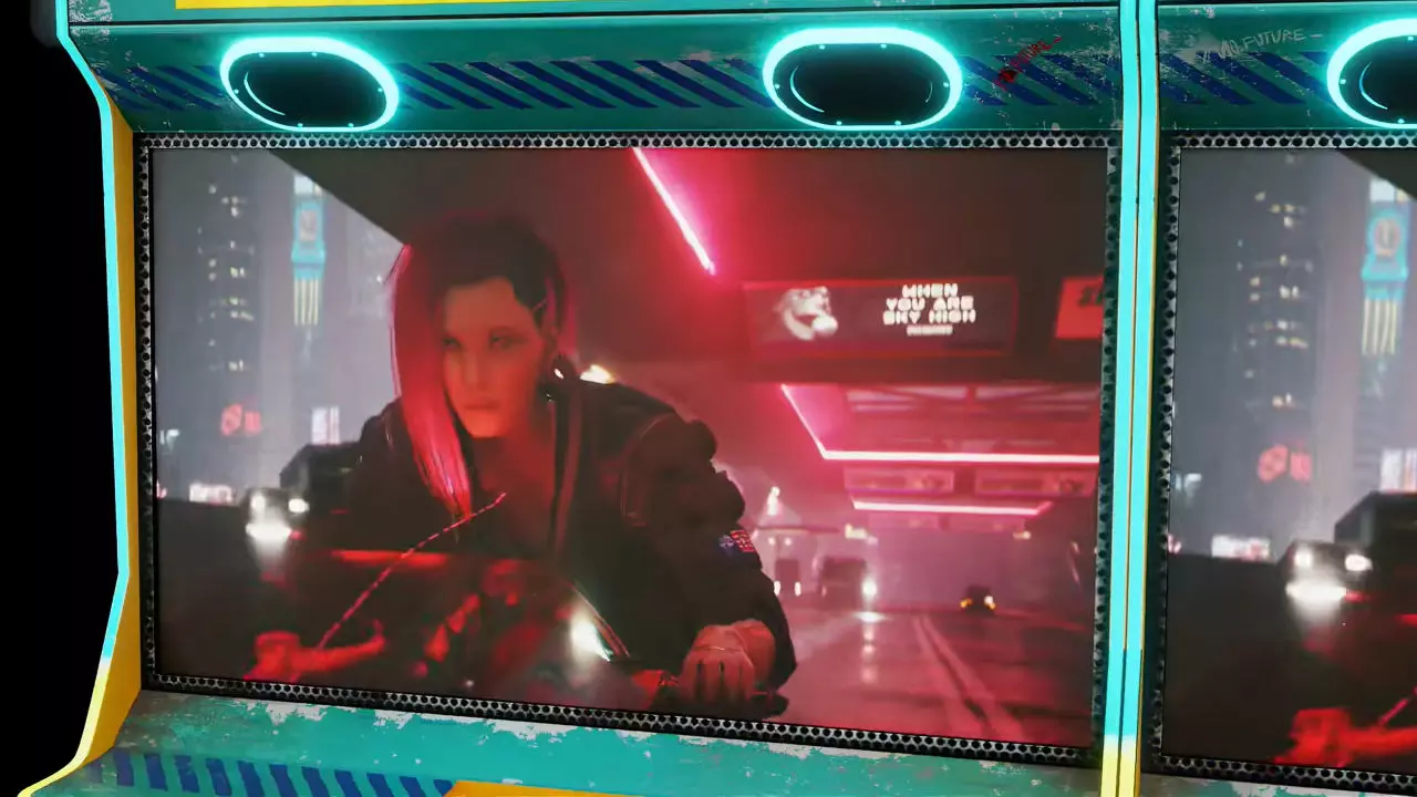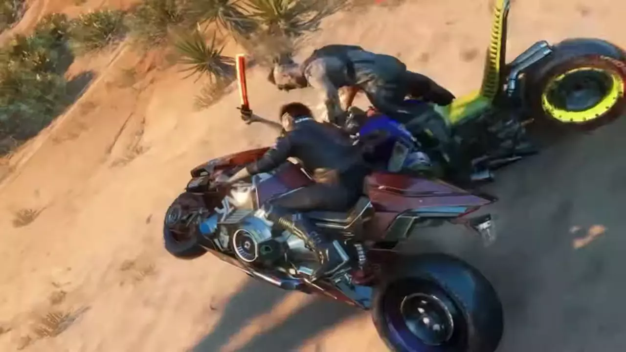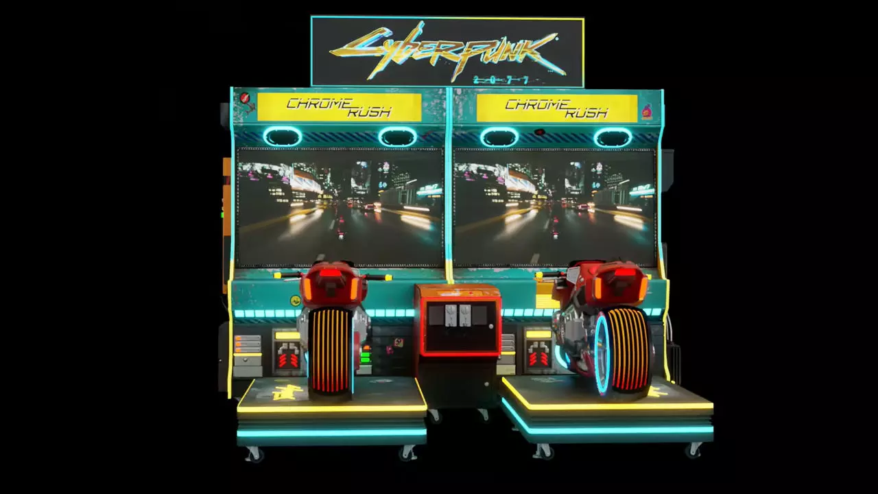 玩家驾驶着特制的摩托车造型街机,在夜之城中飞驰并参与战斗。 角色【V】也在宣传视频中亮相。