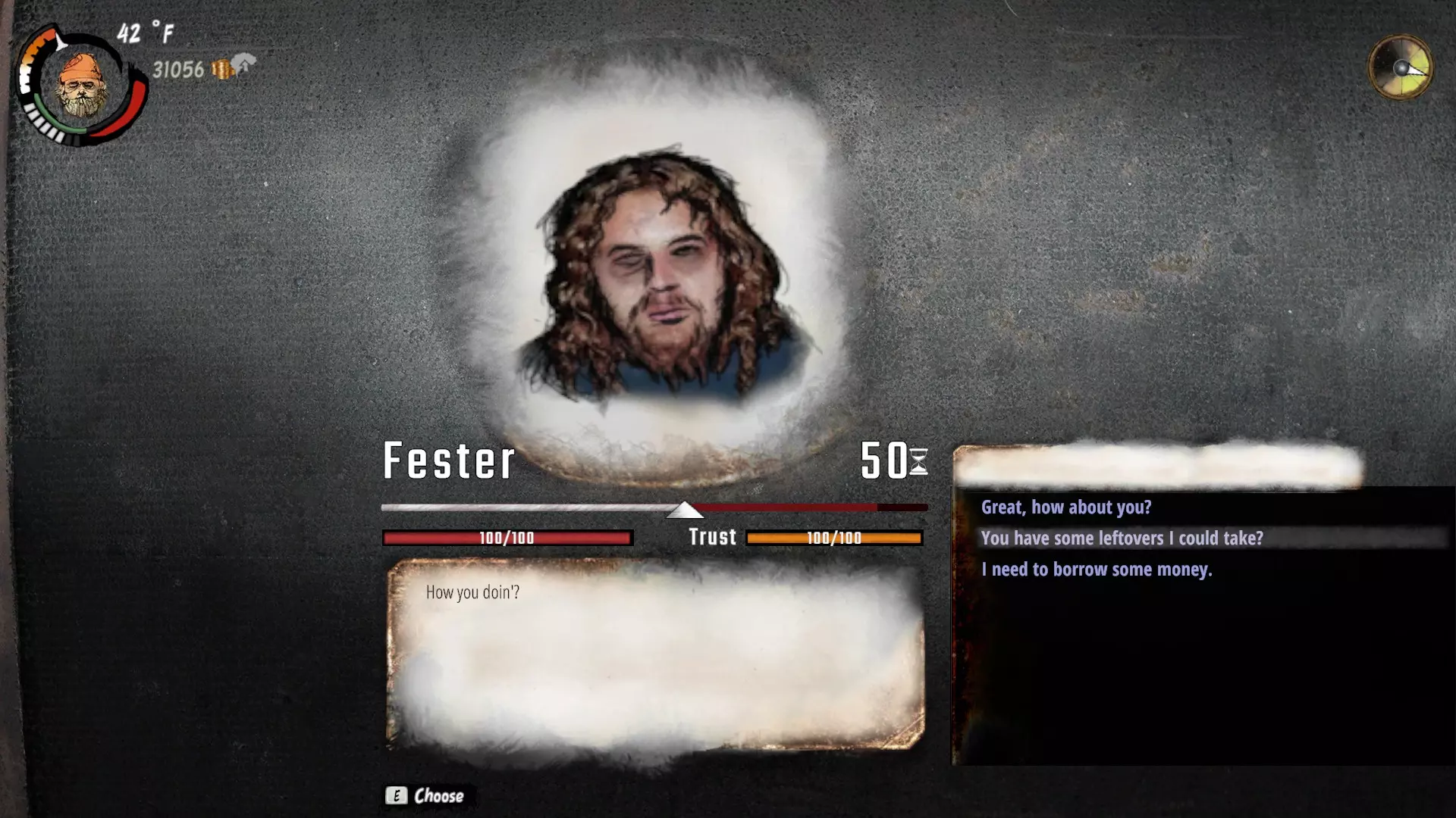 堡垒(托尼、玛莎、约翰尼) 该地点与其他NPC分开列出,因为它位于坑区/南部火车站区域之外,优先级不高。 堡垒,也就是日什科夫的 squatters 房屋/公寓,是一座封闭建筑,内有2个可用的火桶和一些可搜刮的储物空间。一旦进入,这里就是灾难期间躲藏以节省引火材料的理想场所。 我认为在第一季中后期再尝试进入堡垒也不迟,因为第一次灾难发生在第30天,且只持续1天(直到你前往国王大厅)。一旦你获得足够的信任并成为正式成员,就可以使用厕所、洗衣机、淋浴和床;不过,考虑到要获得托尼的足够信任才能正式成为成员,这些“奢侈品”不应该让你这么快就能争取到。获得足够信任的过程比成为成员本身更有价值。 托尼 这位领袖能教授防御加成和勇气技能(不错,免费如厕,还能像耶和华见证人那样敲公寓和办公室的门——更多内容见制作、搜刮、售卖) 玛莎 你的标志性流浪女士。她可以教你提升免疫力。(我记得你可以通过布鲁安神父、艾格尼丝修女和/或男爵很早就开始相关任务,但我已经有段时间没做这些任务了,所以这一点还需要进一步确认) 废铁和铜线可以卖给坑区废品场的科特勒先生。和可回收瓶子一样,它们单个价值不高,但积少成多。 你会发现大量的损坏零件,数量远远超过你的需求,甚至可能多到你用不完。拿一些储存起来就好,没必要收集遇到的每一个。不过,电脑零件你应该都带走。 制作这才是赚大钱的地方。收集好所有材料和损坏零件了吗?学习【工程师】专长后,你可以制作所有物品的修复版,其中大部分价值100-200+克朗,最值钱的是电脑(300克朗)。 除了出售外,修复后的装备还可以作为家具摆放,或用于制作复杂家具。 提升你的【制作】等级能让所有物品的制作变得更容易,包括需要烹饪的食谱、生命恢复剂和绷带等消耗品,以及武器。 经常检查并修复衣物,物品失去耐久度和属性会迅速降低其可用性,尤其是当你依赖某件装备上的第一个属性是【增加负重】时。 出售方面,身上只保留1-2张公共交通票,把避孕套存起来,除非你要为莱奥叫应召女郎。如果你不这样做,陌生人通常会选择购买这两种物品中的一种或两种。它们只值15cr,而且还有其他【专为叫卖设计】的同等价值物品。 要么大干一场,要么干脆放弃。准备好进行一场叫卖狂欢:制作并收集要出售的物品,同时储存所有陌生人可能会购买的其他物品(公交票、避孕套、餐券等)。省掉他们可能试图压价的麻烦,直接全力以赴吧。 永远不要费心向【容易对付的陌生人】出售任何东西(包括冰毒)。即使你有【策略】并说服他们物品更值钱,他们最多也只会按物品的基础价格购买。陌生人的购买价格(按物品价值的百分比计算) 难度 基础报价 运用策略后的价格 简单 70% 100% 普通 100% 120% 困难 120% 150% * NPC流浪汉同样以物品价值70%的价格收购,且你无法用街头小贩的花言巧语引诱他们。不要卖给你的流浪汉兄弟。 有想确保卖最高价的贵重物品?带上勇气和街头小贩技能进入建筑内,保证能卖掉。挨家挨户敲门,直到出现卖给他们的选项;建筑居民的购买价格与困难难度的陌生人相同,但在玩小游戏时会有更多绿色进度条。 同样,我会确保只把贵重物品(价值超过100克朗)卖给困难难度的陌生人。不过有一个例外,那就是当你的口才很低,只有1格绿色能量条去说服难缠的陌生人支付更多报酬时。这种情况下,对普通陌生人使用街头小贩技能是更稳妥的选择,也能减少时间浪费。 通用技巧与窍门 如果你还不知道,那记住不要对任何东西上瘾。唯一可以摄入成瘾物质的情况是饮酒挑战任务(酒鬼们、谢尔盖、扎奇)——顺便说一下,这些任务你应该间隔开来做;另外就是摄入属性强化剂(金色烈酒和北海巨妖),同样也要少量服用,避免意外成瘾。这是我流浪汉生涯中最糟糕的失误之一。 一些你可以与之交易的NPC(迈斯纳、莱奥、艾格尼丝修女、 shrug、阿纳托利、臭臭)的商品库存每天都会刷新。好好利用这一点并经常去看看,至少要去迈斯纳和莱奥那里。 - 阿格尼丝修女卖的衣服在游戏中后期不值得购买,但她可能会有约翰尼任务所需的服装(任务结束后会归还给你,过程有点恶心但还好)。 - 除了提升与他的信任度外,不要把物品卖给阿纳托利,他会压低价格。除非你刚获得一大笔财富并且急需更好的衣服,否则我通常建议不要从他那里买衣服,而是去 shrug 看看。不过,阿纳托利在给贝尔买骑手服装和购买地精方面很有用。他那里也是给纳格特找储物箱的最佳地点。 - - 地精是你应该一直购买的东西之一。武装地精是游戏中最好的攻击性武器,但耐用度很低。我从不接受纳吉特的地精收集任务。地精太稀有了,留着自己用更好。你可以收集其他物品来提升他的好感度。 看到购物车和桶时一定要买,这样你才能制作储物家具。 发现暴徒、警察或烦人的工人盯上你了?你可以进入附近的建筑躲避他们。 如果你想撬开垃圾桶或储物柜,有时候更快的方法是开始撬锁,然后跑进附近的建筑让工人消失,而不是等他们抽完烟。 正如在【搜刮、制作、售卖】中提到的,当你有了更稳定的资金后,就别费心向普通路人兜售东西了。甚至不要尝试向他们乞讨要钱,扒窃他们能获得更多价值。我最喜欢的组合技是:偷一个普通路人的耳机,然后转身卖给下一个路人。 当你的负重能力提升后,记得携带不同的服装套