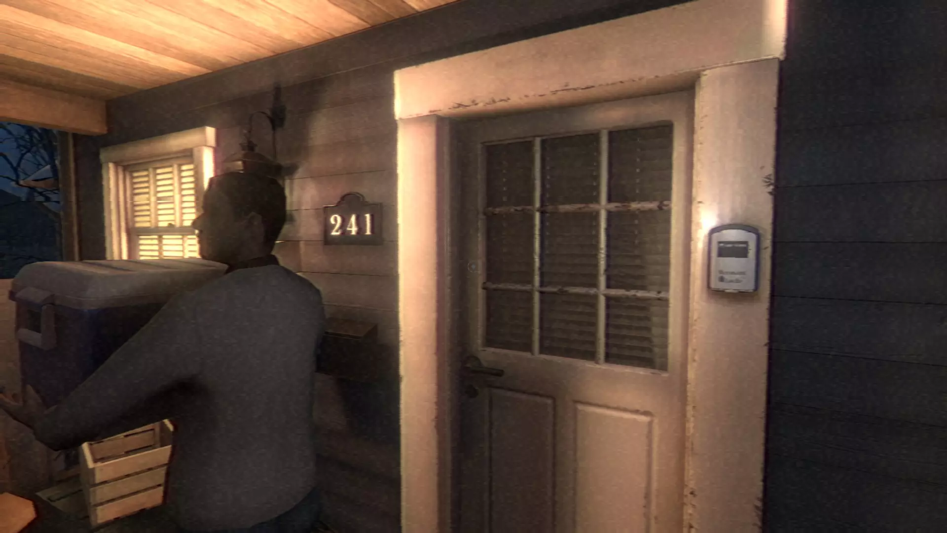 当迈克离开后,那个徒步旅行者在夜里按门铃时,你需要蹲在门附近,靠近百叶窗观察并发出声响来吸引他的注意。他可能需要一点时间才会注意到,但这样做能吸引他的注意力。我建议你左右移动,我当时就是这么做的,很有效。