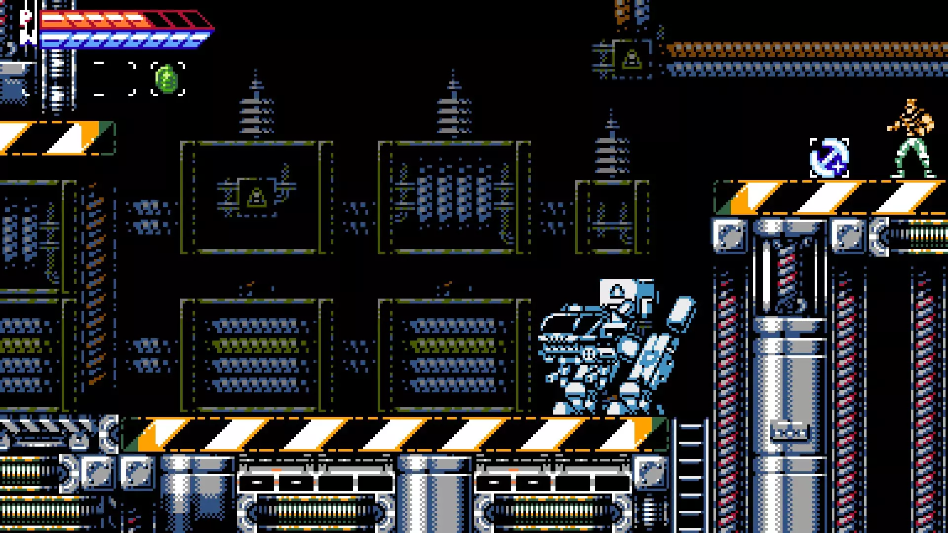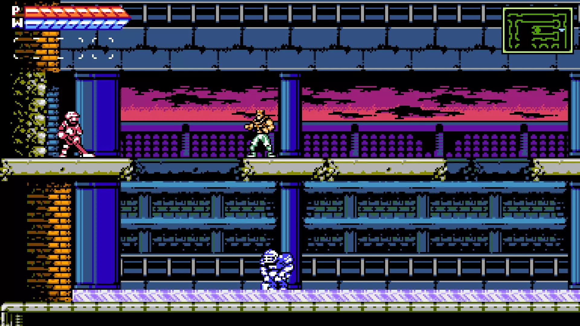 高速公路 不过,第一次武器升级需要你摧毁一个大型机甲来使桥梁坍塌,然后你必须滑跳至那个平台并下去。