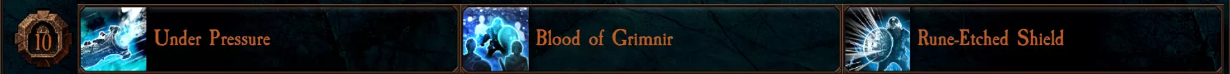【压力之下】仅对龙炎手枪和龙息炮生效。低过热状态下降低伤害并提高射速,高过热状态下则提高伤害并降低射速。此外,该特性会移除过热减速效果,因此处于高过热状态时,你的移动速度和近战武器不会受到惩罚。 你需要正确把控过热等级才能充分发挥其优势。尽量始终保持过热过半,以获得显著的伤害加成。 如果你通常在队友附近作战,或者采用非常激进的玩法,【格里姆尼尔之血】是这一列中的最佳选择。【符文蚀刻盾牌】是一个不错的团队增益,在格挡攻击后可为所有附近盟友(包括自身)提供2%的额外威力,持续6秒(最多叠加5层)。缺点是它迫使你采用非常防御性的玩法,因此除非你使用纯坦克盾牌构筑,否则很难证明它比【格里姆尼尔之血】更值得选择。