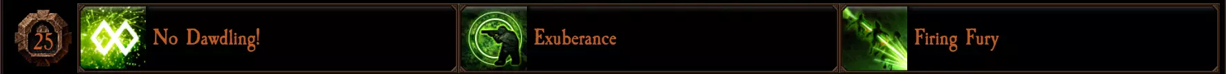 “Full Head of Steam”在压力达到5层时,可使攻击速度提升15%。攻击速度在使用近战武器时通常最为明显,但这需要你不断在近战武器和转轮机枪之间切换,并不理想。 该天赋在提升转轮机枪的射速方面非常实用,尤其在开始射击时更为重要,因为它能加快“充能”过程(初始射速越快,加速过程就越快)。如果你想玩一个更标准/平衡的流放工程师,这是最佳选择。 “Perilous Overclock”为压力积累增加了一个名为超频的额外机制。若你在获得5层【压力】后的2秒内继续叠加压力,将不会触发阻止你再次叠加的减益效果,而是会受到少量伤害,立即恢复25%的技能条,并获得1层【超频】效果。【超频】可使你的暴击率提高8%,最多叠加3层。只有获得新的叠加层数才能刷新其持续时间,因此很难保持。不过,仅凭冷却时间减少这一点,这个天赋就值得选择。 只要你保持健康状态,这个天赋能让你在长时间战斗中更频繁地使用转轮机枪。触发该效果前,先积累临时生命值,或佩戴带有【自然联结】特性的项链,以承受所受伤害。 【高级密封垫】:【压力】现在会在开火时流失,而非随时间流失。每层【压力】提供4%的威力加成。由于其效果几乎可以永久持续,你可以让你的近战和远程武器获得恒定20%的增益效果,而把转轮机枪留到非常特定的时刻使用。你可以进行短时间的子弹连射,且只会消耗1层效果,所以如果情况合适,不要害怕使用转轮机枪。这个天赋只是让你更加全能,并简化了游戏过程中充能技能条的流程。对于更侧重近战的配装,或者如果你不想费心管理压力层数,这是个不错的选择。