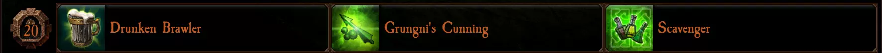 “醉拳斗士”能为全队提供攻击速度加成和伤害减免效果,且没有任何负面作用,选择这个天赋绝对不会出错。 “格朗尼的狡黠”能让你的被动技能拾取物恢复三倍弹药量。对于像“怨恨喷射者”和“杰作手枪”这类弹药消耗量大的武器非常有用。如果队伍中有多名使用需弹药远程武器的角色,这个天赋也很实用。 “拾荒者”有几率将被动弹药拾取物替换为药水。如果你使用的是“手枪”或“投掷斧”这类不需要额外弹药的远程武器,这个天赋会很合适。
