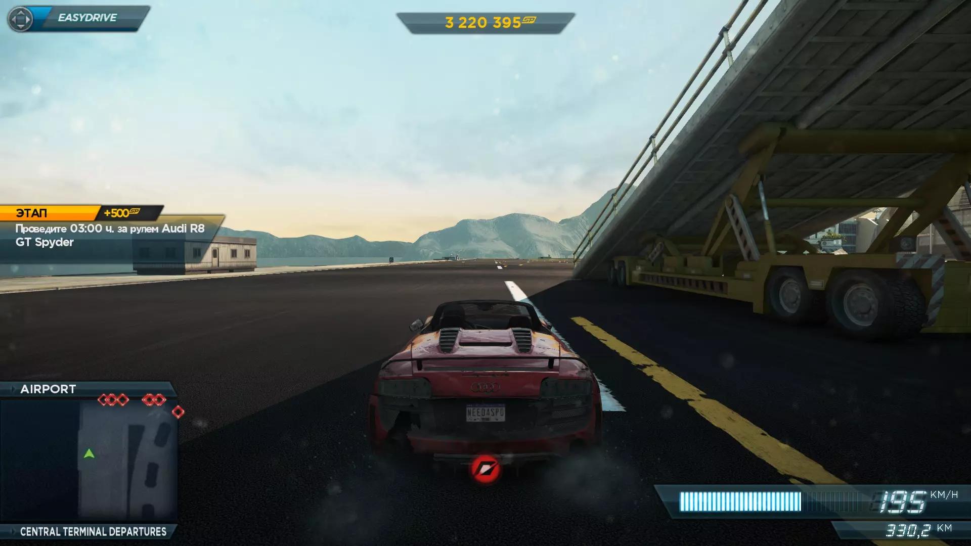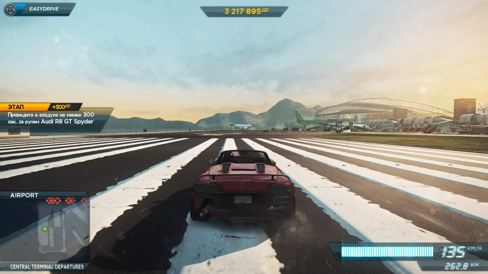 如何通过此方法用一辆车累计行驶10小时? 这不成问题。在之前的目标中,我们位于机场,这意味着我们处于一条长长的直道上。按照与逆向行驶方法相同的操作:先将车速提到一定程度,按下暂停键,回到游戏后,看到游戏开始自动保存,再次按下暂停键并返回。重复这些操作直至完成目标。