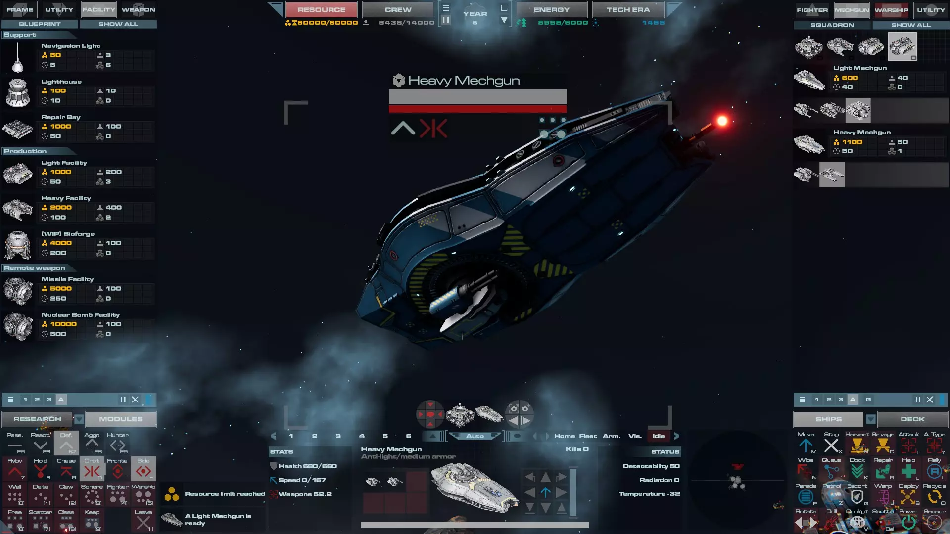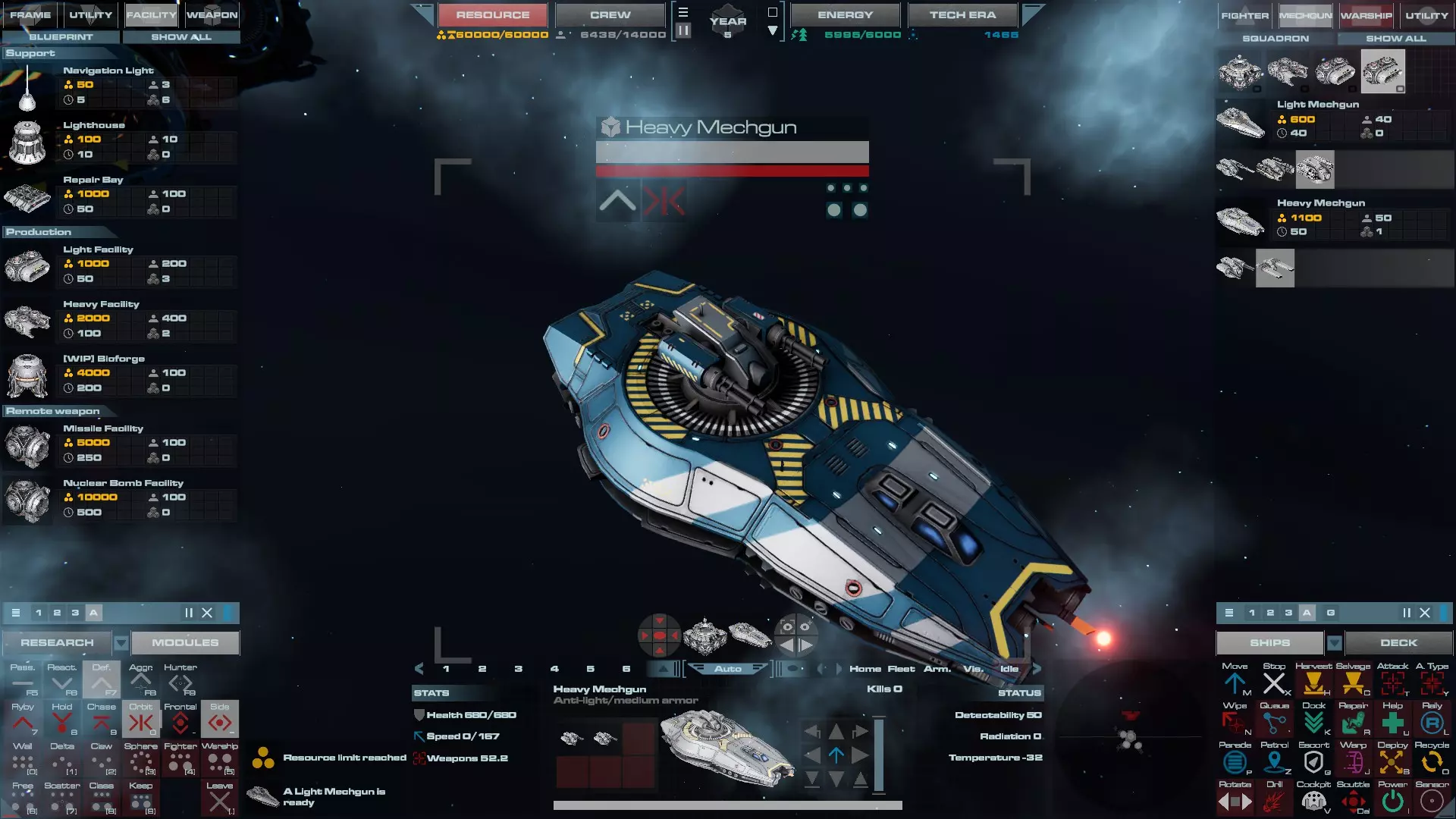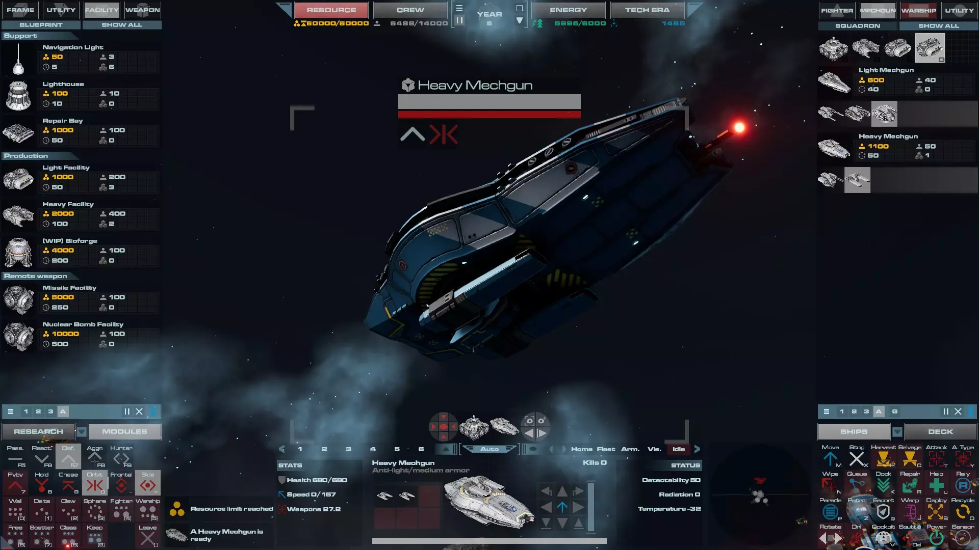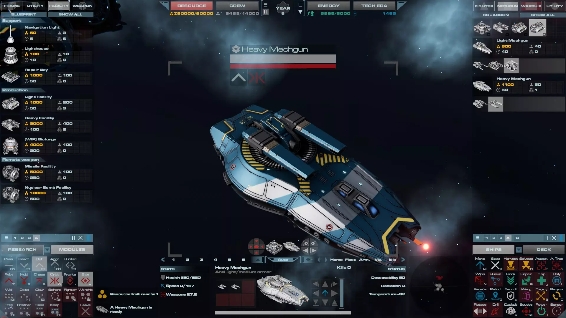 配备导弹炮塔的轻型巡洋舰。这是巡洋舰的重型版本,更适合对付其他巡洋舰和轻型护卫舰。它的速度仍然足以应对战斗机,因此可以作为改进型反打击 craft 巡洋舰,但成本更高。 重型巡洋舰
