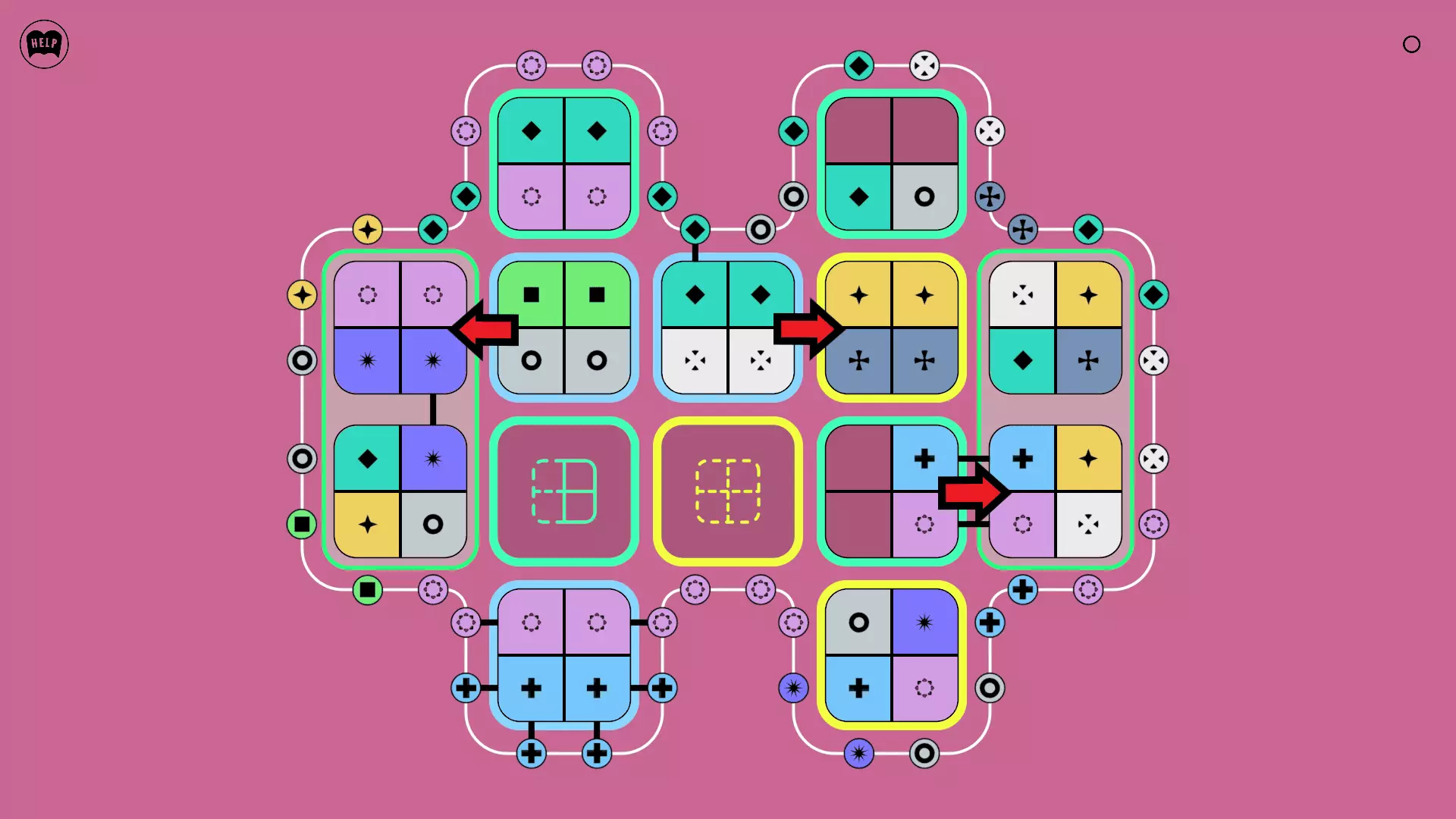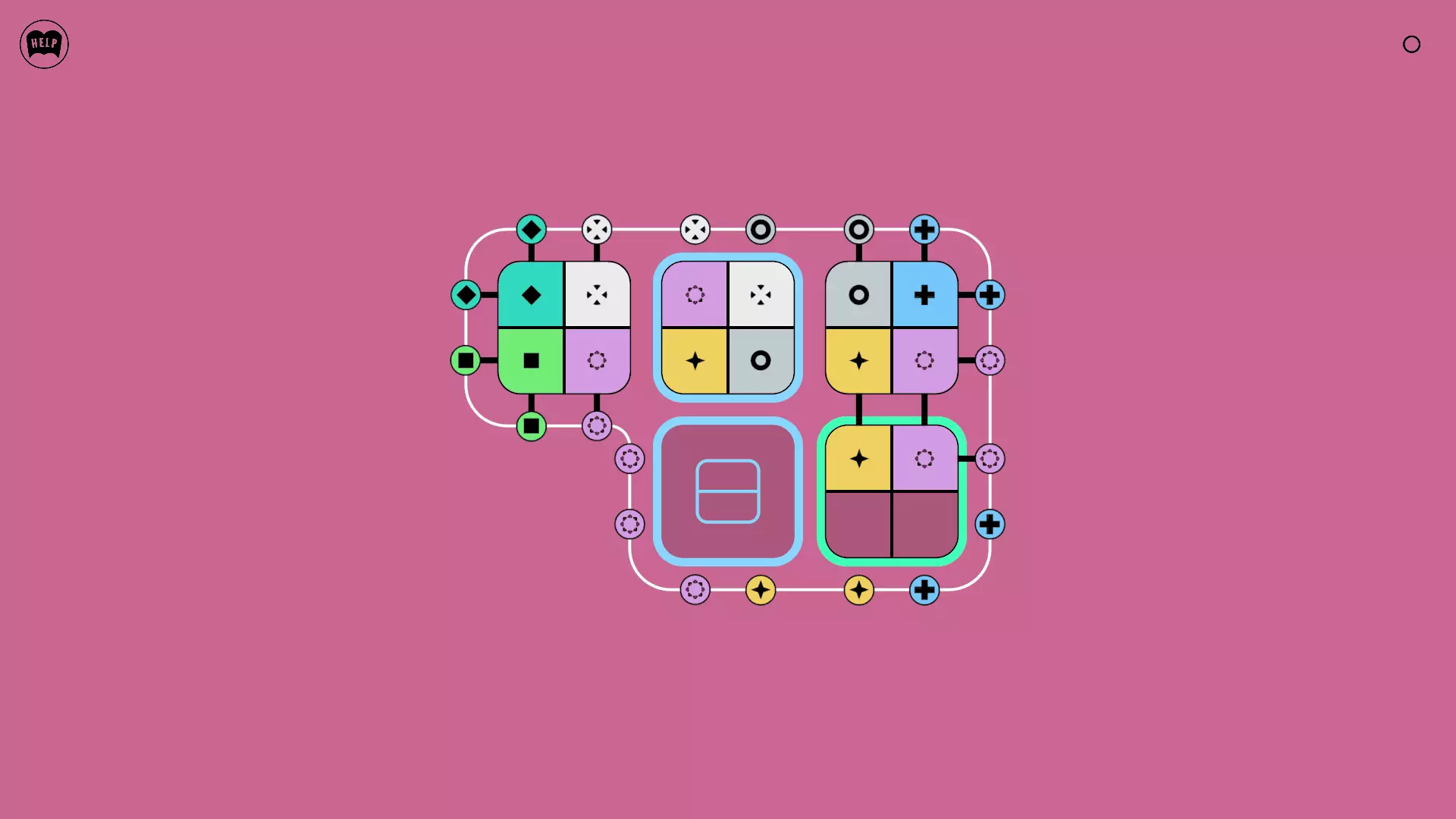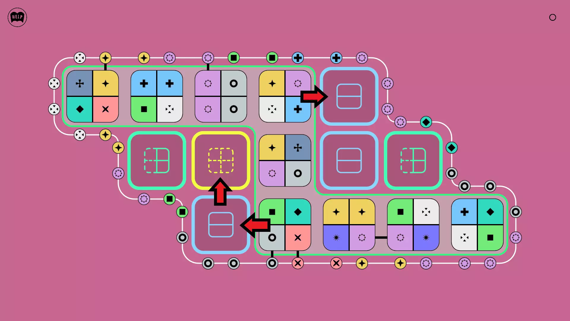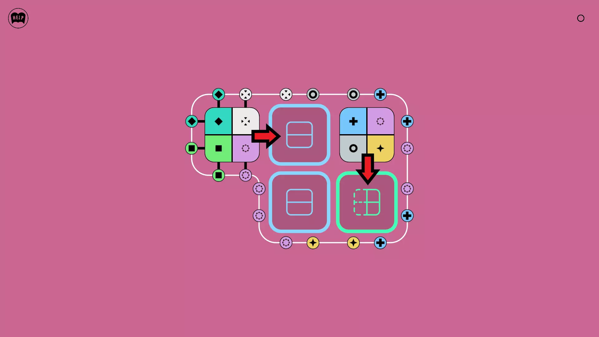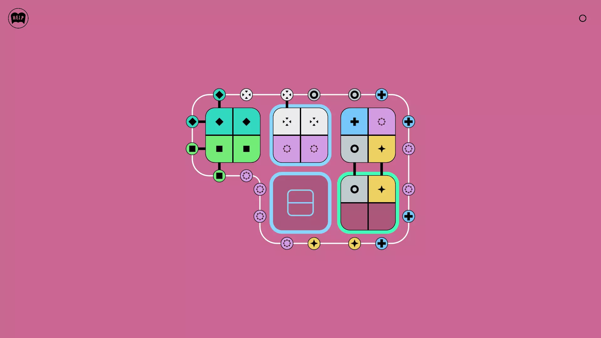 《Lines On Sides》关卡71-84图文攻略 简介 前18个关卡仅提供解决方案,因为解决这些关卡只需旋转或交换方块。 第19关及后续关卡包含步骤说明,解释如何分割、复制和转移方块。 由于Steam的限制,我不得不将本攻略分为两部分。 规则 旋转方块,直到方块上的图标与线条上或相邻方块上的符号匹配。当符号匹配时,它们之间会绘制一条线。 第7关引入了交换被绿线圈住的方块的功能。第14关新增了无法旋转或移动的方块,这类方块外有粗黑线环绕。 第19关新增了分裂平台,该平台外有蓝色线条环绕。此平台可将方块分裂为两个,或将两个方块合并为一个。