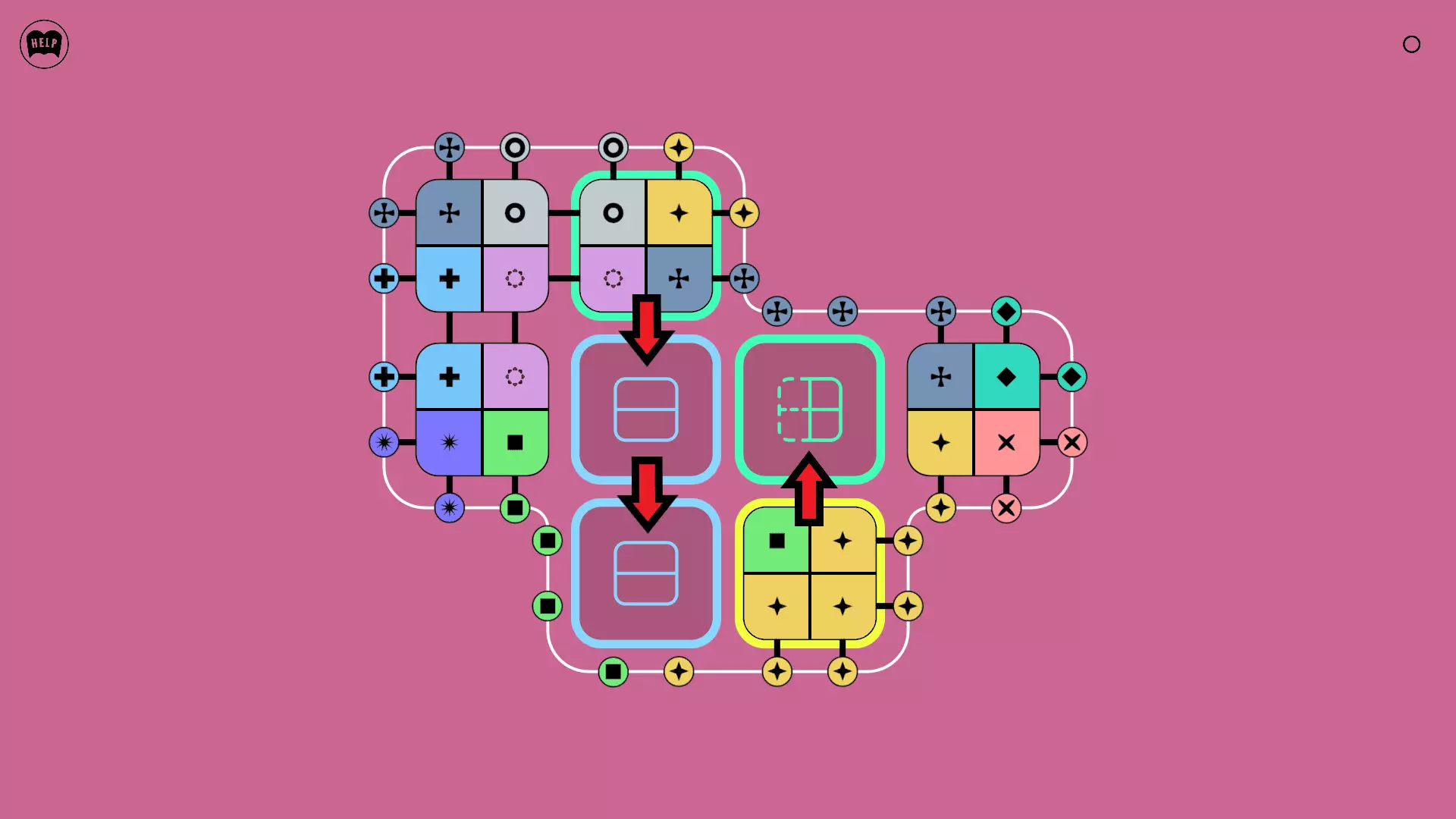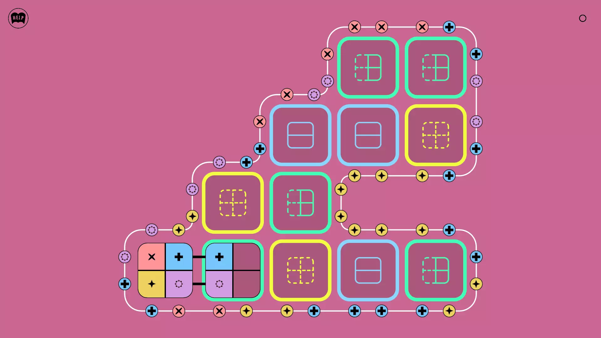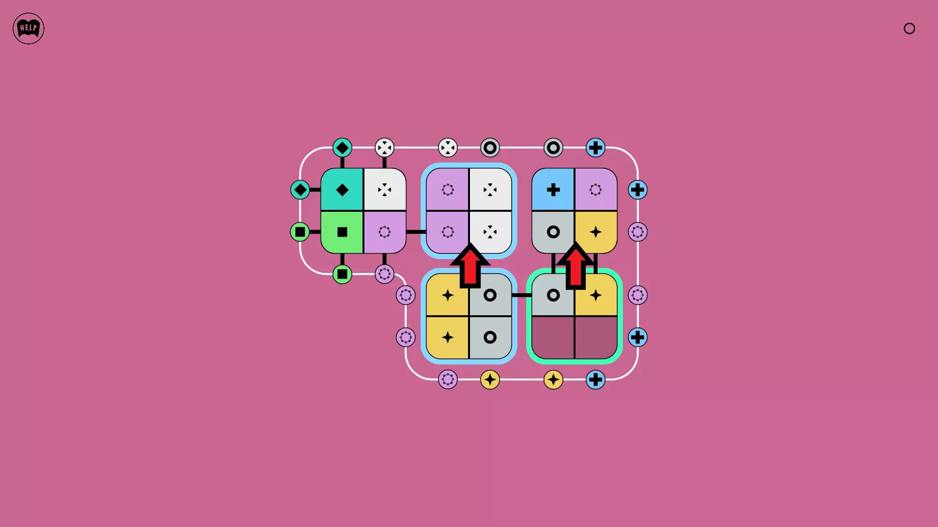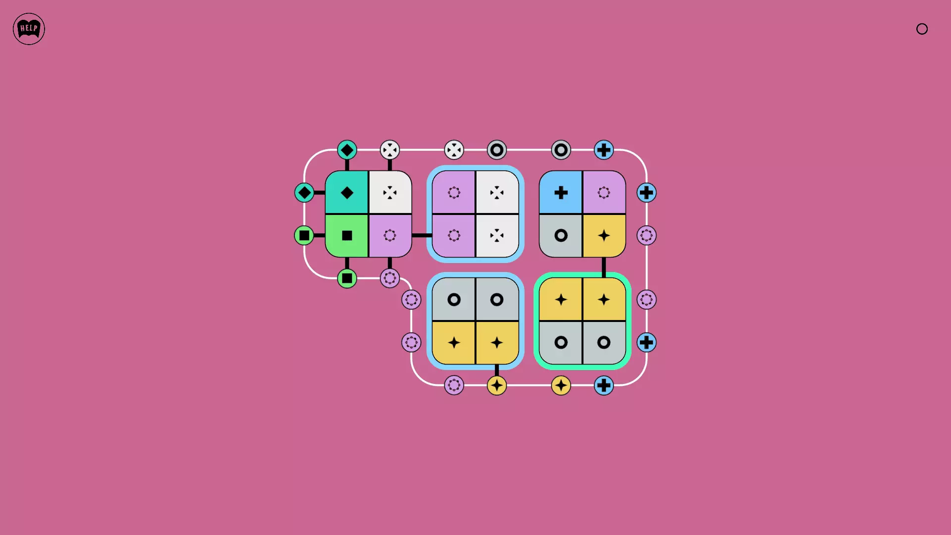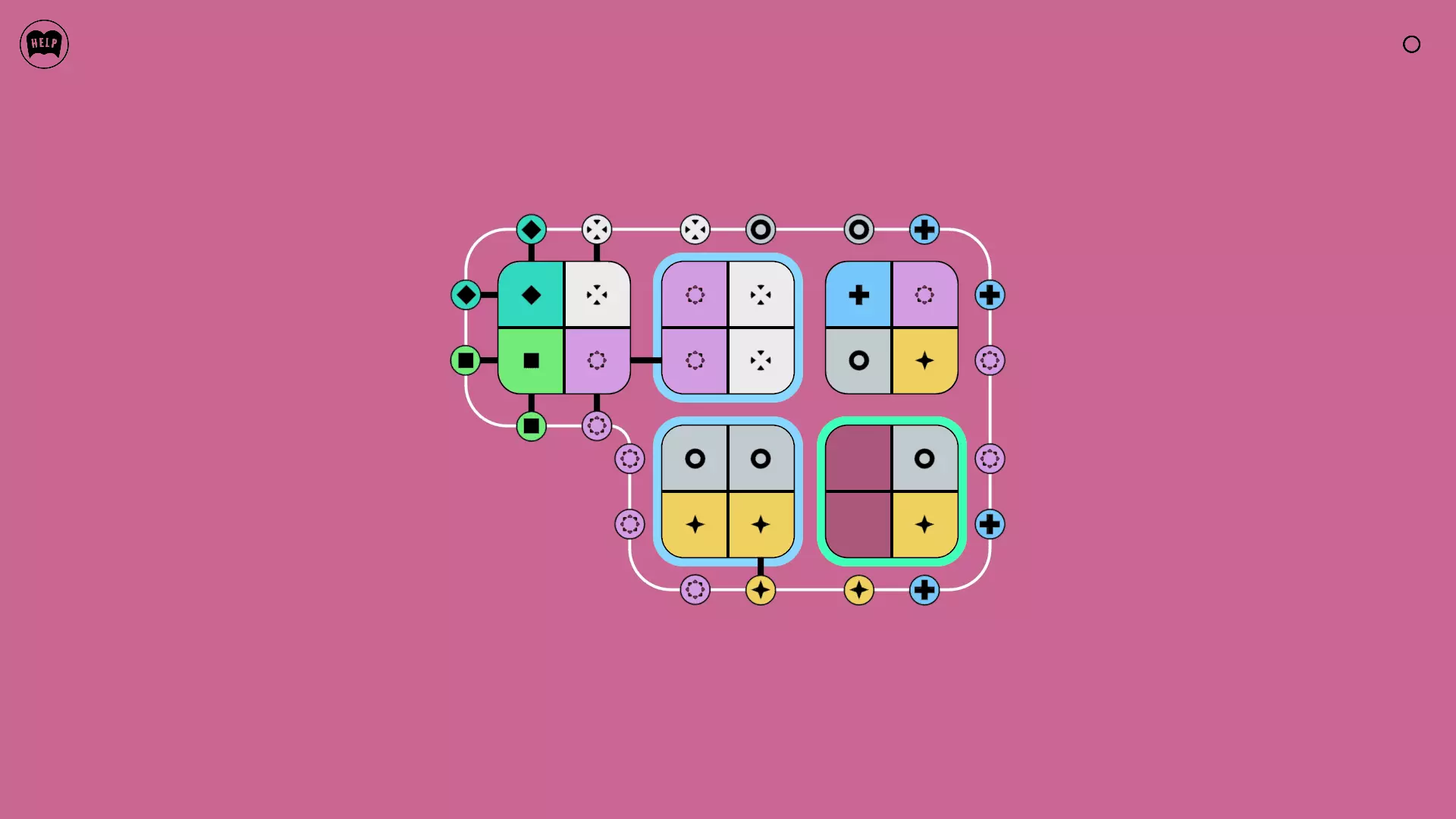 《Lines On Sides》关卡71-84图文攻略 简介 前18个关卡仅提供解决方案,因为解决这些关卡只需旋转或交换方块。 第19关及后续关卡包含步骤说明,解释如何分割、复制和转移方块。 由于Steam的限制,我不得不将本攻略分为两部分。 规则 旋转方块,直到方块上的图标与线条上或相邻方块上的符号匹配。当符号匹配时,它们之间会绘制一条线。 第7关引入了交换被绿线圈住的方块的功能。第14关新增了无法旋转或移动的方块,这类方块外有粗黑线环绕。 第19关新增了分裂平台,该平台外有蓝色线条环绕。此平台可将方块分裂为两个,或将两个方块合并为一个。