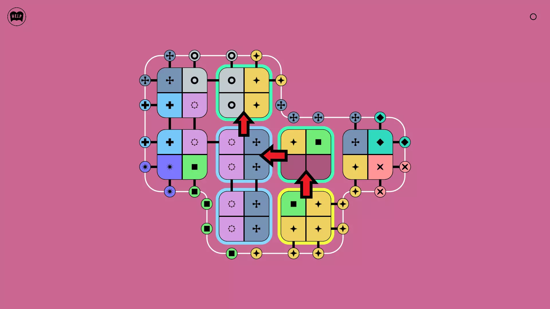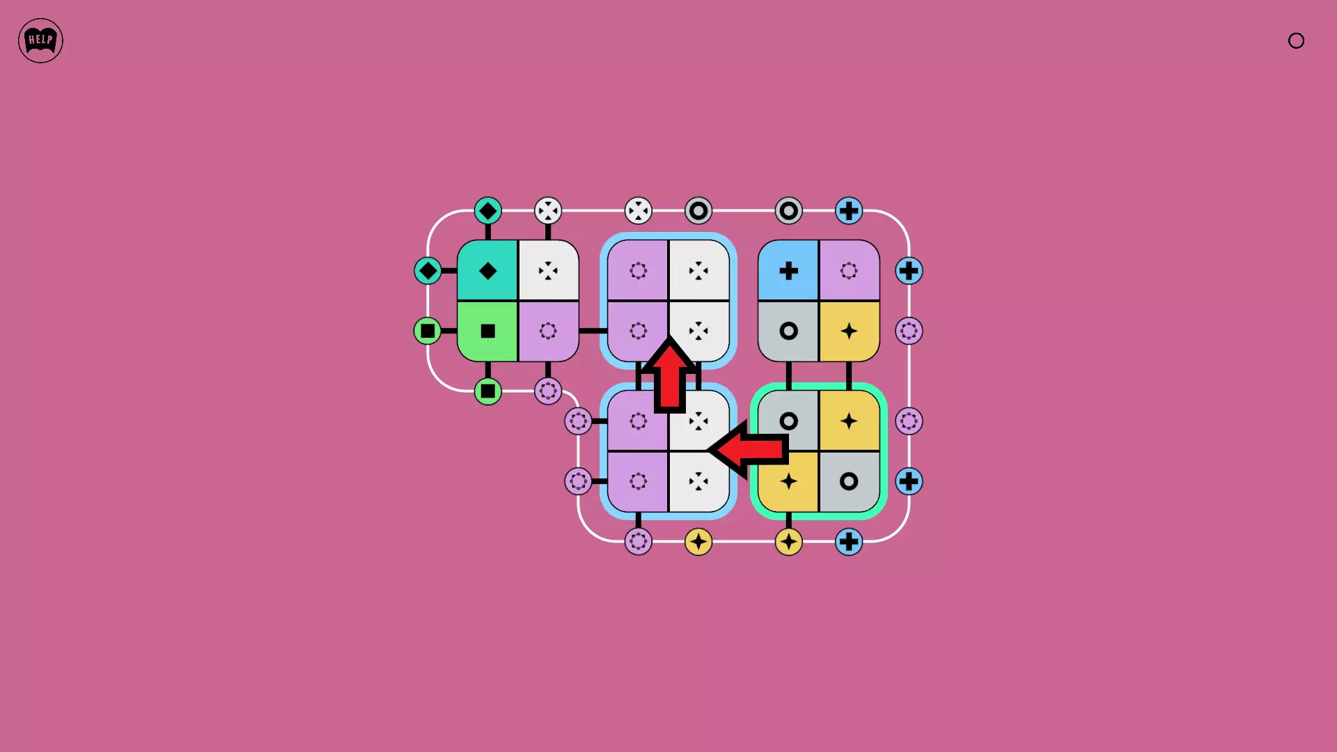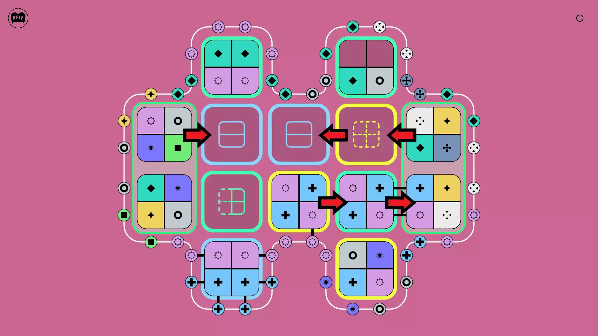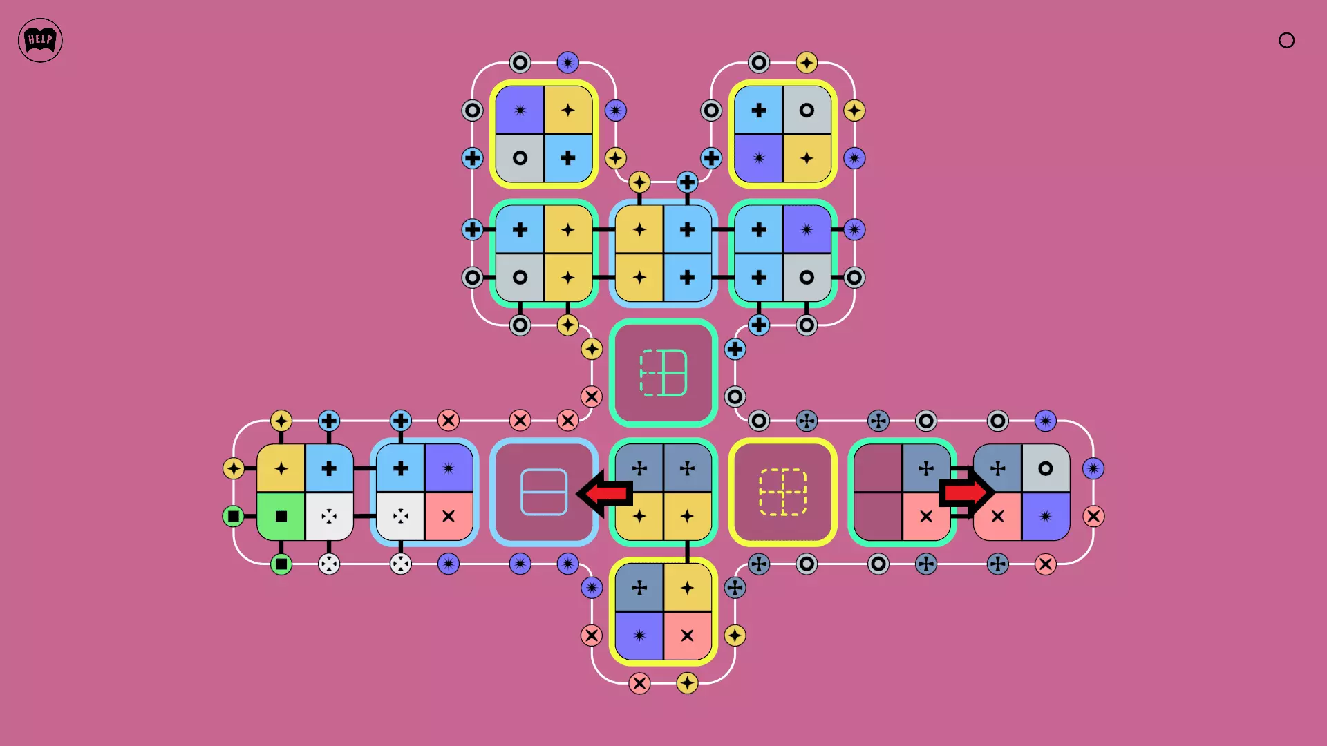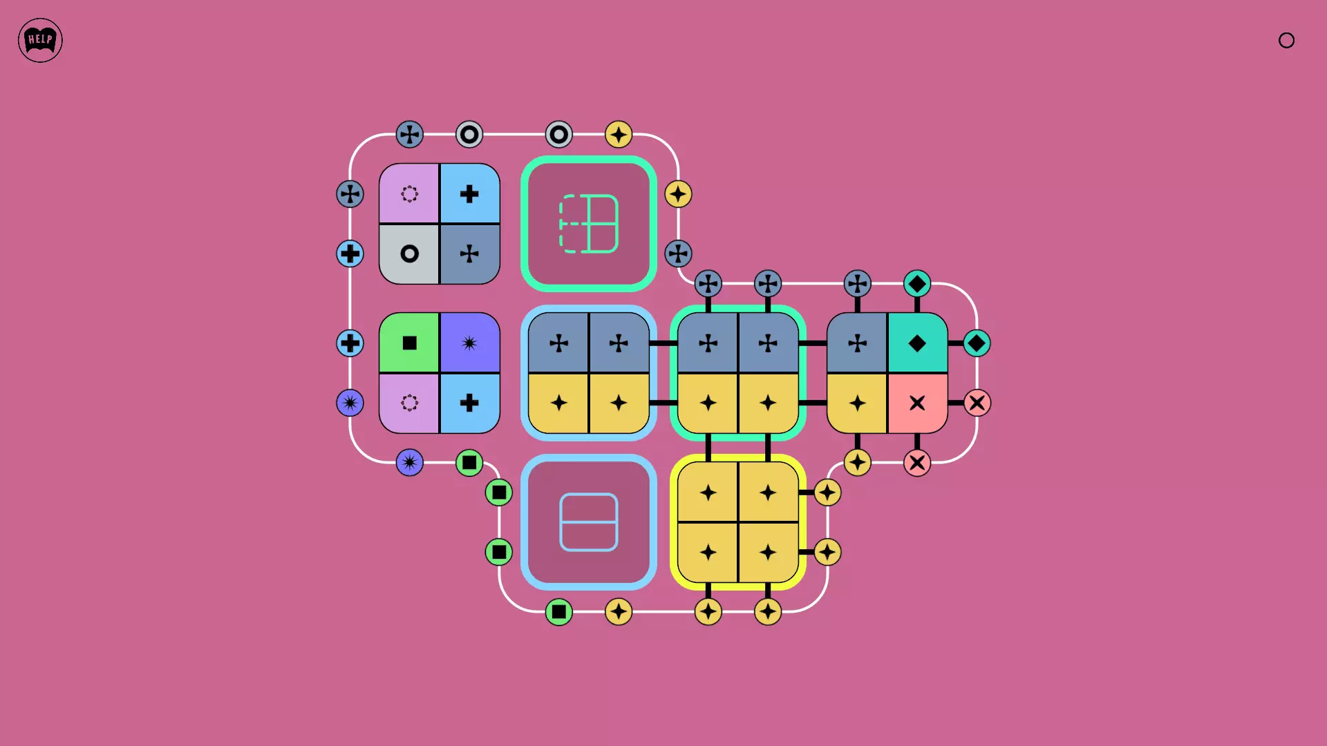 《Lines On Sides》关卡71-84图文攻略 简介 前18个关卡仅提供解决方案,因为解决这些关卡只需旋转或交换方块。 第19关及后续关卡包含步骤说明,解释如何分割、复制和转移方块。 由于Steam的限制,我不得不将本攻略分为两部分。 规则 旋转方块,直到方块上的图标与线条上或相邻方块上的符号匹配。当符号匹配时,它们之间会绘制一条线。 第7关引入了交换被绿线圈住的方块的功能。第14关新增了无法旋转或移动的方块,这类方块外有粗黑线环绕。 第19关新增了分裂平台,该平台外有蓝色线条环绕。此平台可将方块分裂为两个,或将两个方块合并为一个。