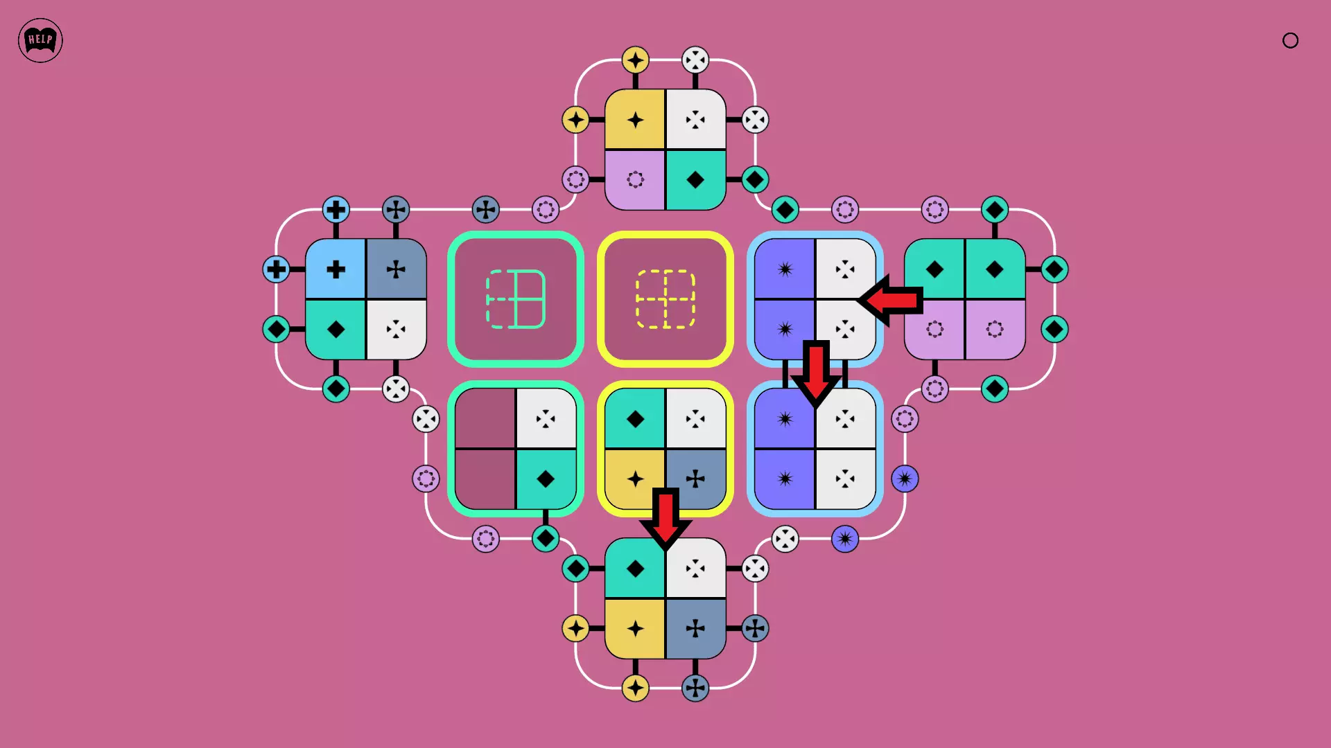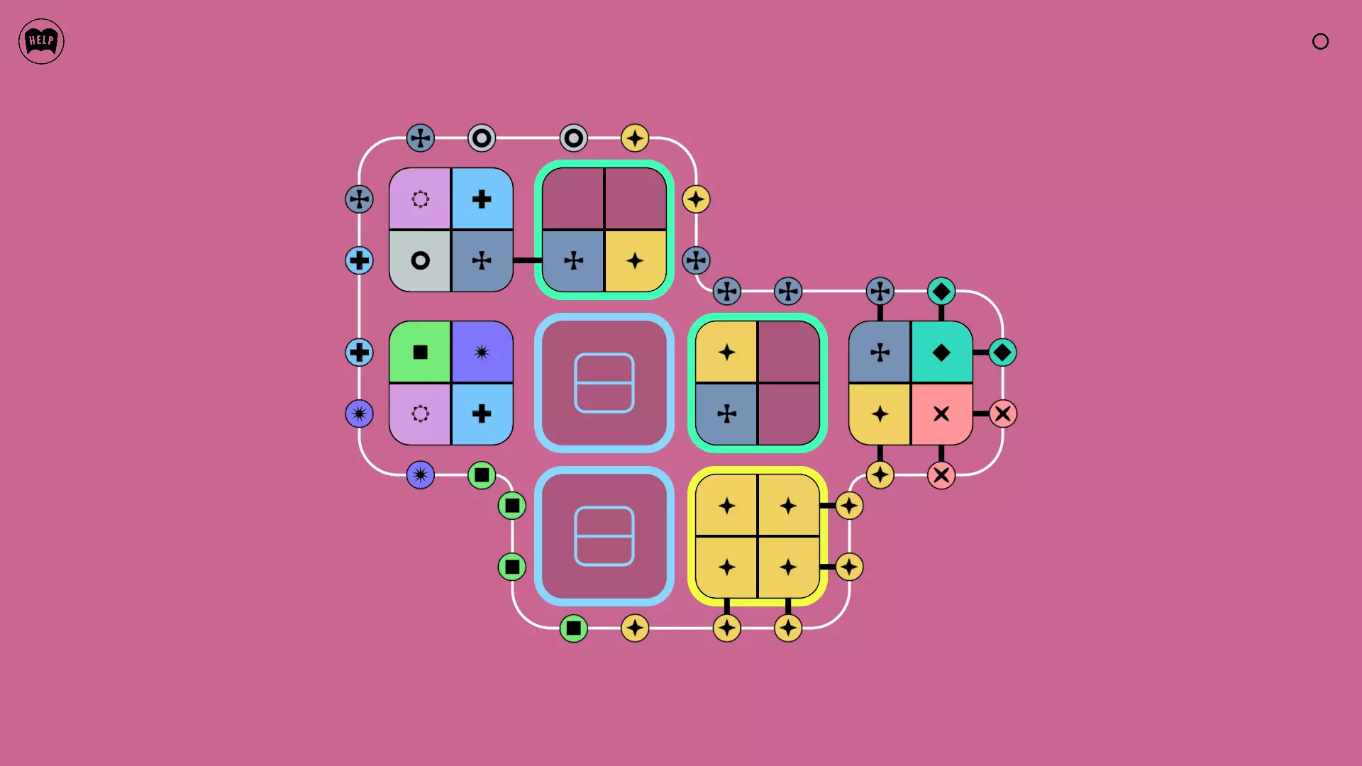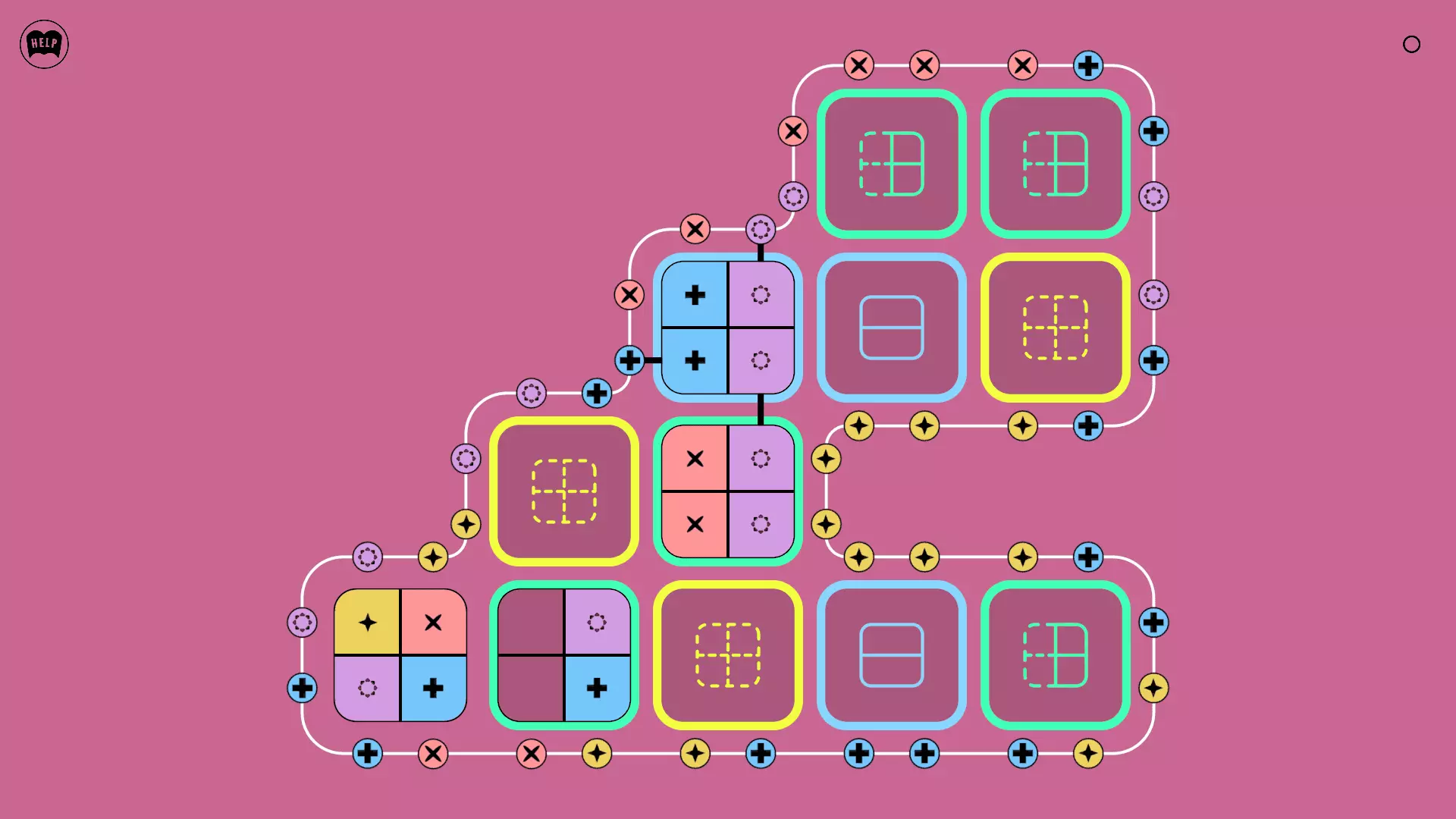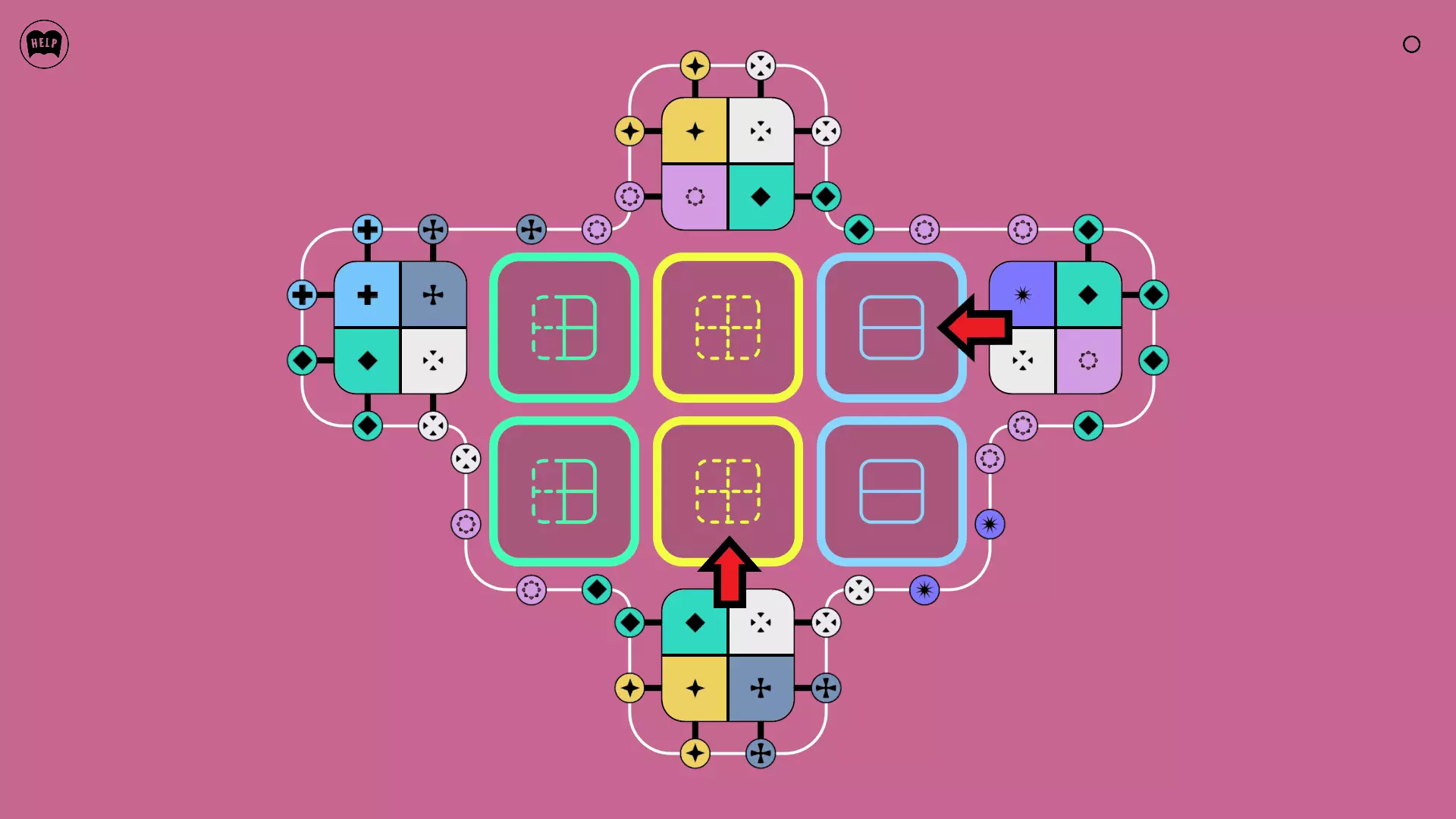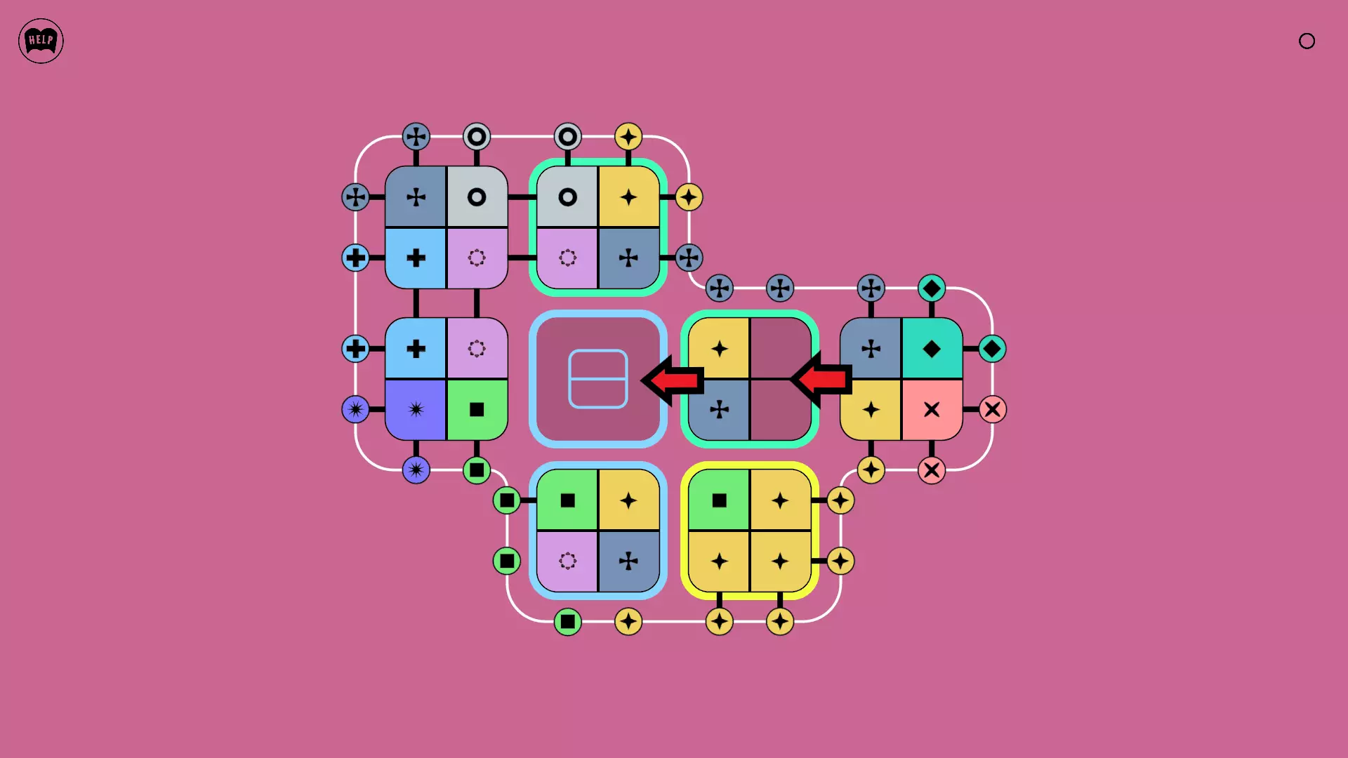 《Lines On Sides》关卡71-84图文攻略 简介 前18个关卡仅提供解决方案,因为解决这些关卡只需旋转或交换方块。 第19关及后续关卡包含步骤说明,解释如何分割、复制和转移方块。 由于Steam的限制,我不得不将本攻略分为两部分。 规则 旋转方块,直到方块上的图标与线条上或相邻方块上的符号匹配。当符号匹配时,它们之间会绘制一条线。 第7关引入了交换被绿线圈住的方块的功能。第14关新增了无法旋转或移动的方块,这类方块外有粗黑线环绕。 第19关新增了分裂平台,该平台外有蓝色线条环绕。此平台可将方块分裂为两个,或将两个方块合并为一个。