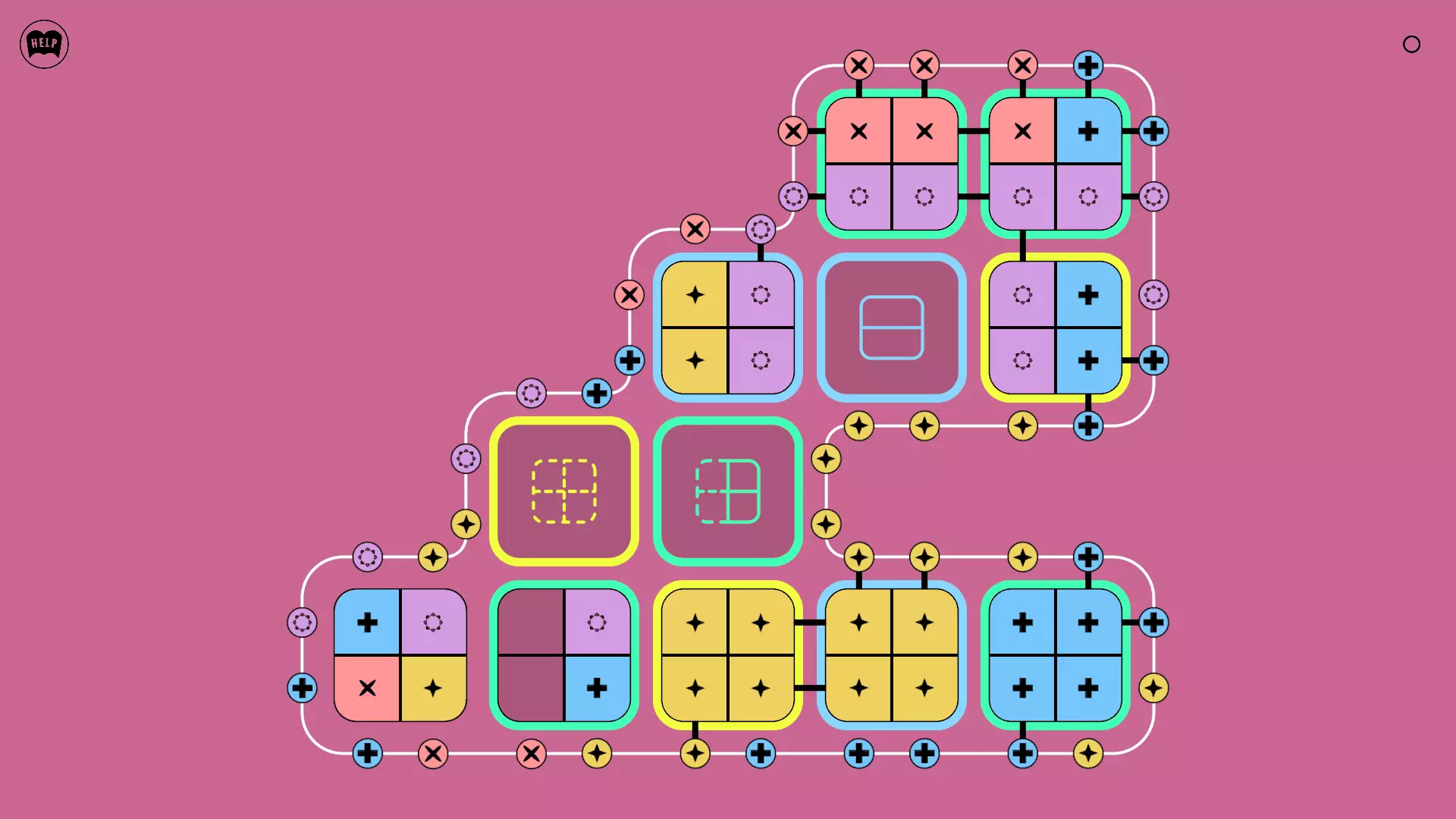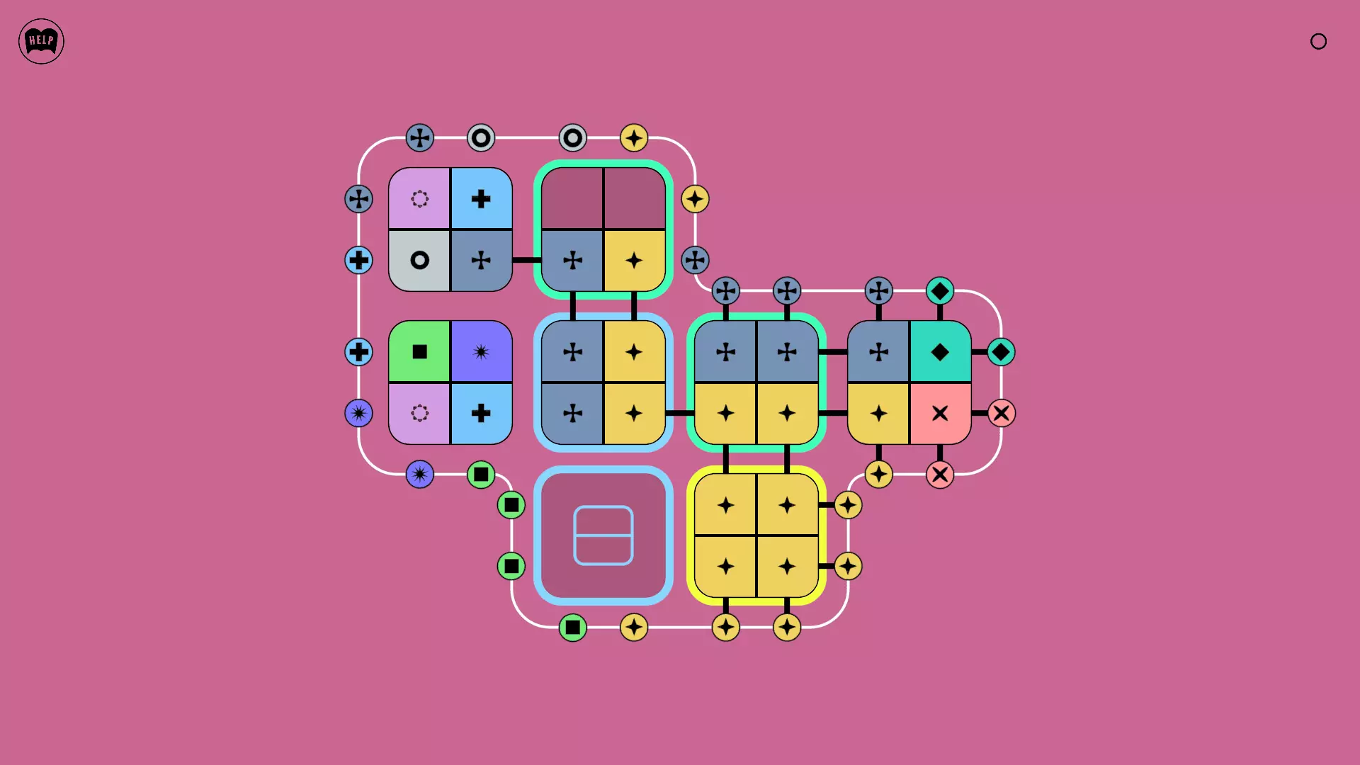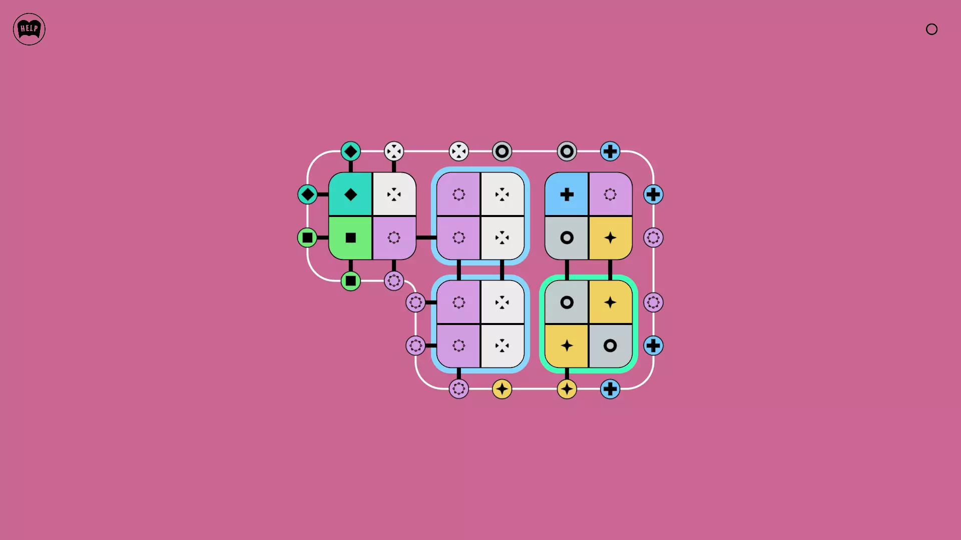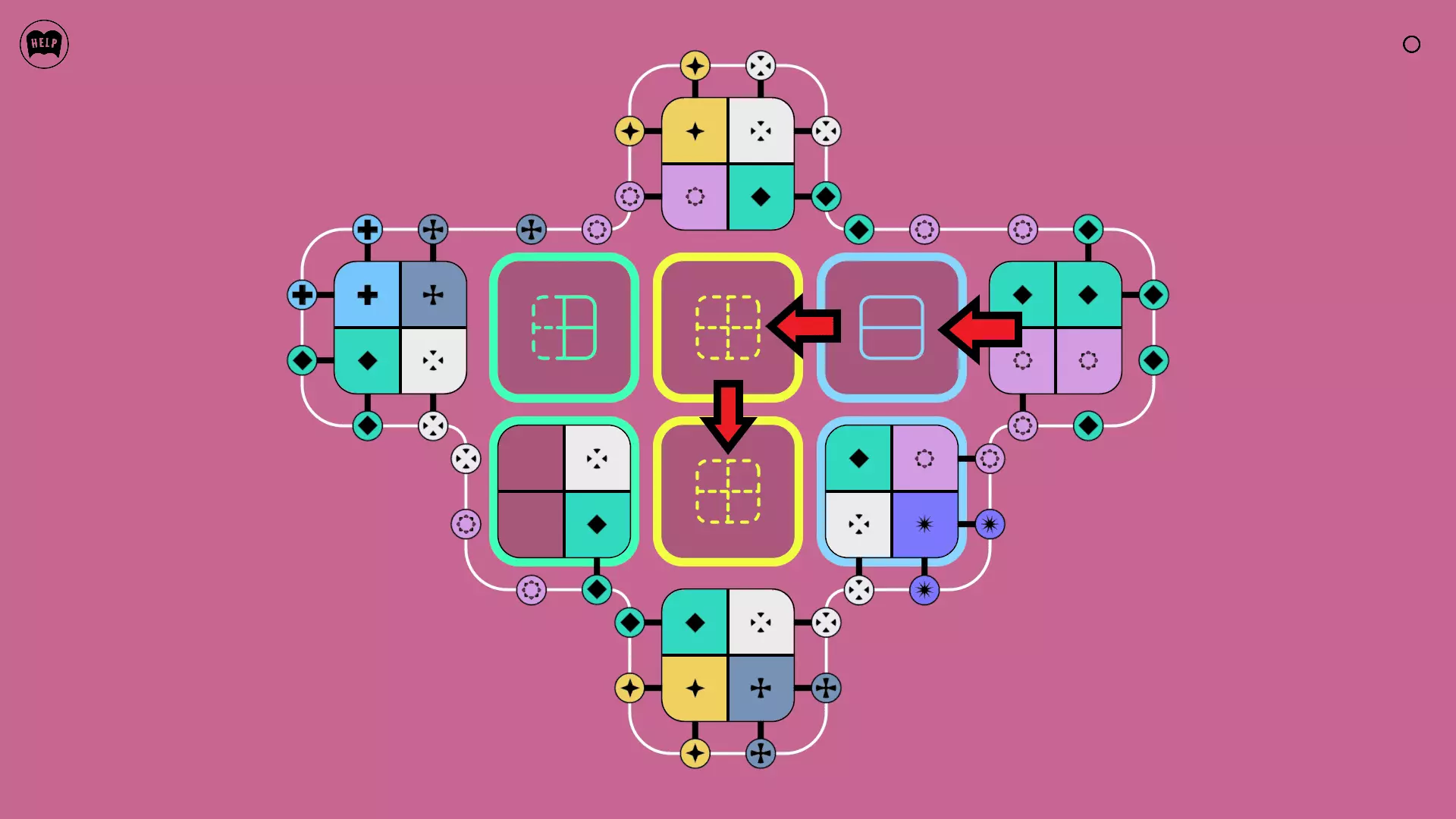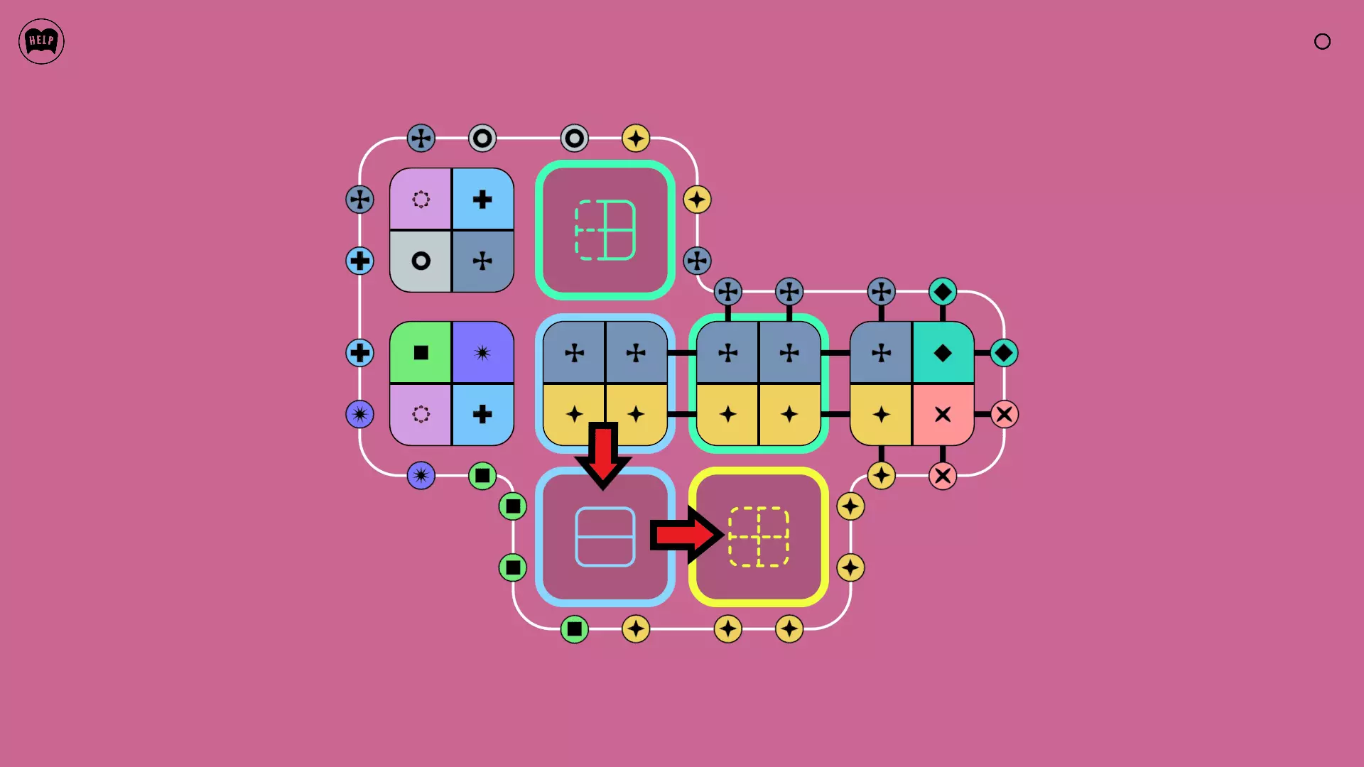《Lines On Sides》关卡71-84图文攻略 简介 前18个关卡仅提供解决方案,因为解决这些关卡只需旋转或交换方块。 第19关及后续关卡包含步骤说明,解释如何分割、复制和转移方块。 由于Steam的限制,我不得不将本攻略分为两部分。 规则 旋转方块,直到方块上的图标与线条上或相邻方块上的符号匹配。当符号匹配时,它们之间会绘制一条线。 第7关引入了交换被绿线圈住的方块的功能。第14关新增了无法旋转或移动的方块,这类方块外有粗黑线环绕。 第19关新增了分裂平台,该平台外有蓝色线条环绕。此平台可将方块分裂为两个,或将两个方块合并为一个。