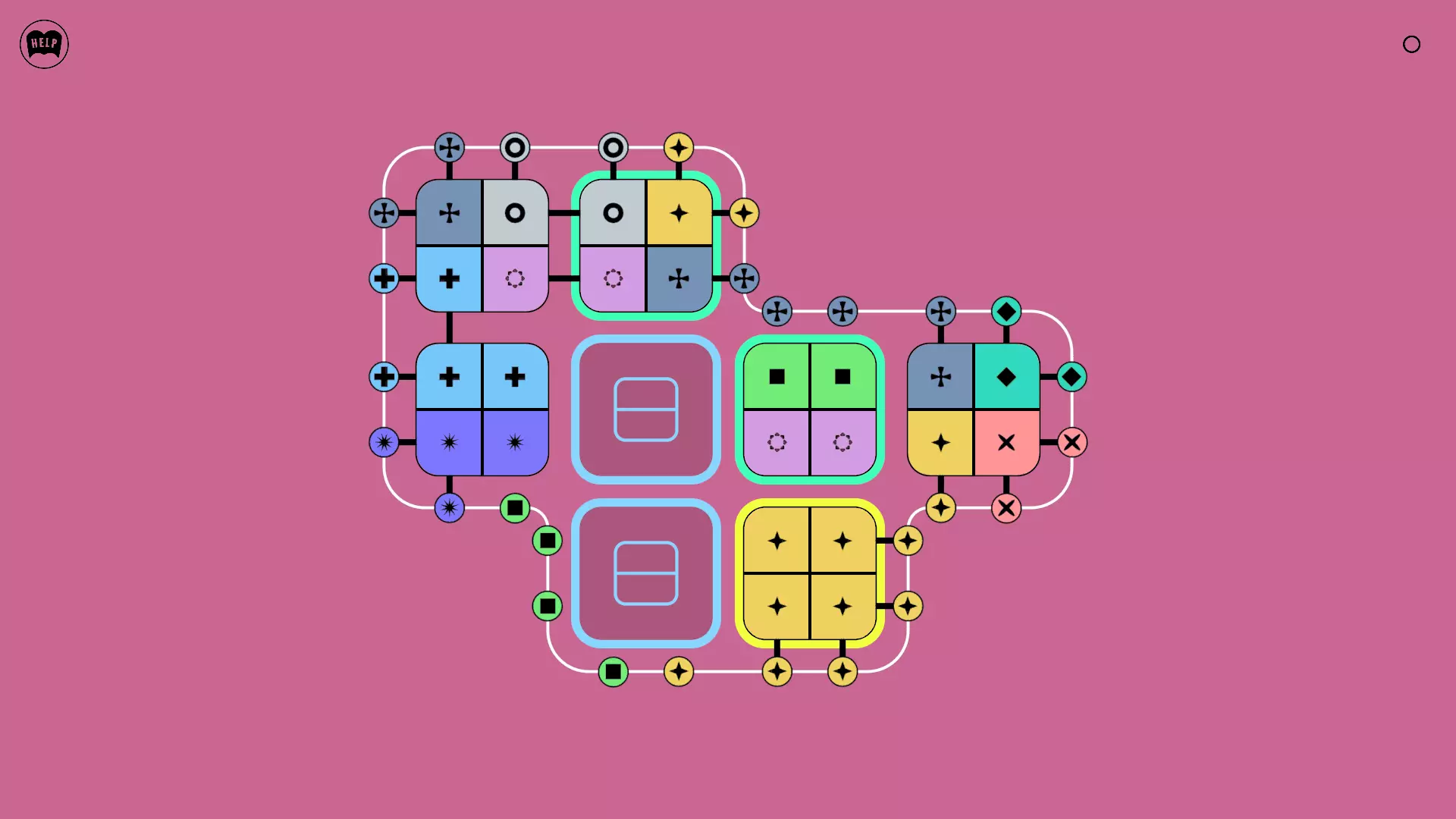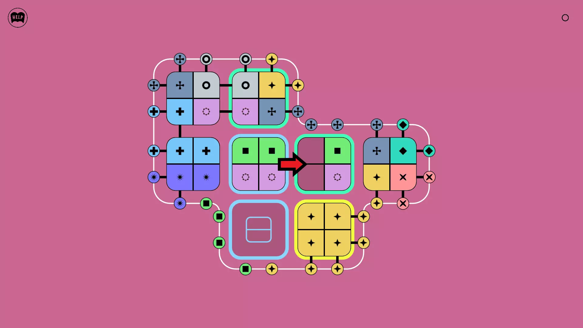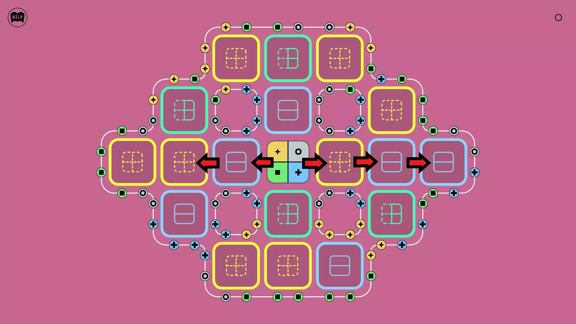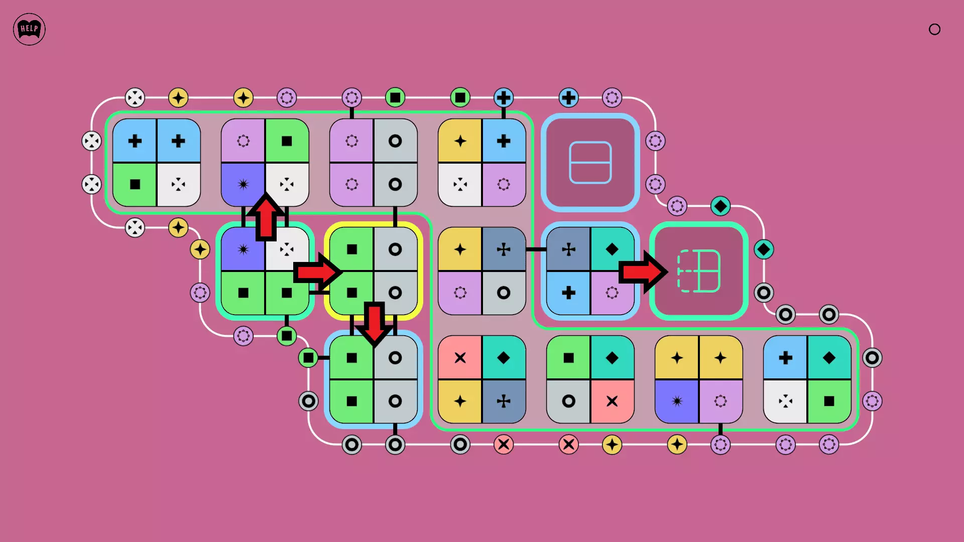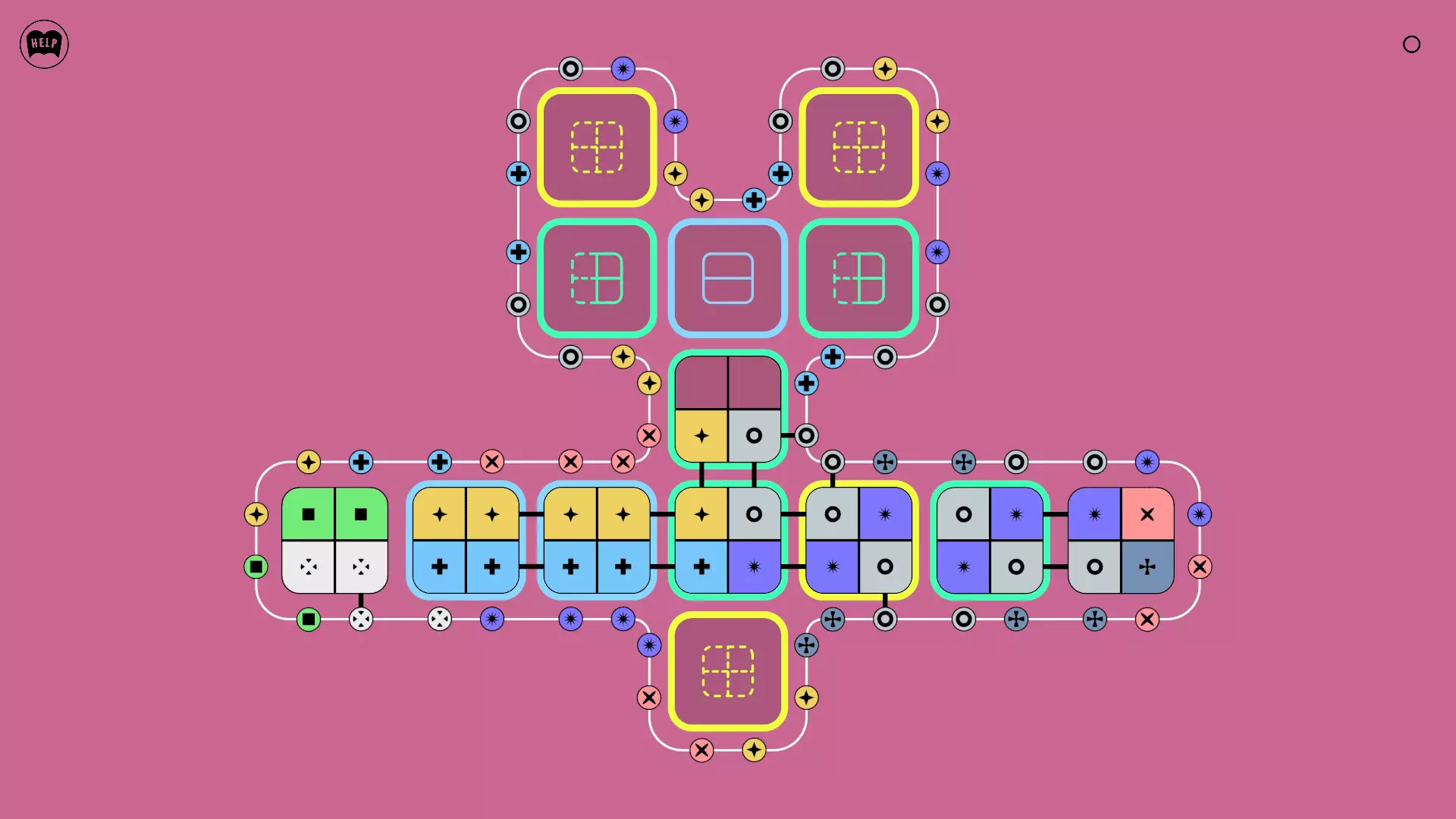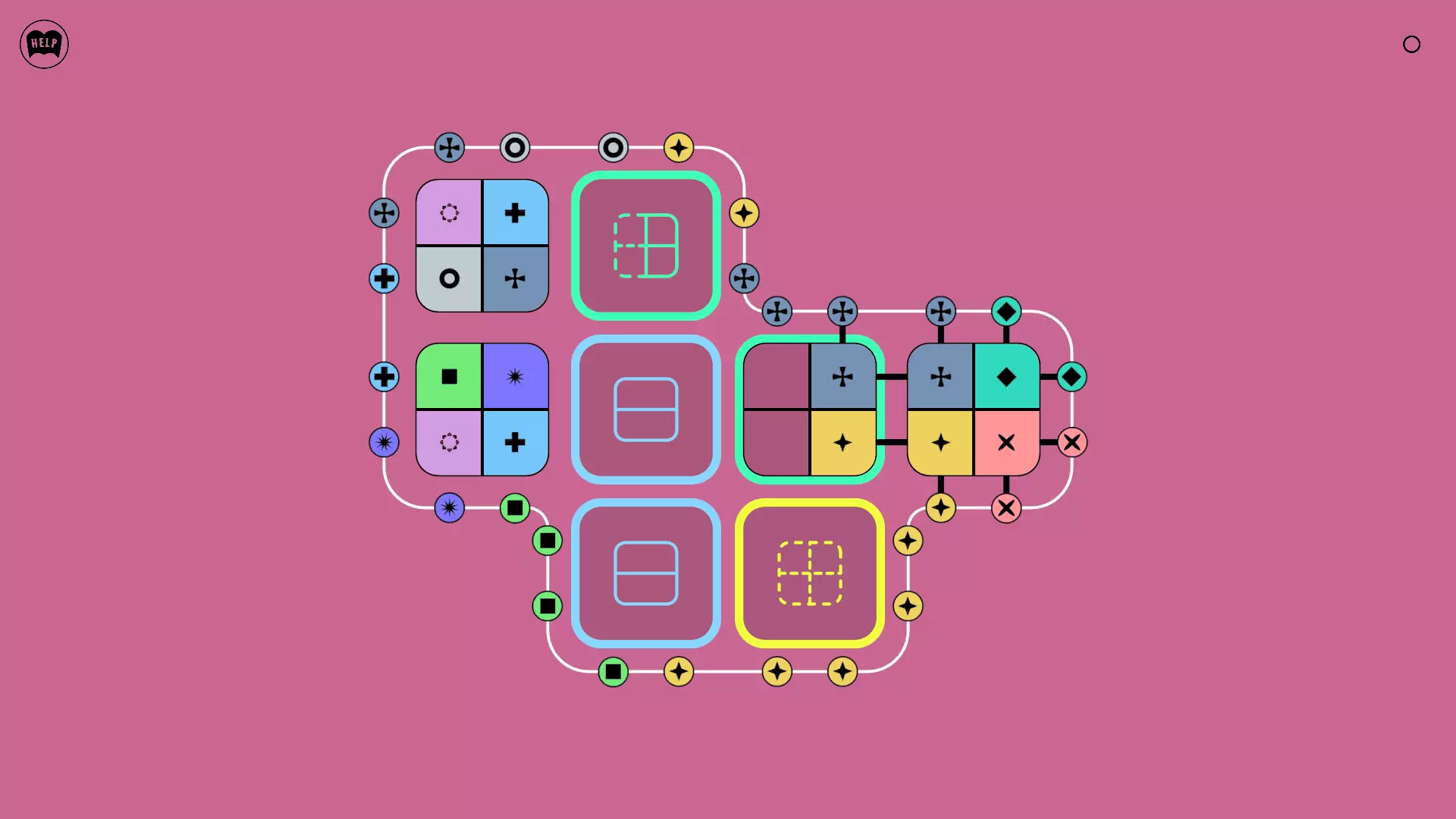 《Lines On Sides》关卡71-84图文攻略 简介 前18个关卡仅提供解决方案,因为解决这些关卡只需旋转或交换方块。 第19关及后续关卡包含步骤说明,解释如何分割、复制和转移方块。 由于Steam的限制,我不得不将本攻略分为两部分。 规则 旋转方块,直到方块上的图标与线条上或相邻方块上的符号匹配。当符号匹配时,它们之间会绘制一条线。 第7关引入了交换被绿线圈住的方块的功能。第14关新增了无法旋转或移动的方块,这类方块外有粗黑线环绕。 第19关新增了分裂平台,该平台外有蓝色线条环绕。此平台可将方块分裂为两个,或将两个方块合并为一个。