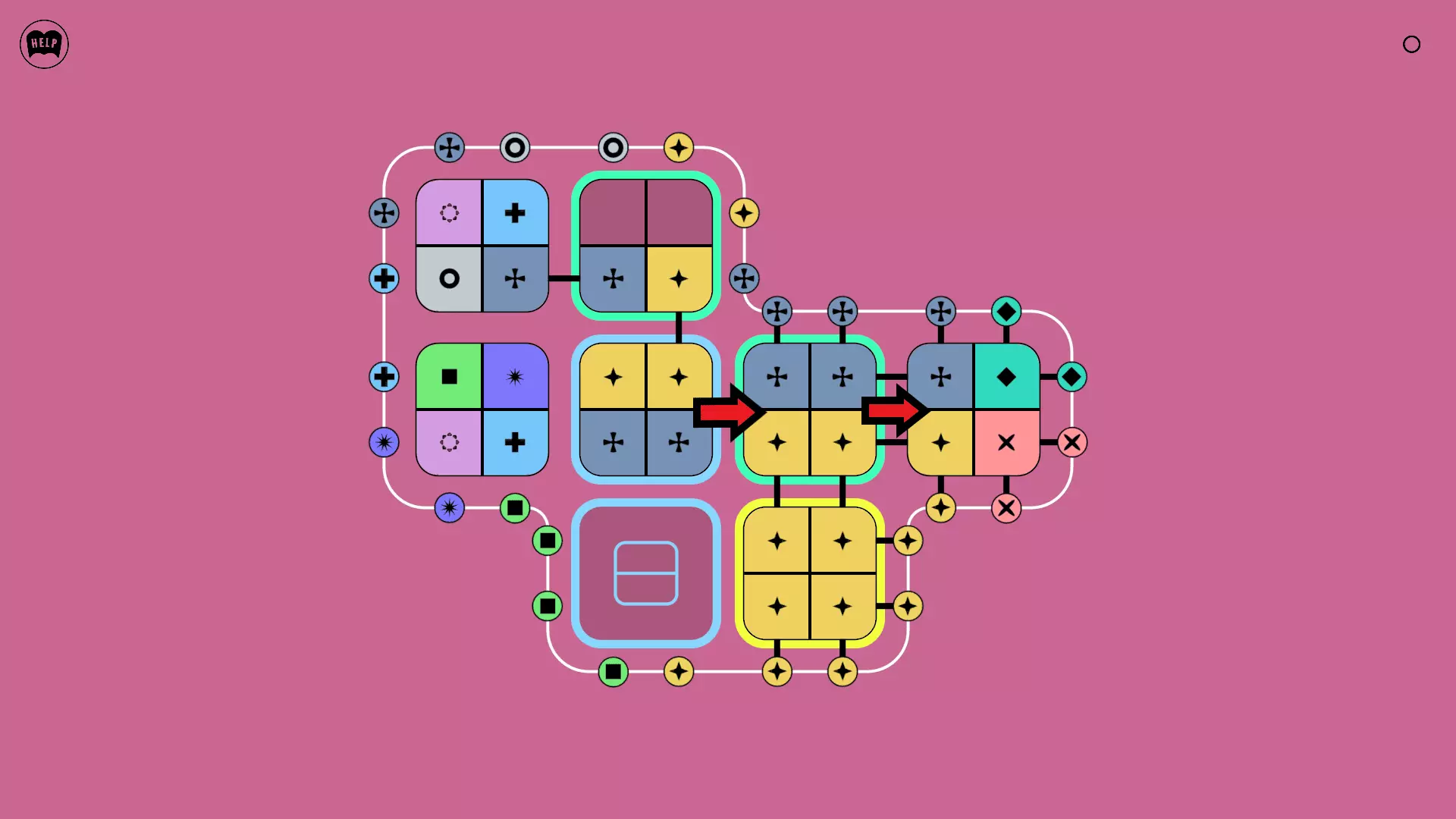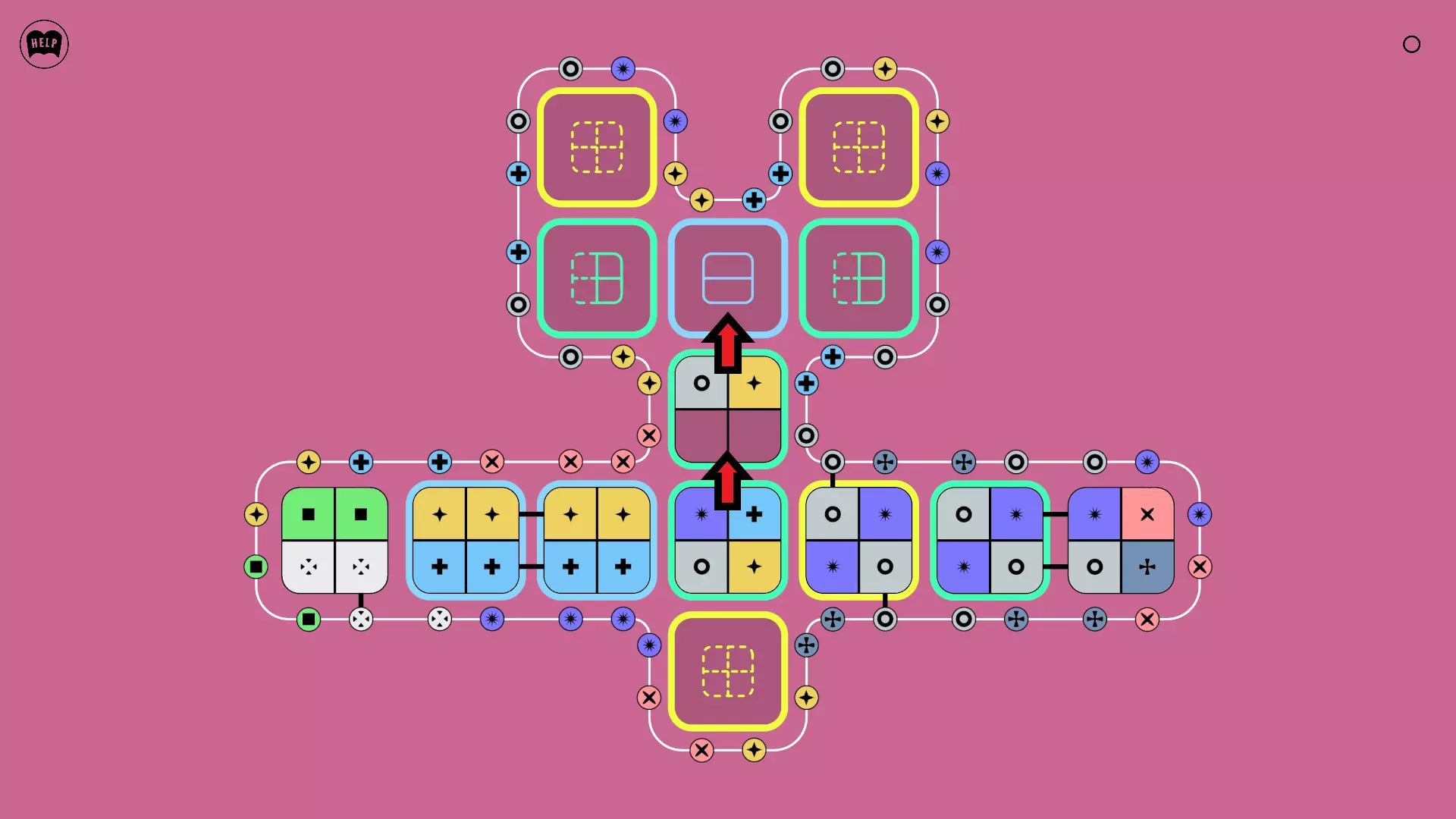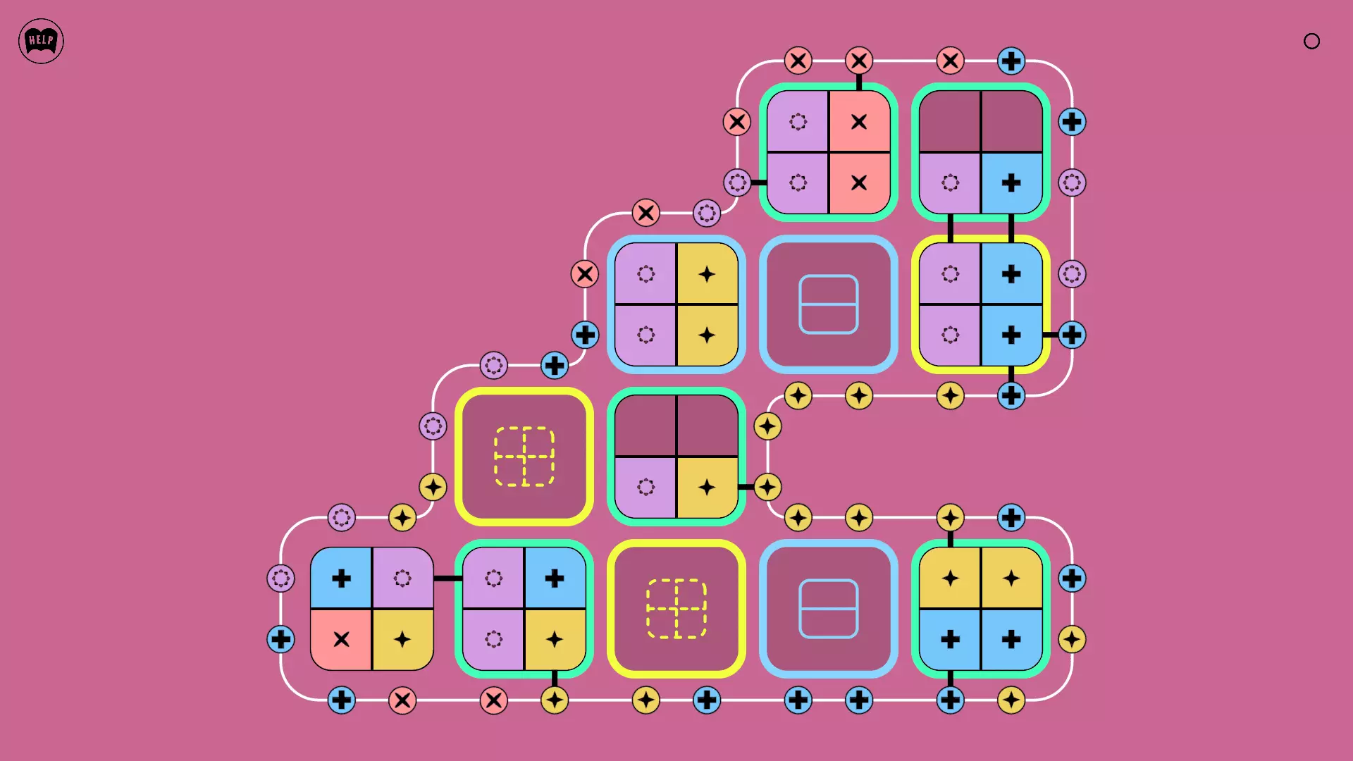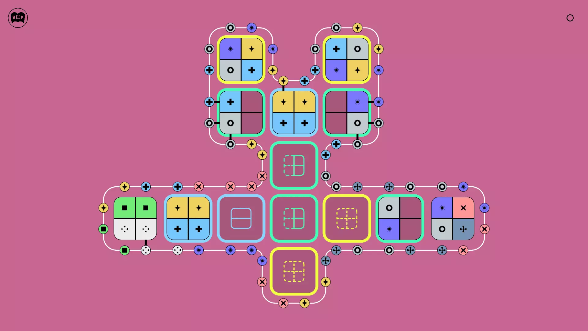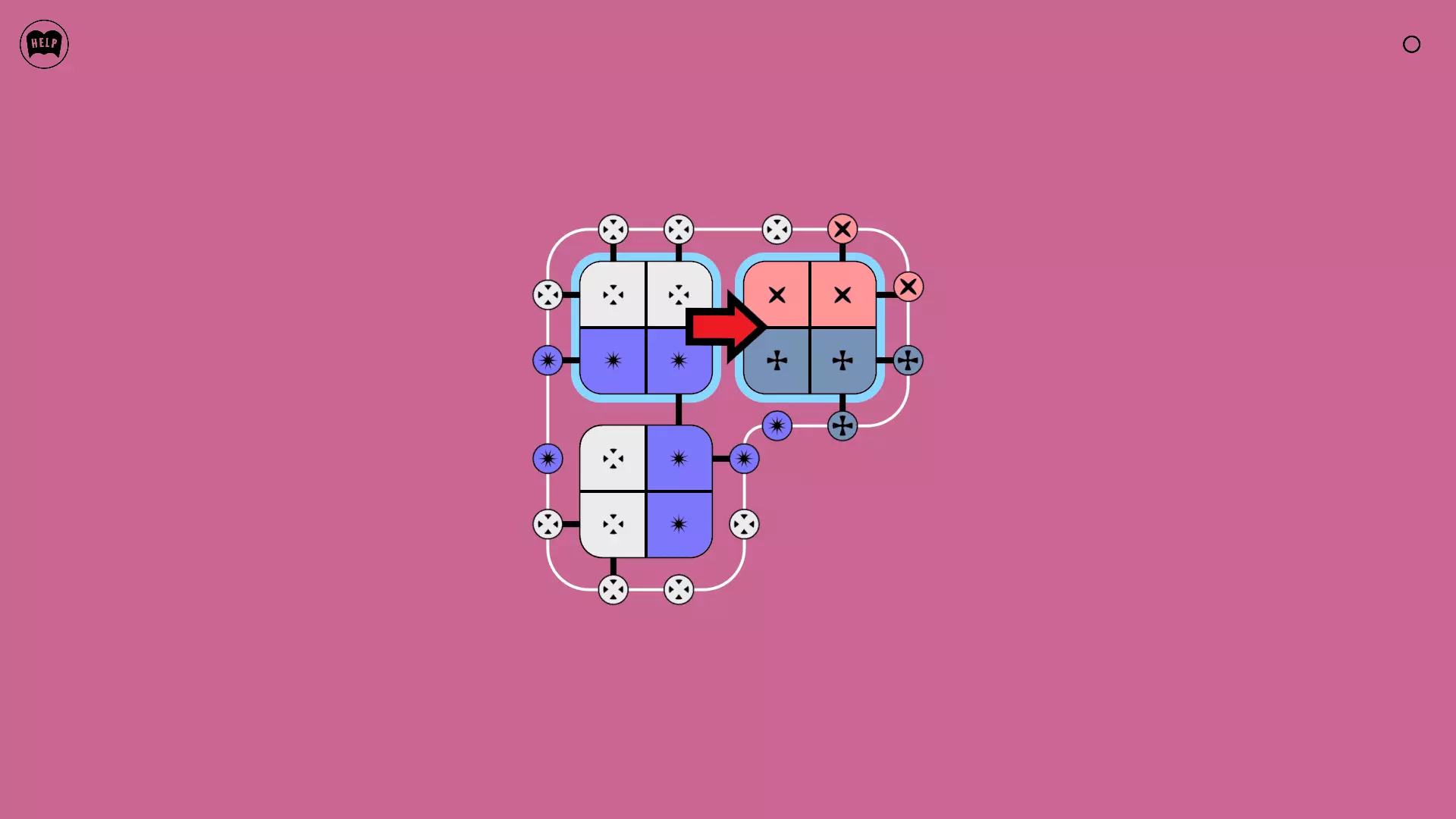 《Lines On Sides》关卡71-84图文攻略 简介 前18个关卡仅提供解决方案,因为解决这些关卡只需旋转或交换方块。 第19关及后续关卡包含步骤说明,解释如何分割、复制和转移方块。 由于Steam的限制,我不得不将本攻略分为两部分。 规则 旋转方块,直到方块上的图标与线条上或相邻方块上的符号匹配。当符号匹配时,它们之间会绘制一条线。 第7关引入了交换被绿线圈住的方块的功能。第14关新增了无法旋转或移动的方块,这类方块外有粗黑线环绕。 第19关新增了分裂平台,该平台外有蓝色线条环绕。此平台可将方块分裂为两个,或将两个方块合并为一个。