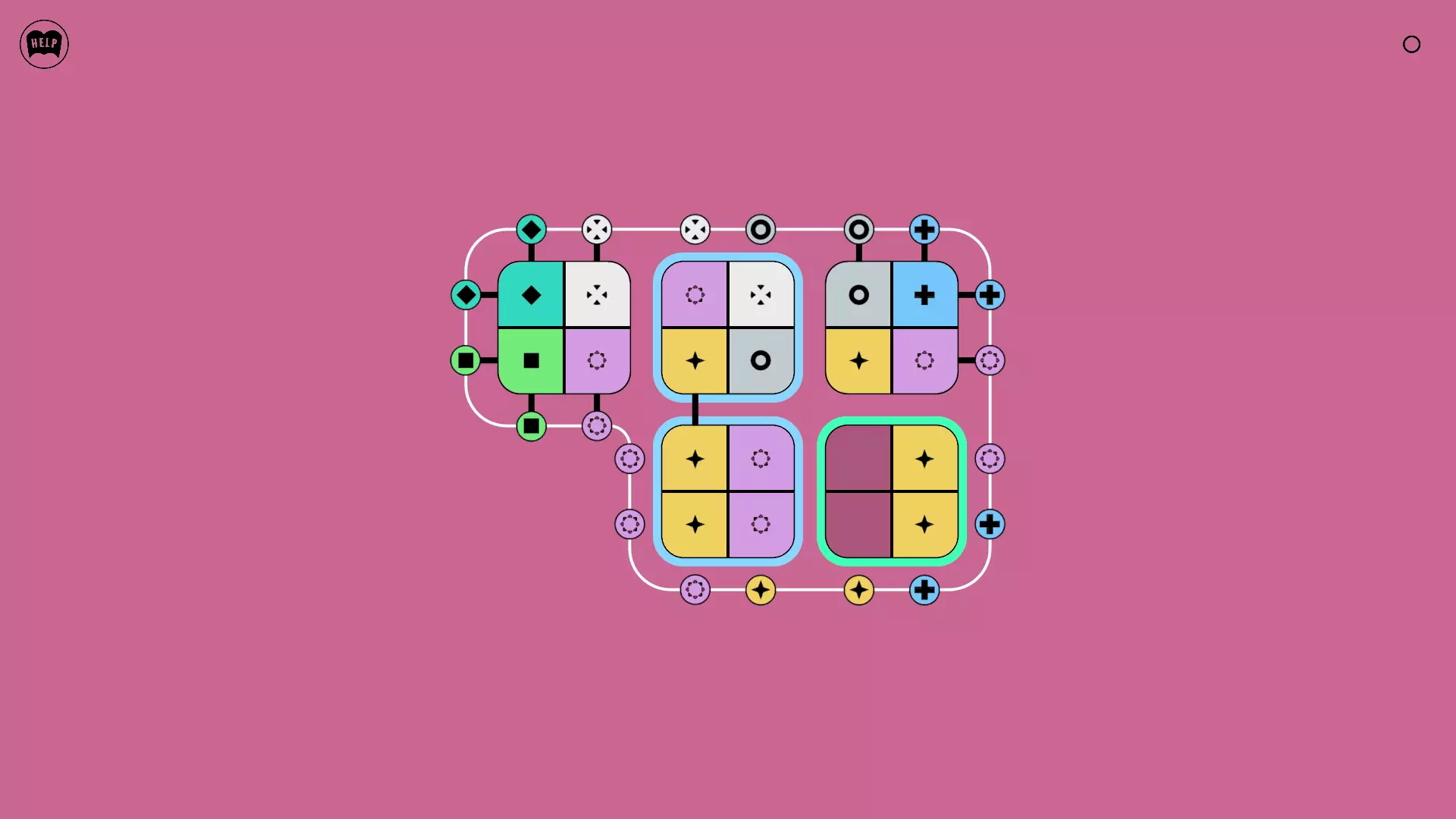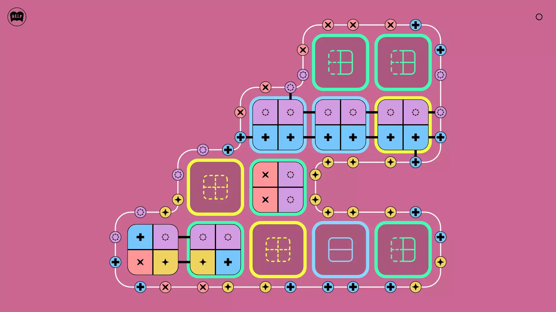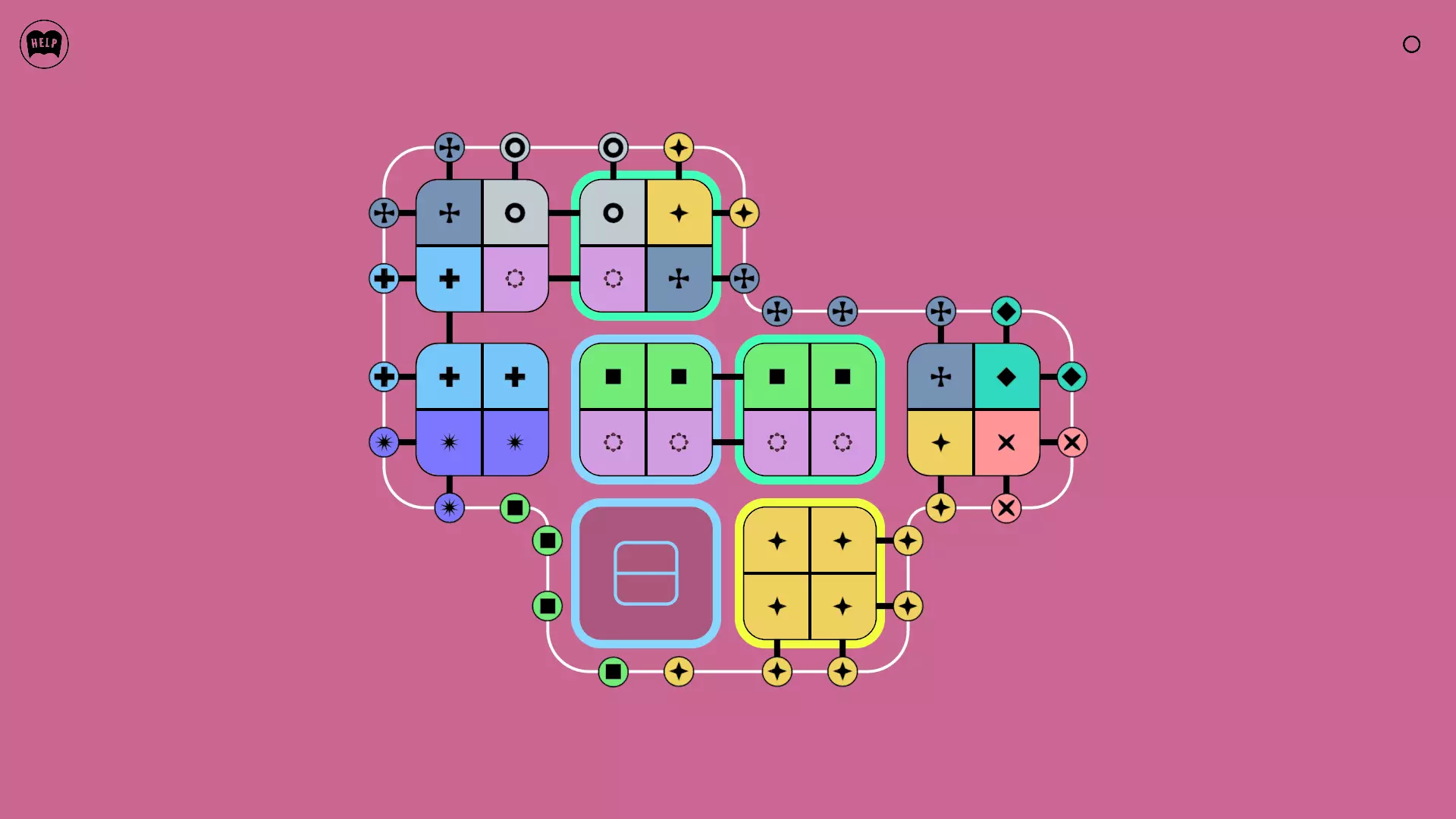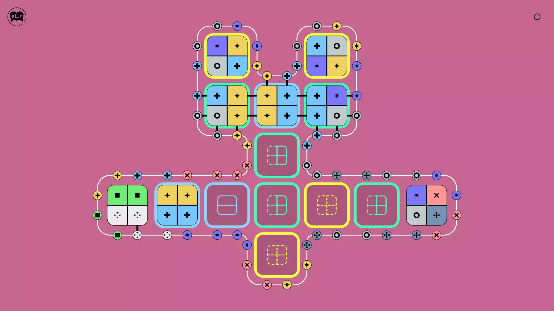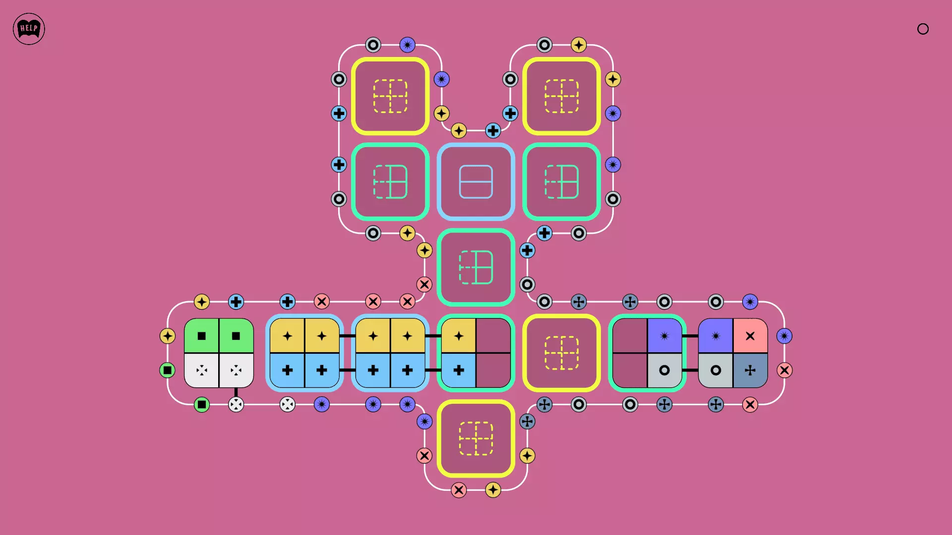 《Lines On Sides》关卡71-84图文攻略 简介 前18个关卡仅提供解决方案,因为解决这些关卡只需旋转或交换方块。 第19关及后续关卡包含步骤说明,解释如何分割、复制和转移方块。 由于Steam的限制,我不得不将本攻略分为两部分。 规则 旋转方块,直到方块上的图标与线条上或相邻方块上的符号匹配。当符号匹配时,它们之间会绘制一条线。 第7关引入了交换被绿线圈住的方块的功能。第14关新增了无法旋转或移动的方块,这类方块外有粗黑线环绕。 第19关新增了分裂平台,该平台外有蓝色线条环绕。此平台可将方块分裂为两个,或将两个方块合并为一个。