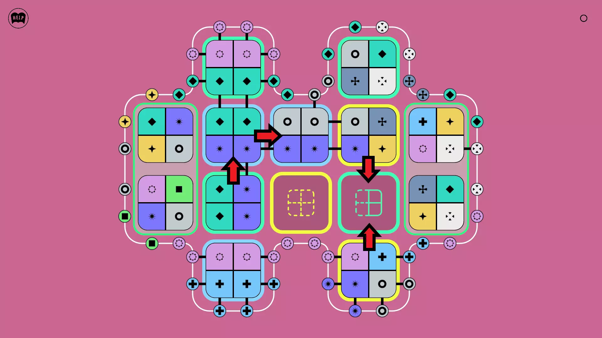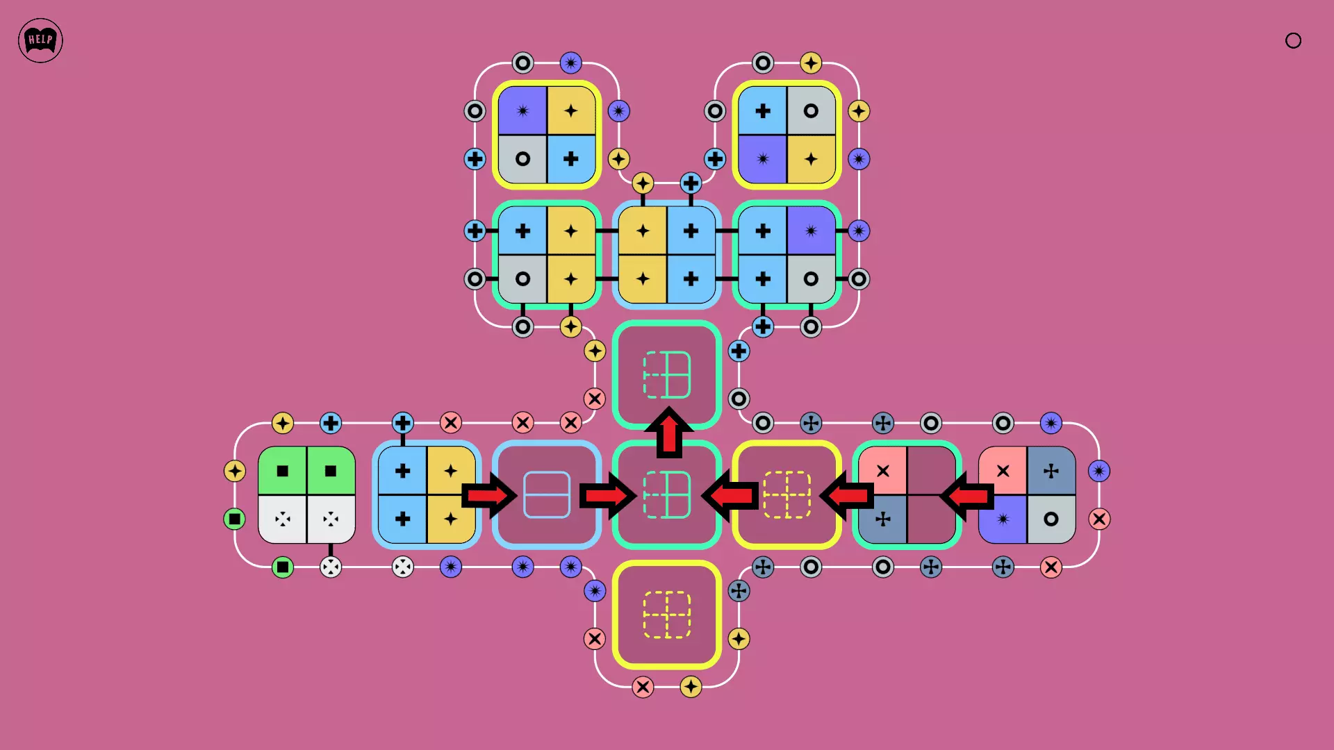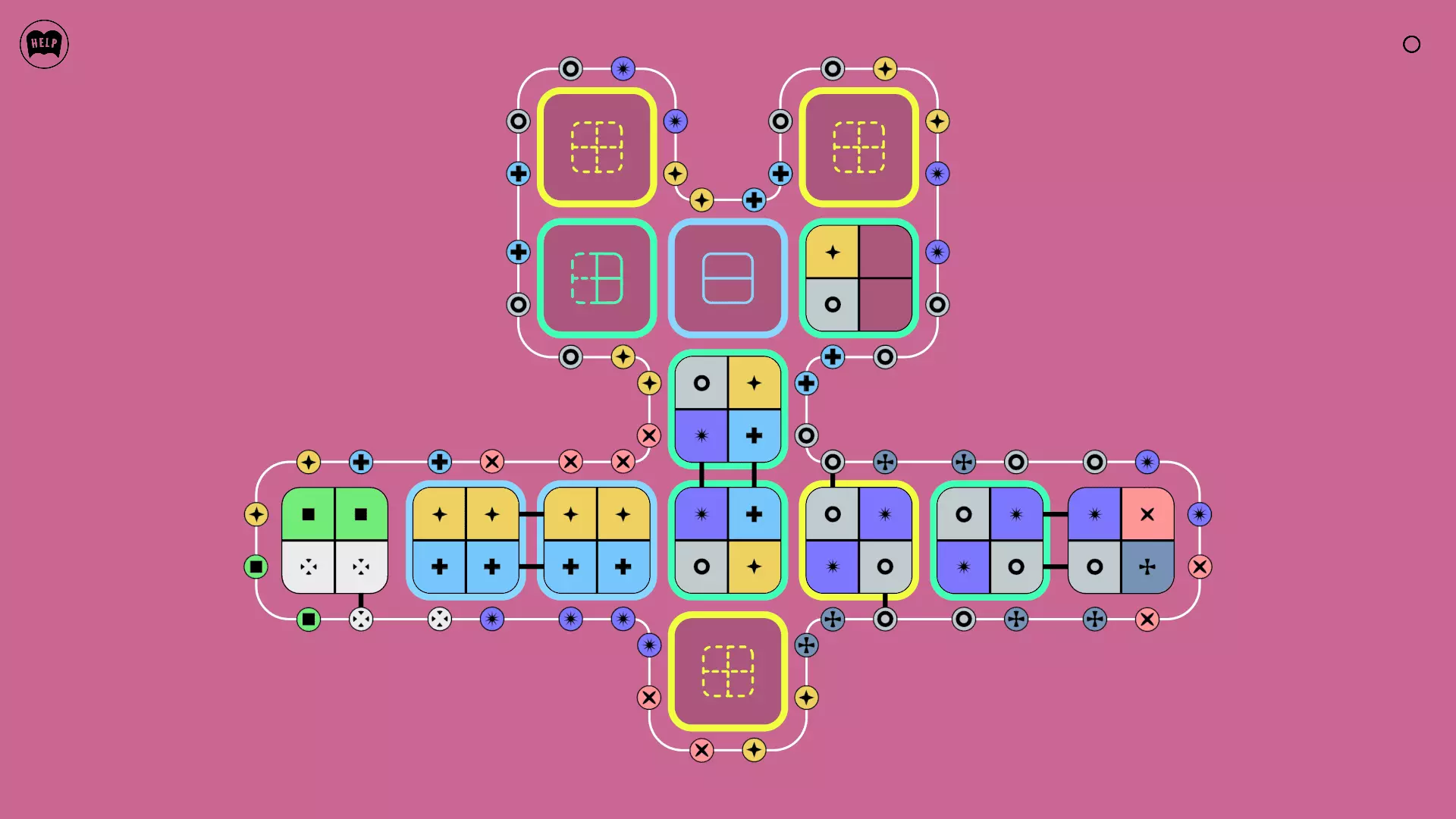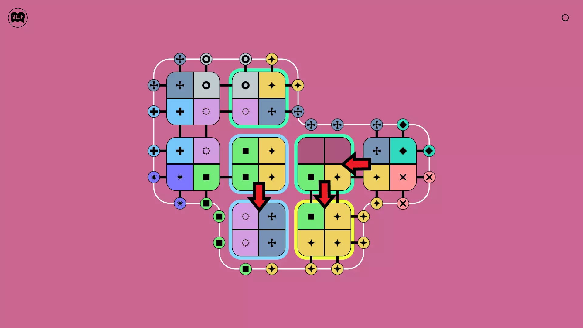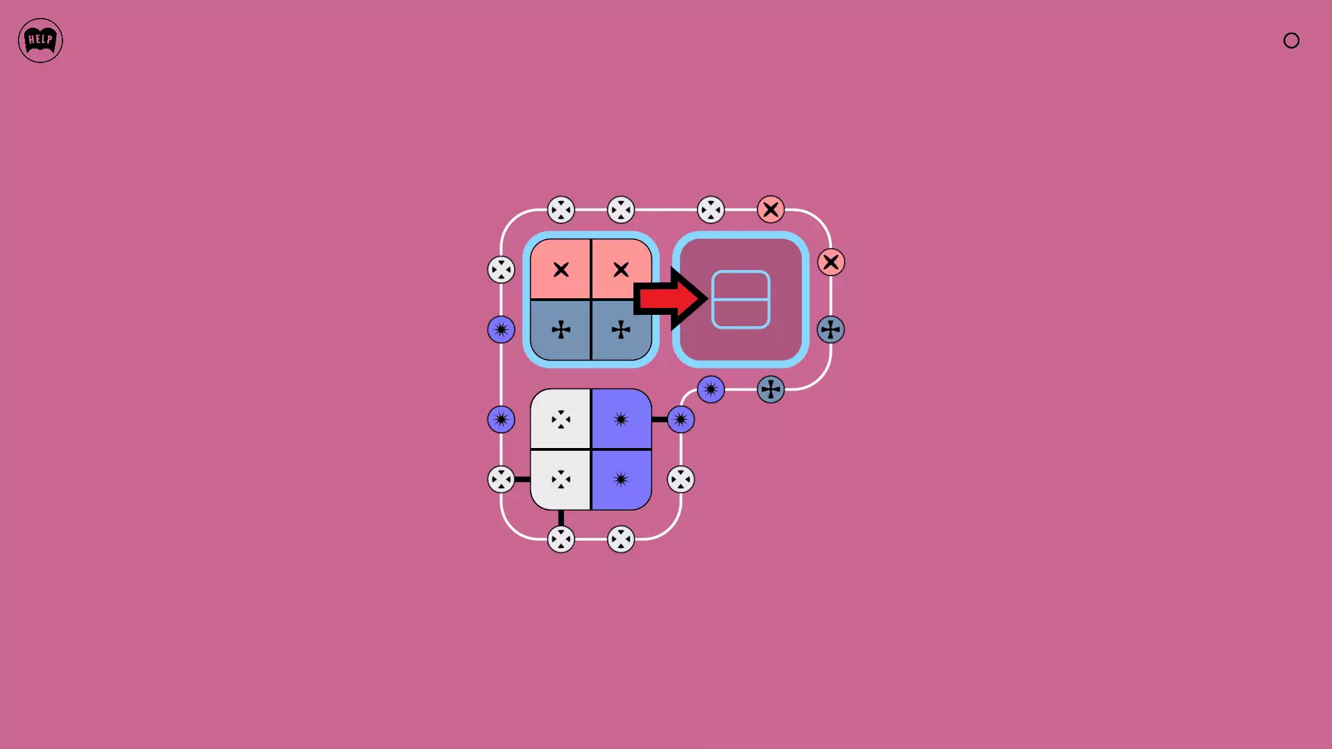 《Lines On Sides》关卡71-84图文攻略 简介 前18个关卡仅提供解决方案,因为解决这些关卡只需旋转或交换方块。 第19关及后续关卡包含步骤说明,解释如何分割、复制和转移方块。 由于Steam的限制,我不得不将本攻略分为两部分。 规则 旋转方块,直到方块上的图标与线条上或相邻方块上的符号匹配。当符号匹配时,它们之间会绘制一条线。 第7关引入了交换被绿线圈住的方块的功能。第14关新增了无法旋转或移动的方块,这类方块外有粗黑线环绕。 第19关新增了分裂平台,该平台外有蓝色线条环绕。此平台可将方块分裂为两个,或将两个方块合并为一个。