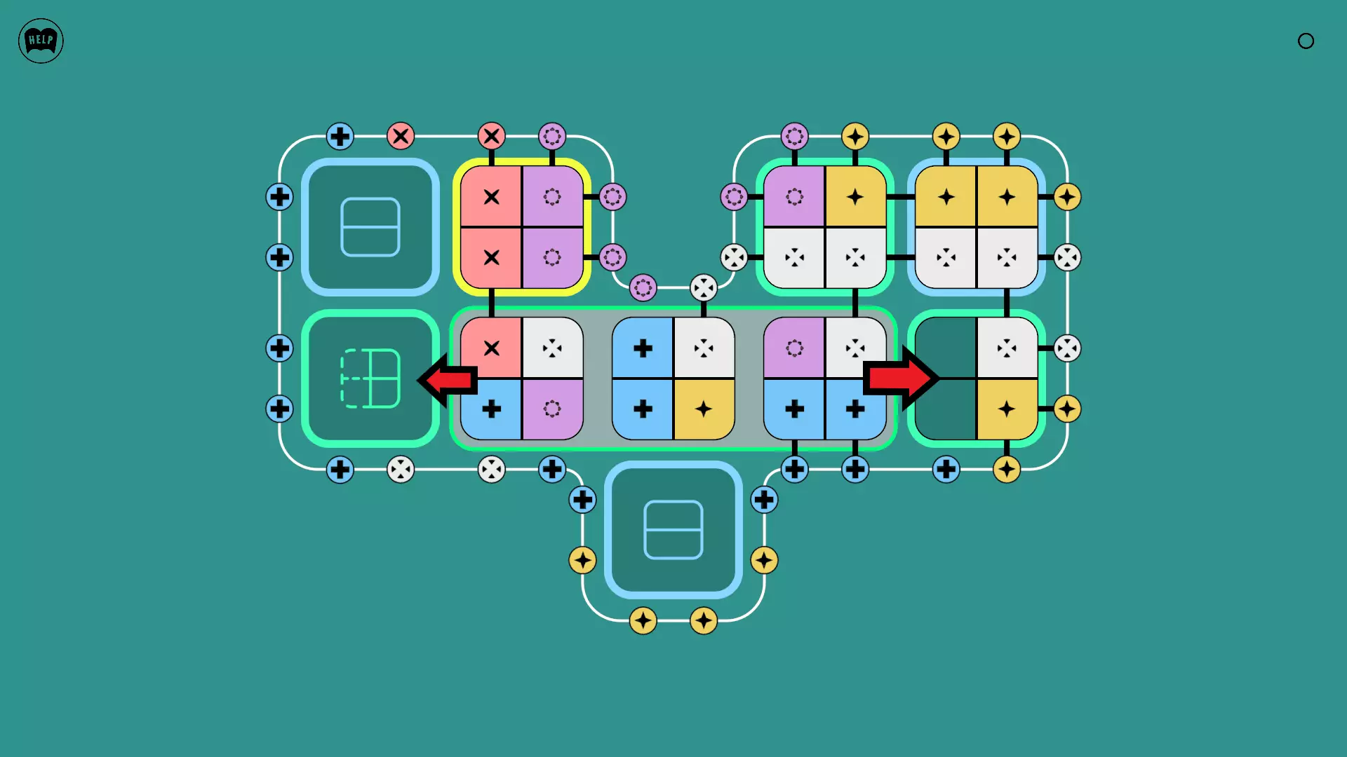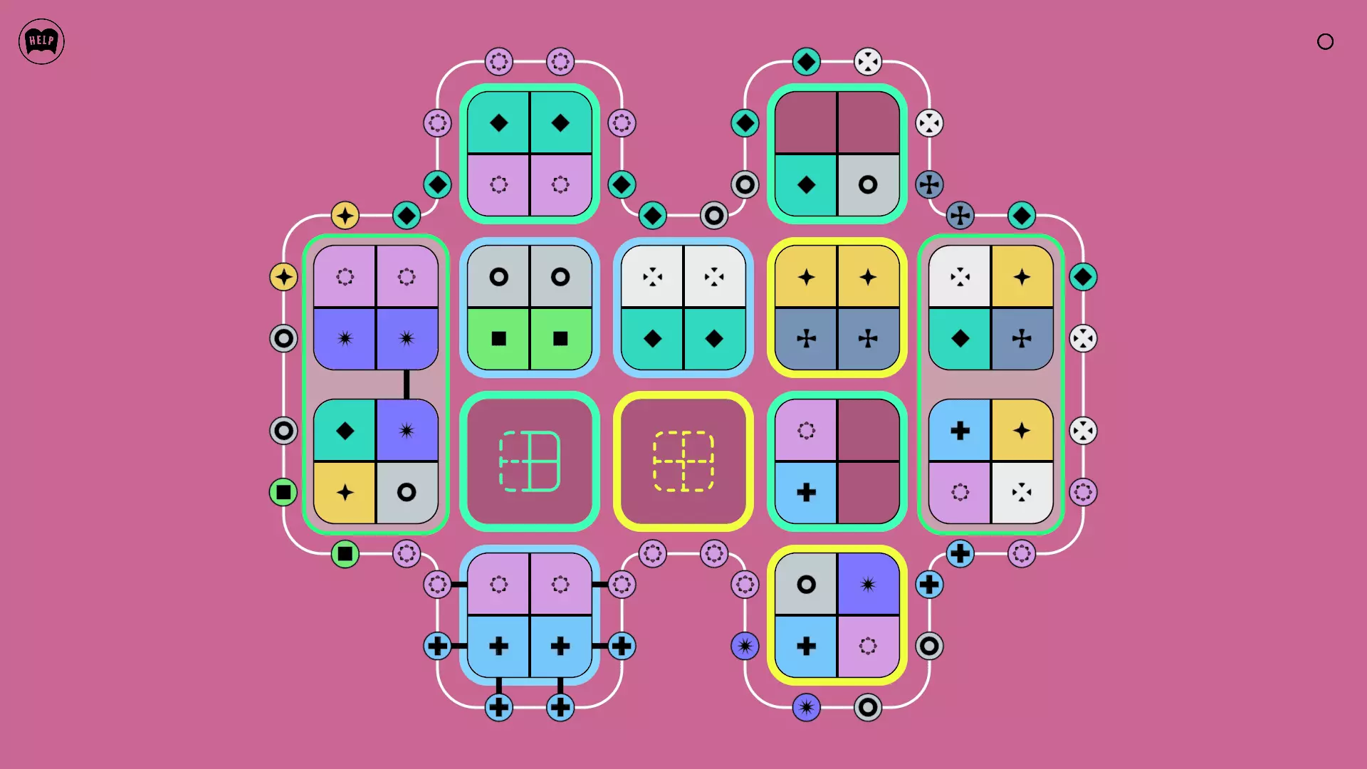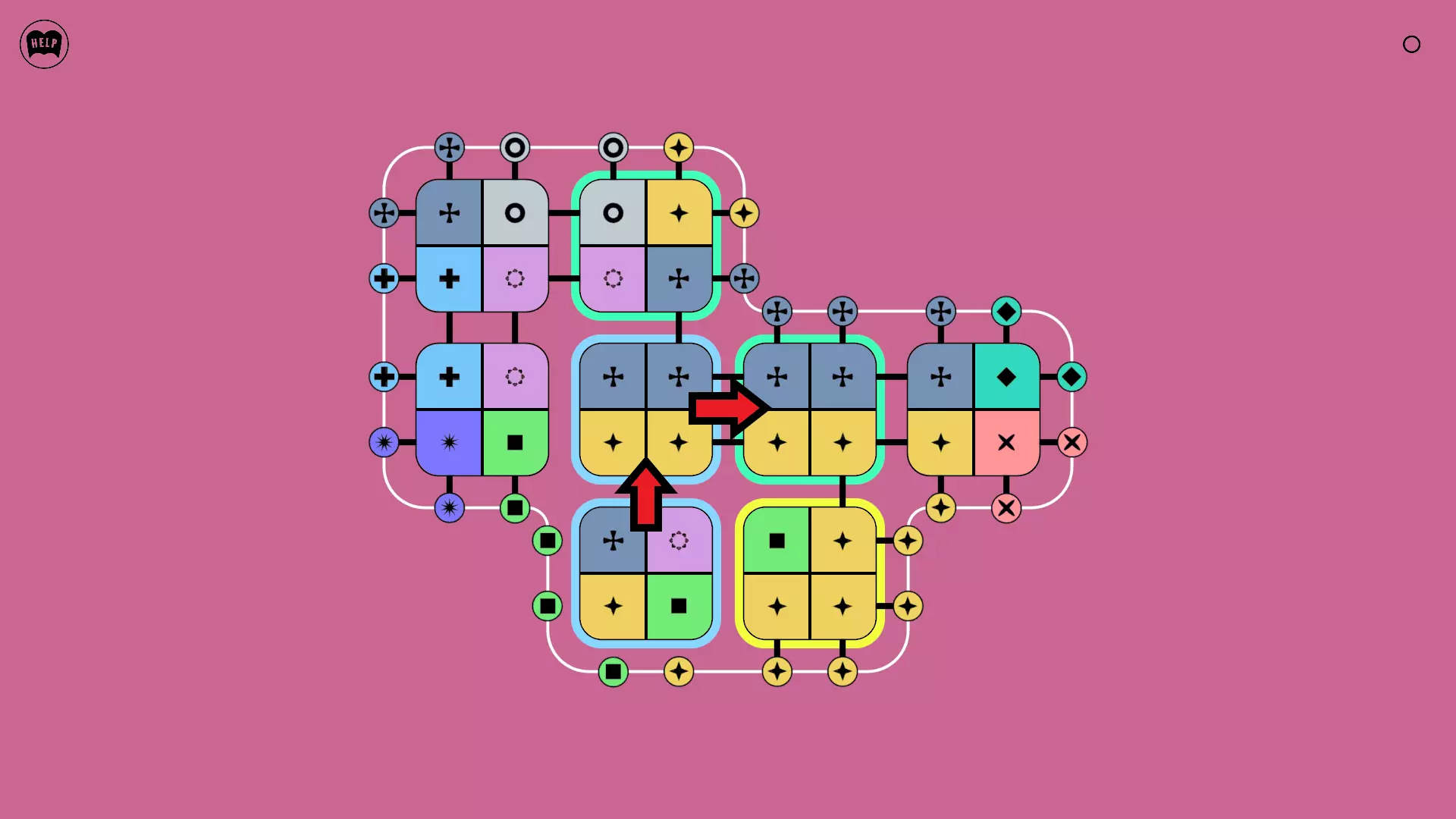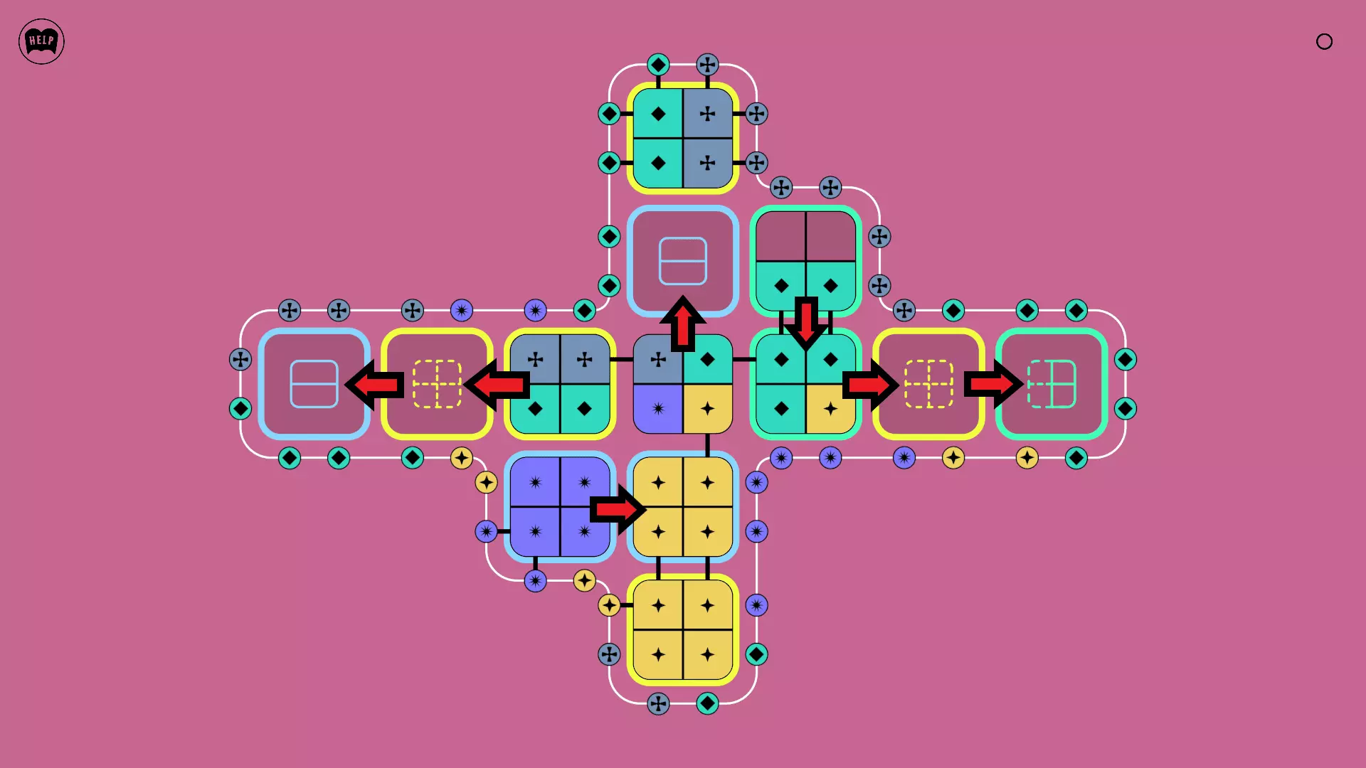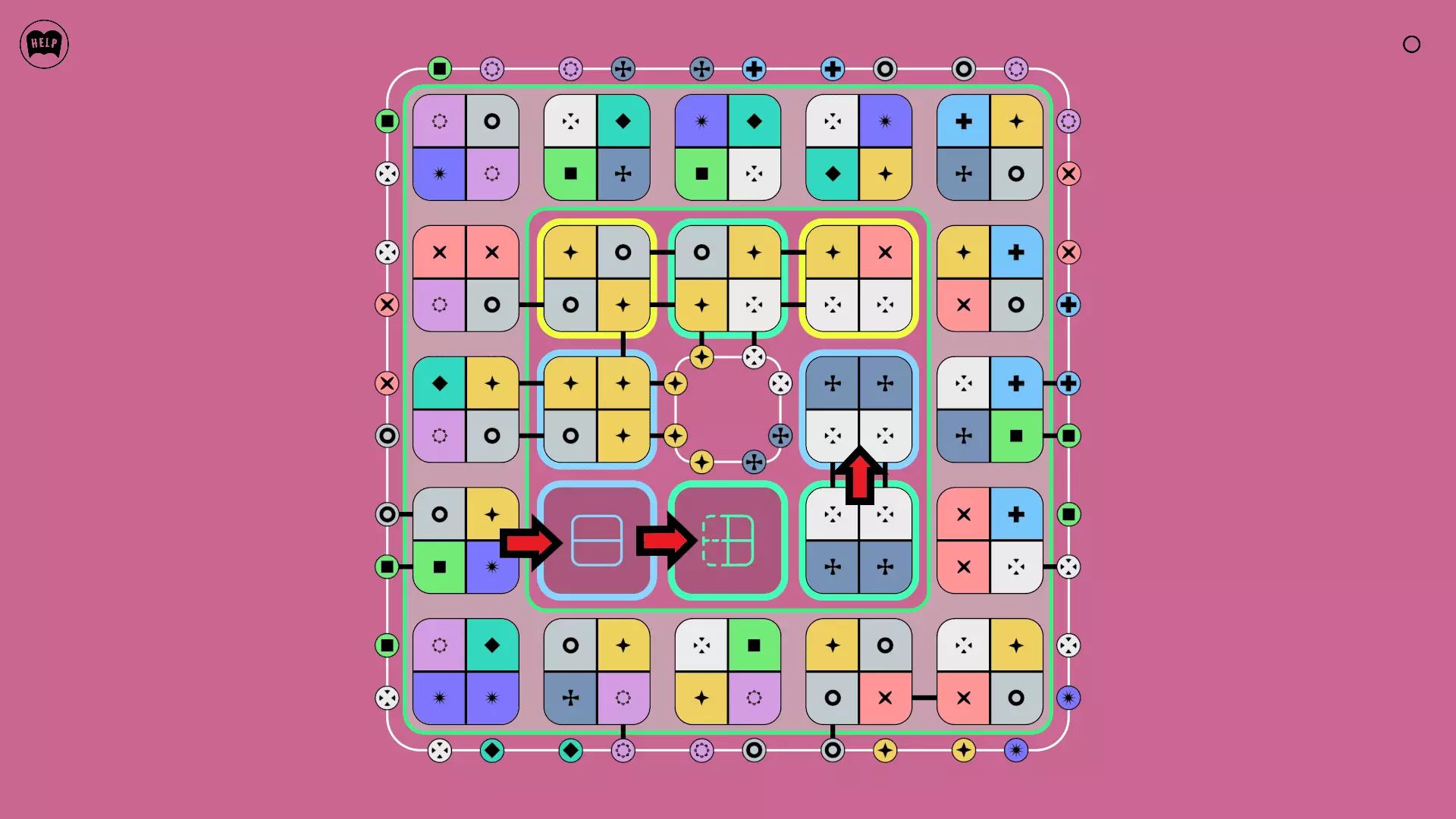 《Lines On Sides》关卡71-84图文攻略 简介 前18个关卡仅提供解决方案,因为解决这些关卡只需旋转或交换方块。 第19关及后续关卡包含步骤说明,解释如何分割、复制和转移方块。 由于Steam的限制,我不得不将本攻略分为两部分。 规则 旋转方块,直到方块上的图标与线条上或相邻方块上的符号匹配。当符号匹配时,它们之间会绘制一条线。 第7关引入了交换被绿线圈住的方块的功能。第14关新增了无法旋转或移动的方块,这类方块外有粗黑线环绕。 第19关新增了分裂平台,该平台外有蓝色线条环绕。此平台可将方块分裂为两个,或将两个方块合并为一个。