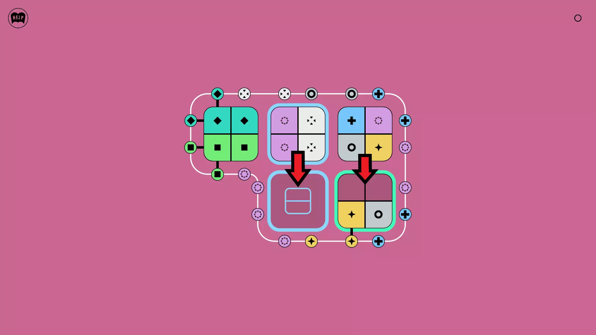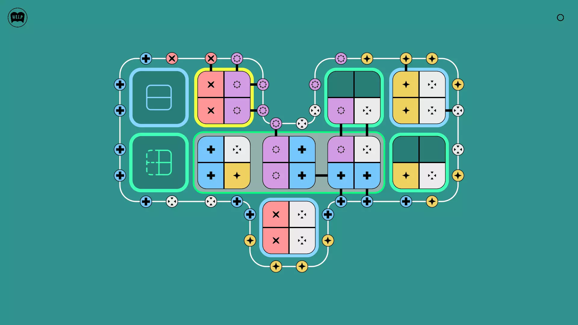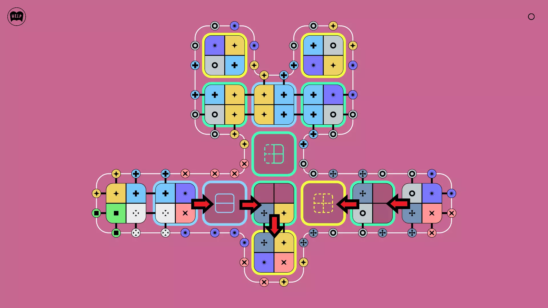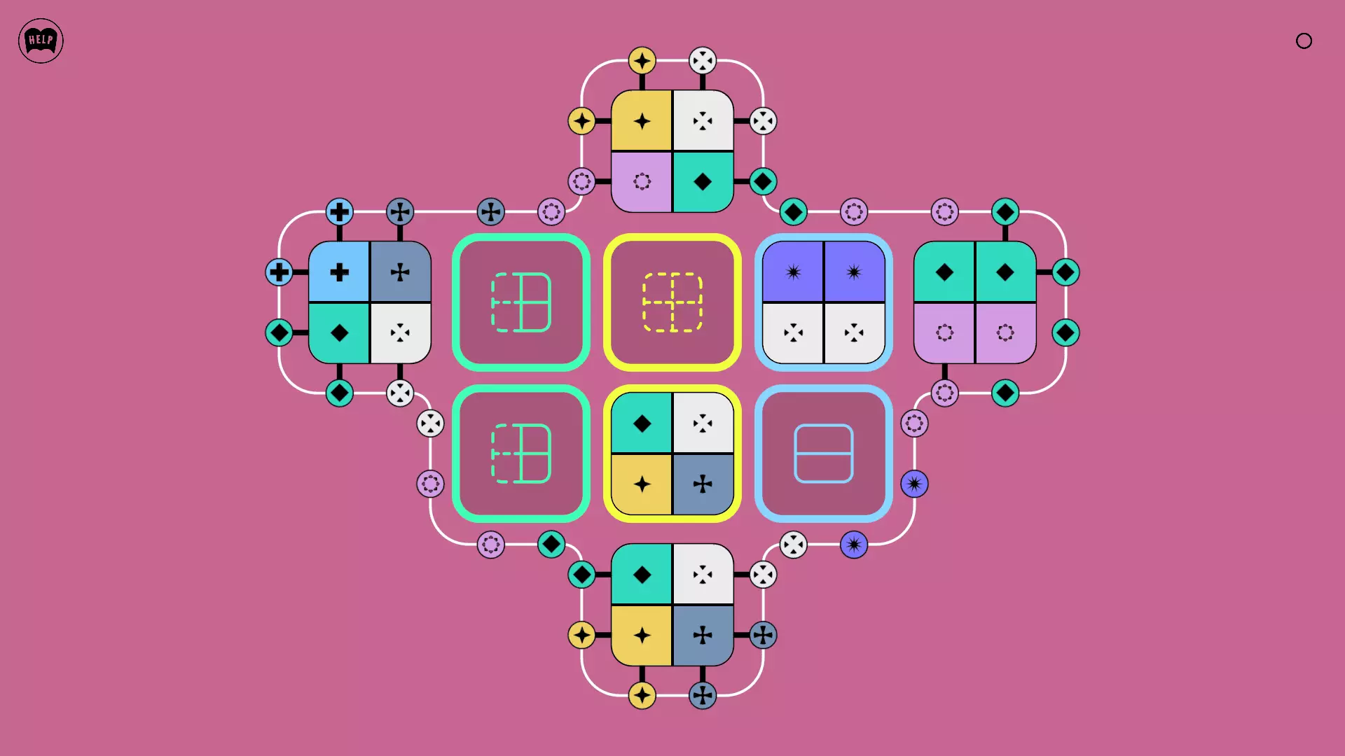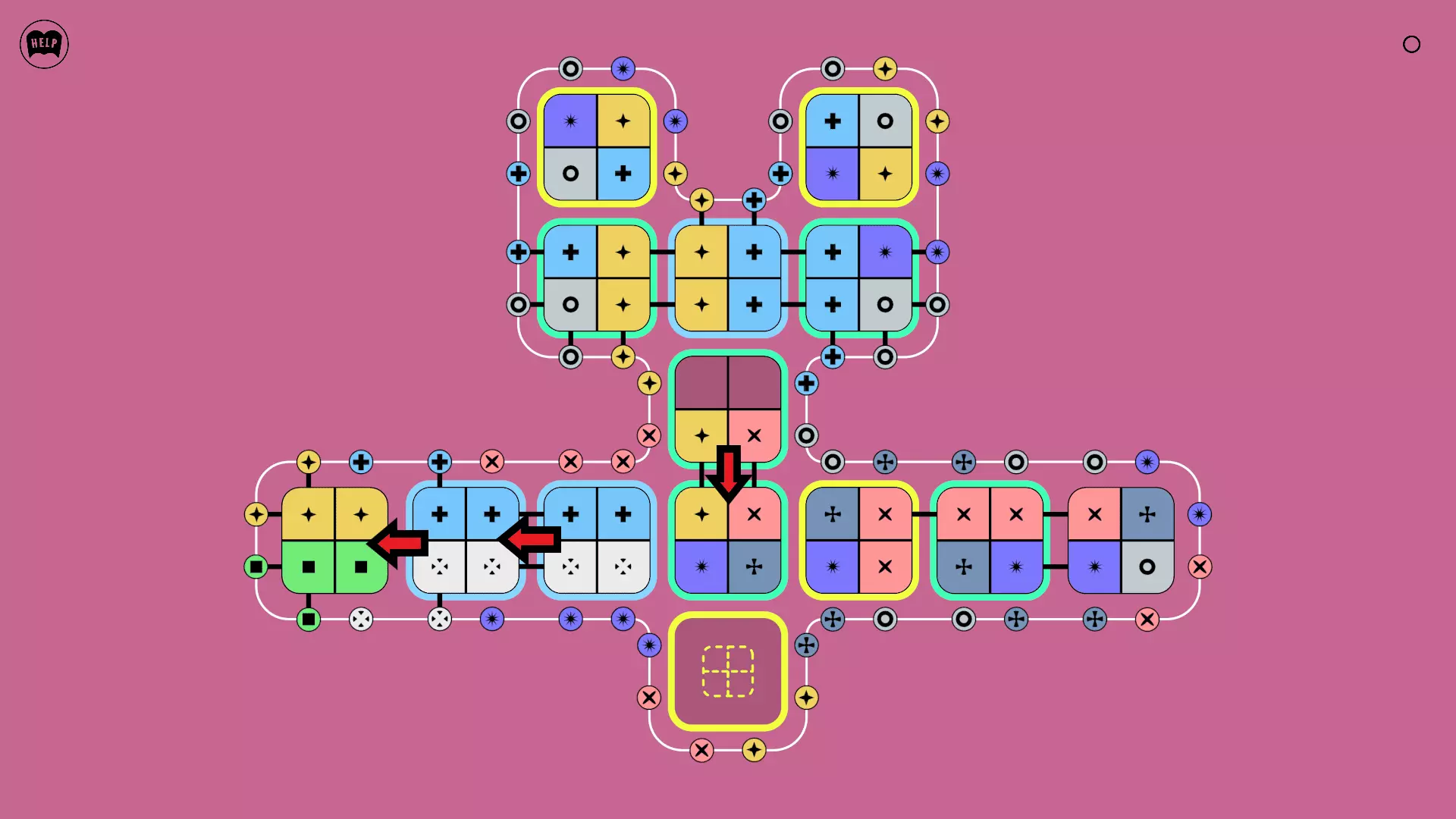 《Lines On Sides》关卡71-84图文攻略 简介 前18个关卡仅提供解决方案,因为解决这些关卡只需旋转或交换方块。 第19关及后续关卡包含步骤说明,解释如何分割、复制和转移方块。 由于Steam的限制,我不得不将本攻略分为两部分。 规则 旋转方块,直到方块上的图标与线条上或相邻方块上的符号匹配。当符号匹配时,它们之间会绘制一条线。 第7关引入了交换被绿线圈住的方块的功能。第14关新增了无法旋转或移动的方块,这类方块外有粗黑线环绕。 第19关新增了分裂平台,该平台外有蓝色线条环绕。此平台可将方块分裂为两个,或将两个方块合并为一个。