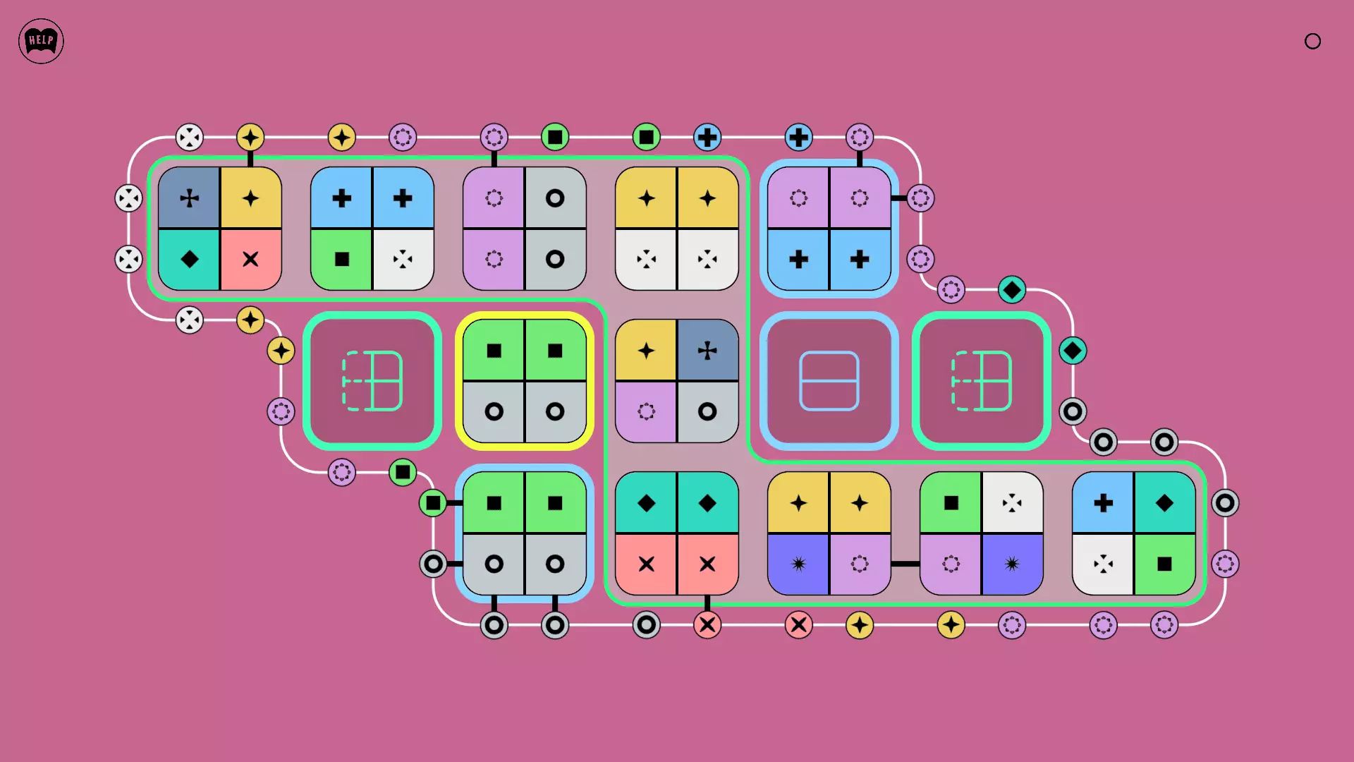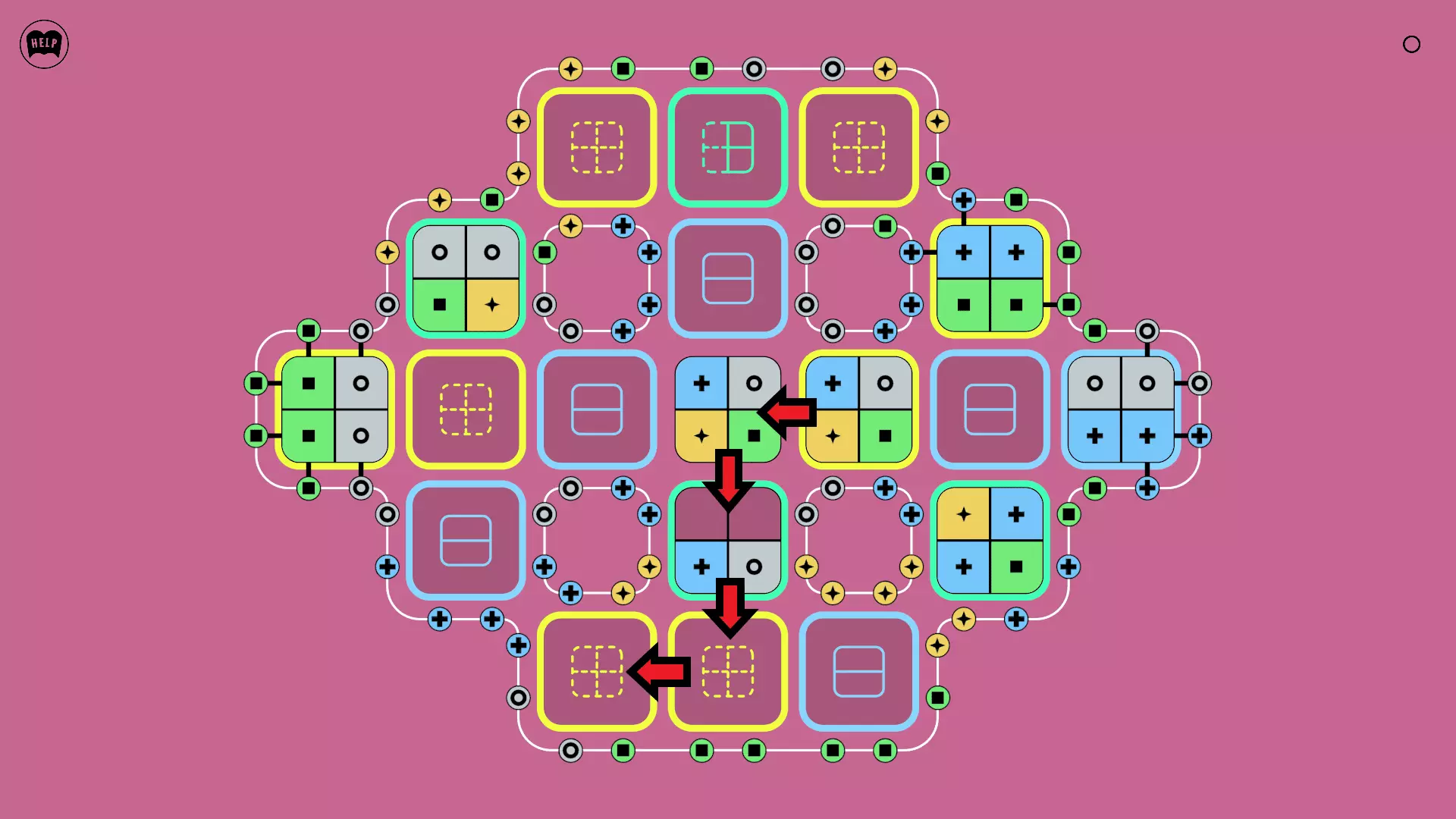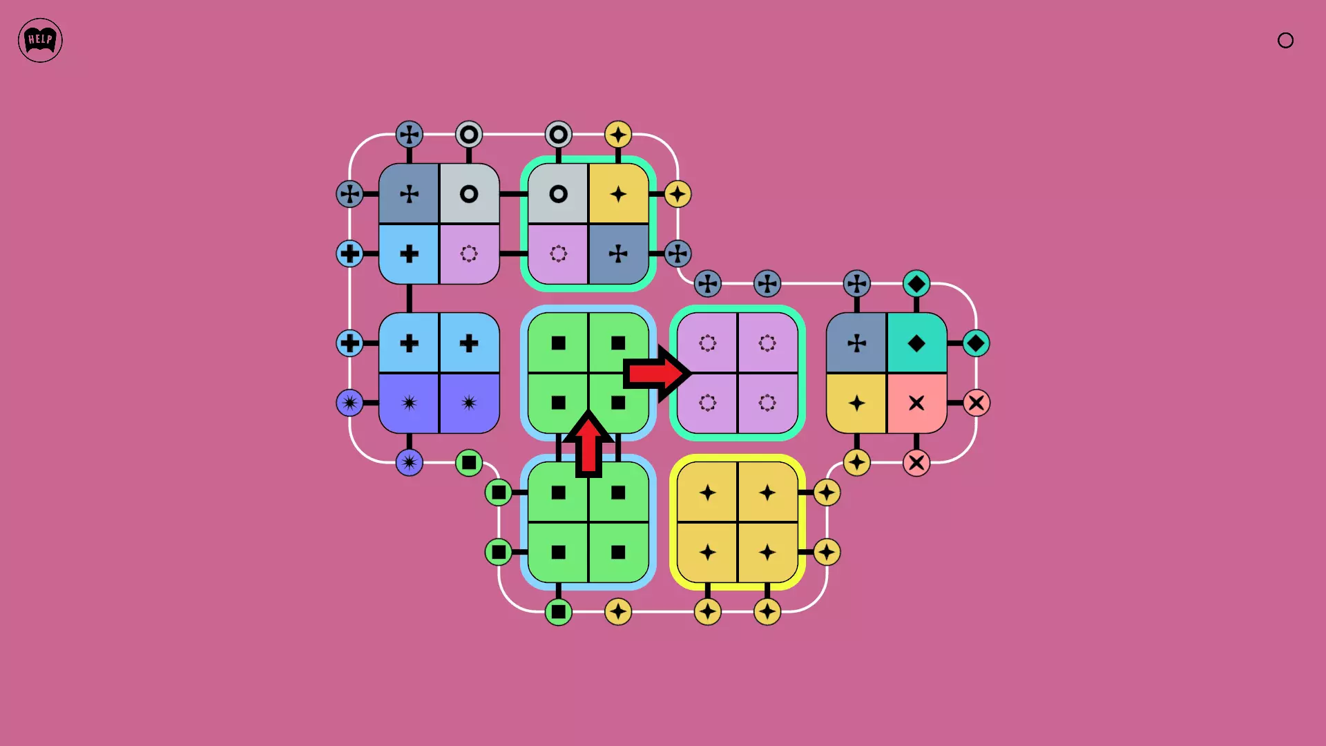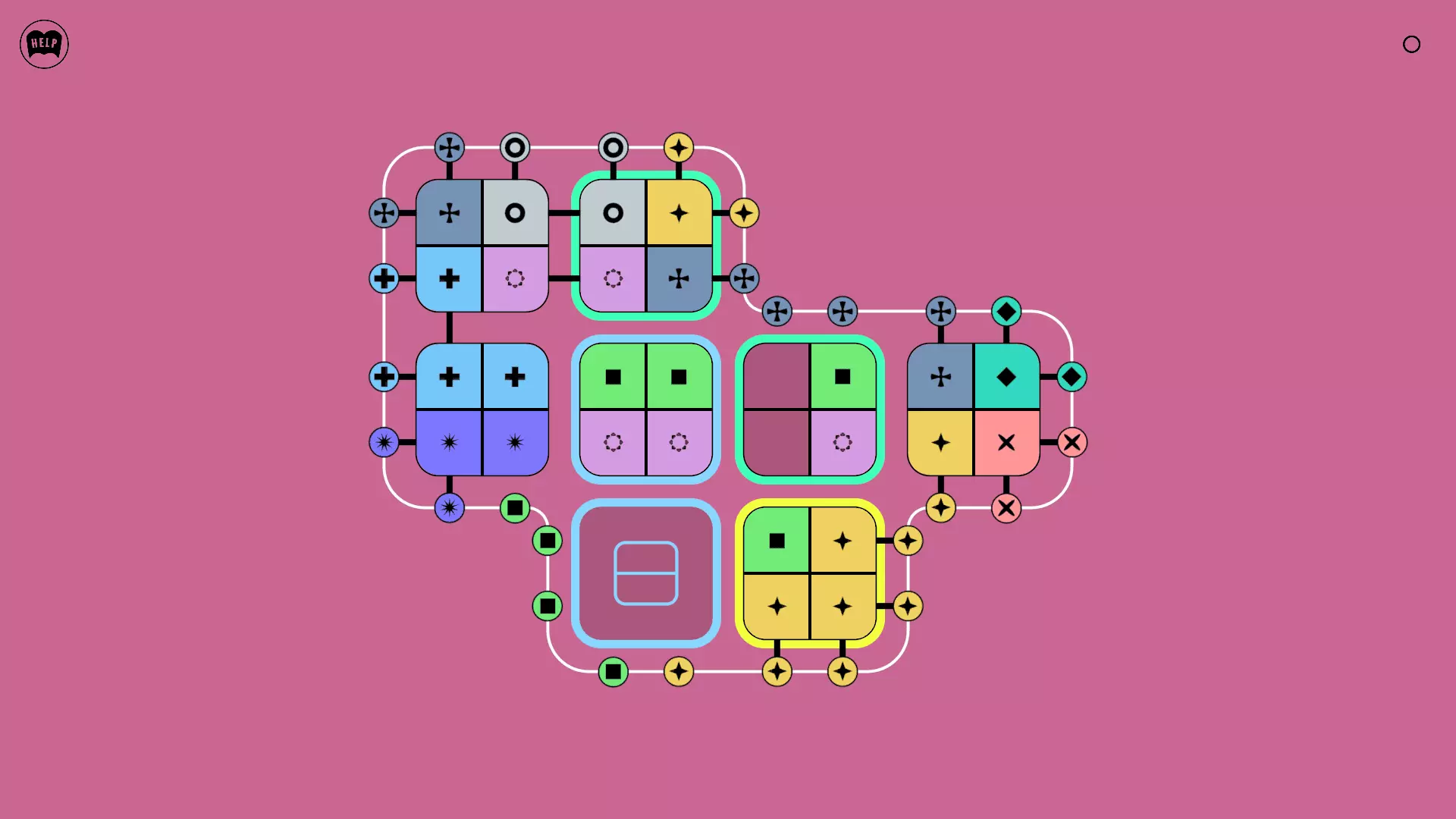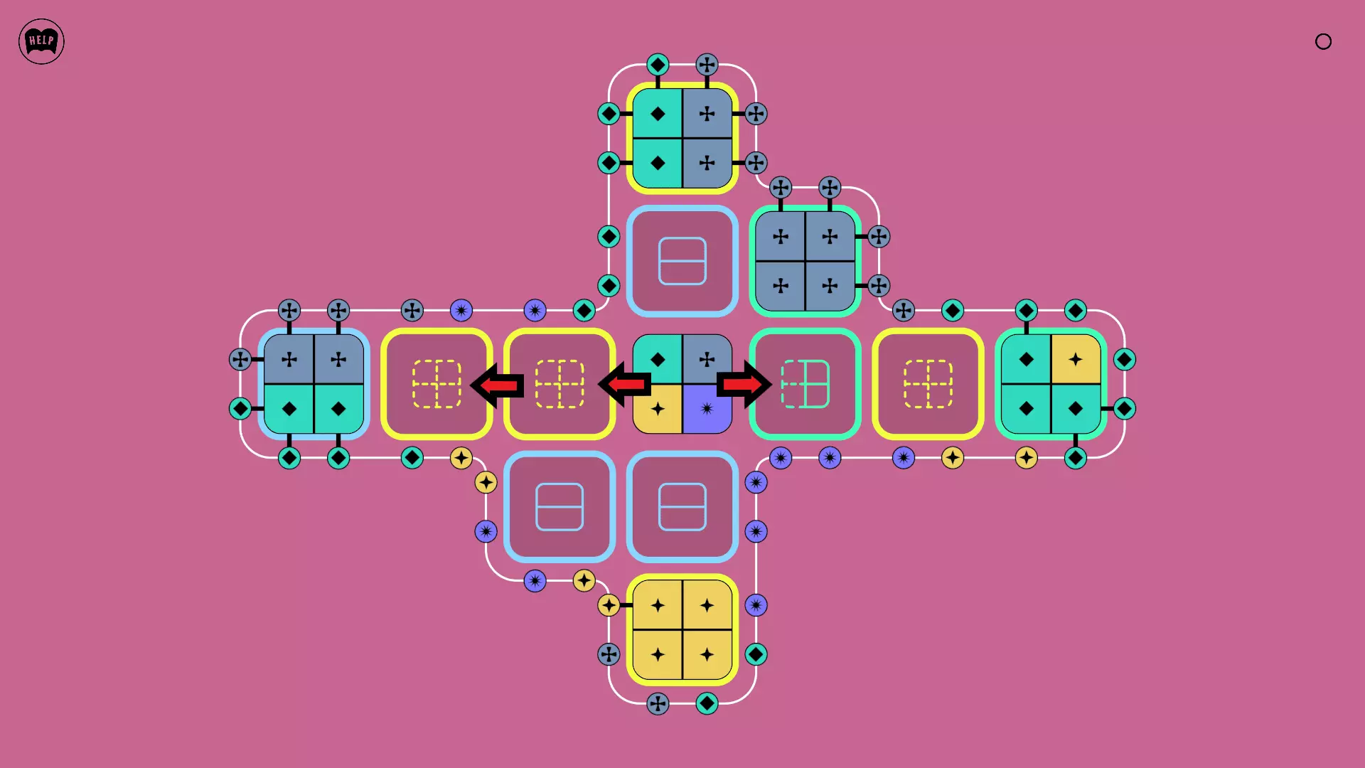 《Lines On Sides》关卡71-84图文攻略 简介 前18个关卡仅提供解决方案,因为解决这些关卡只需旋转或交换方块。 第19关及后续关卡包含步骤说明,解释如何分割、复制和转移方块。 由于Steam的限制,我不得不将本攻略分为两部分。 规则 旋转方块,直到方块上的图标与线条上或相邻方块上的符号匹配。当符号匹配时,它们之间会绘制一条线。 第7关引入了交换被绿线圈住的方块的功能。第14关新增了无法旋转或移动的方块,这类方块外有粗黑线环绕。 第19关新增了分裂平台,该平台外有蓝色线条环绕。此平台可将方块分裂为两个,或将两个方块合并为一个。