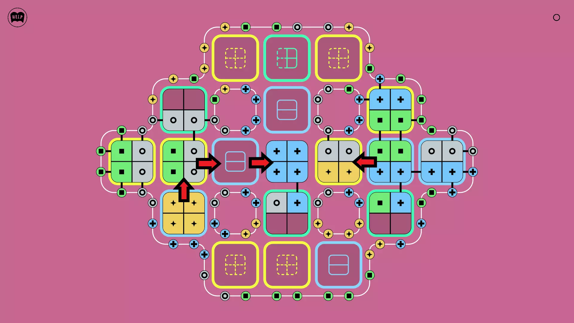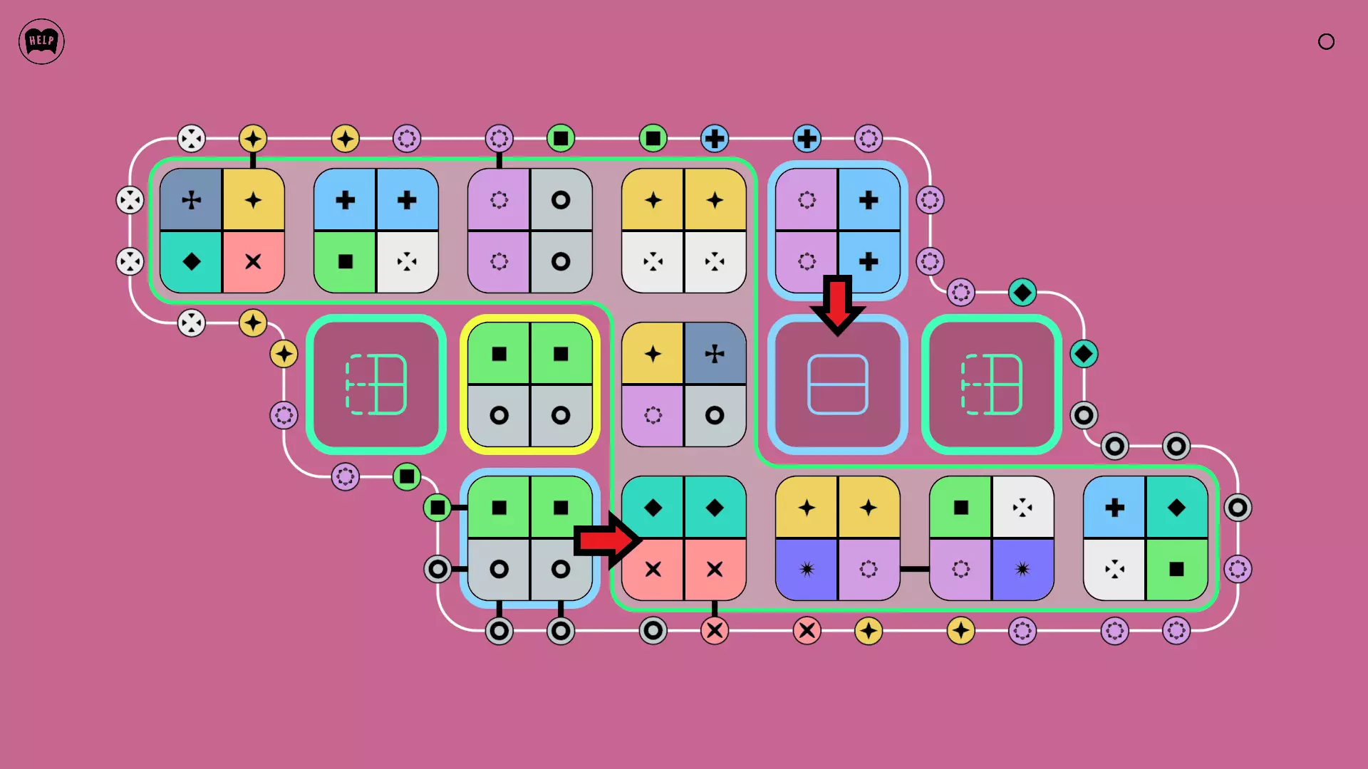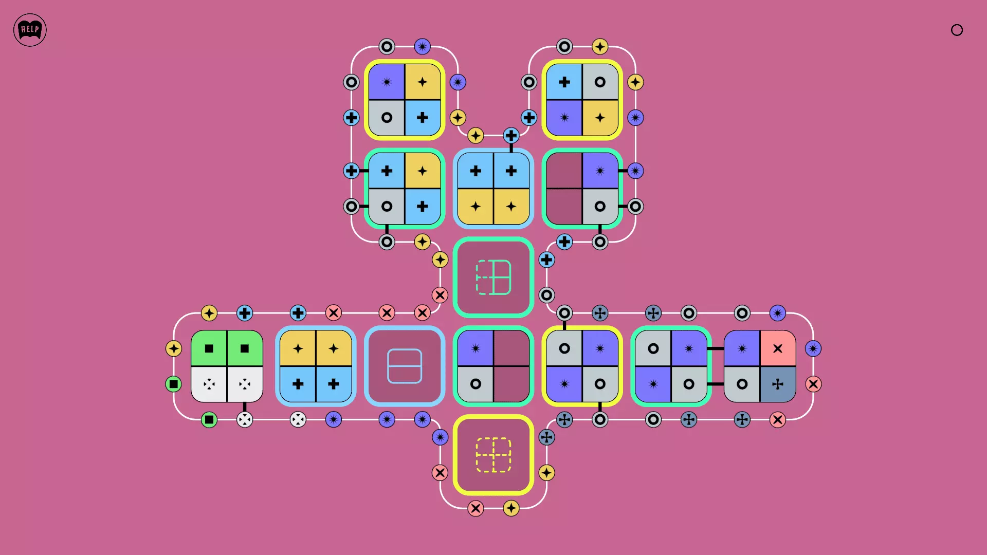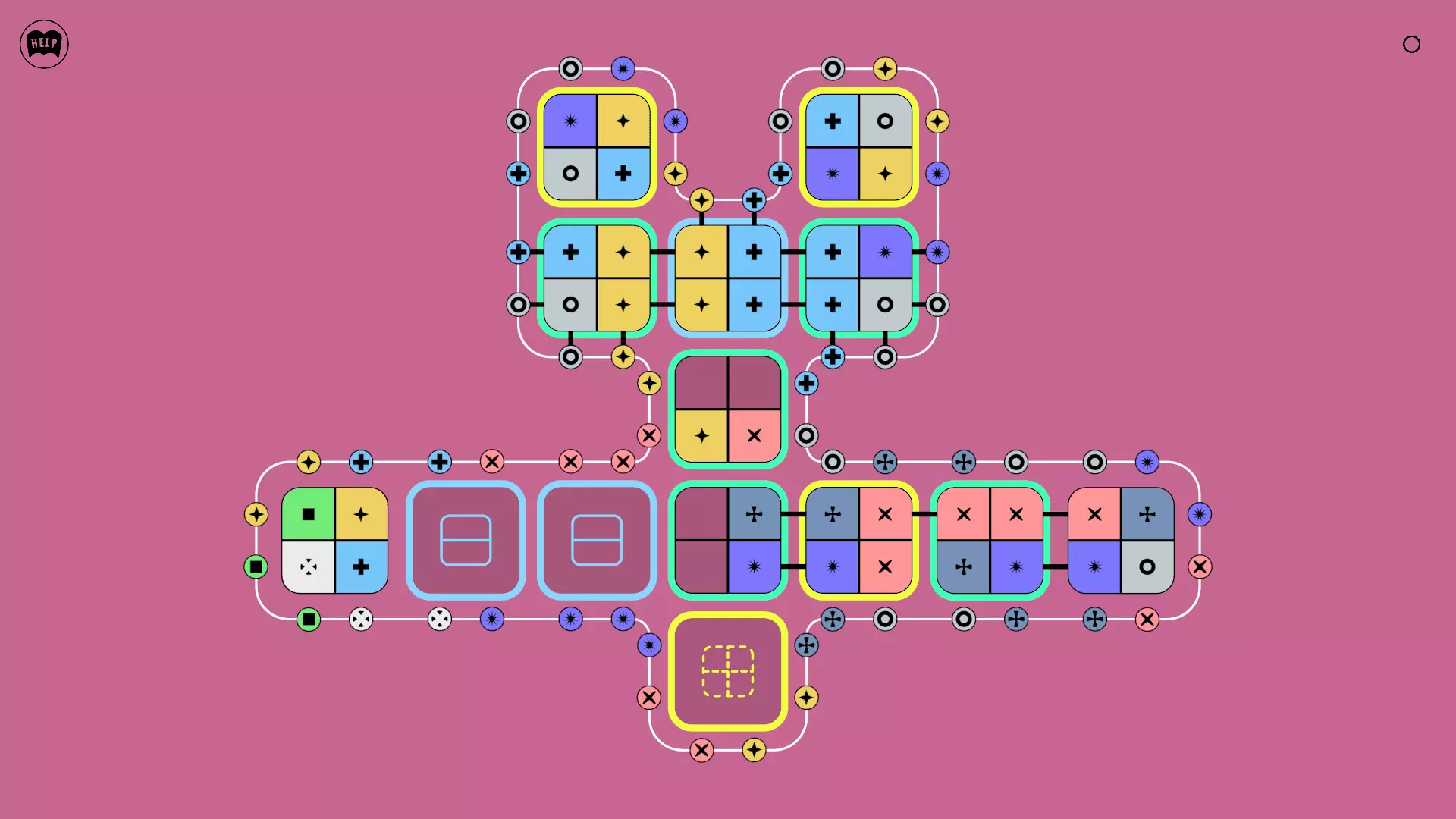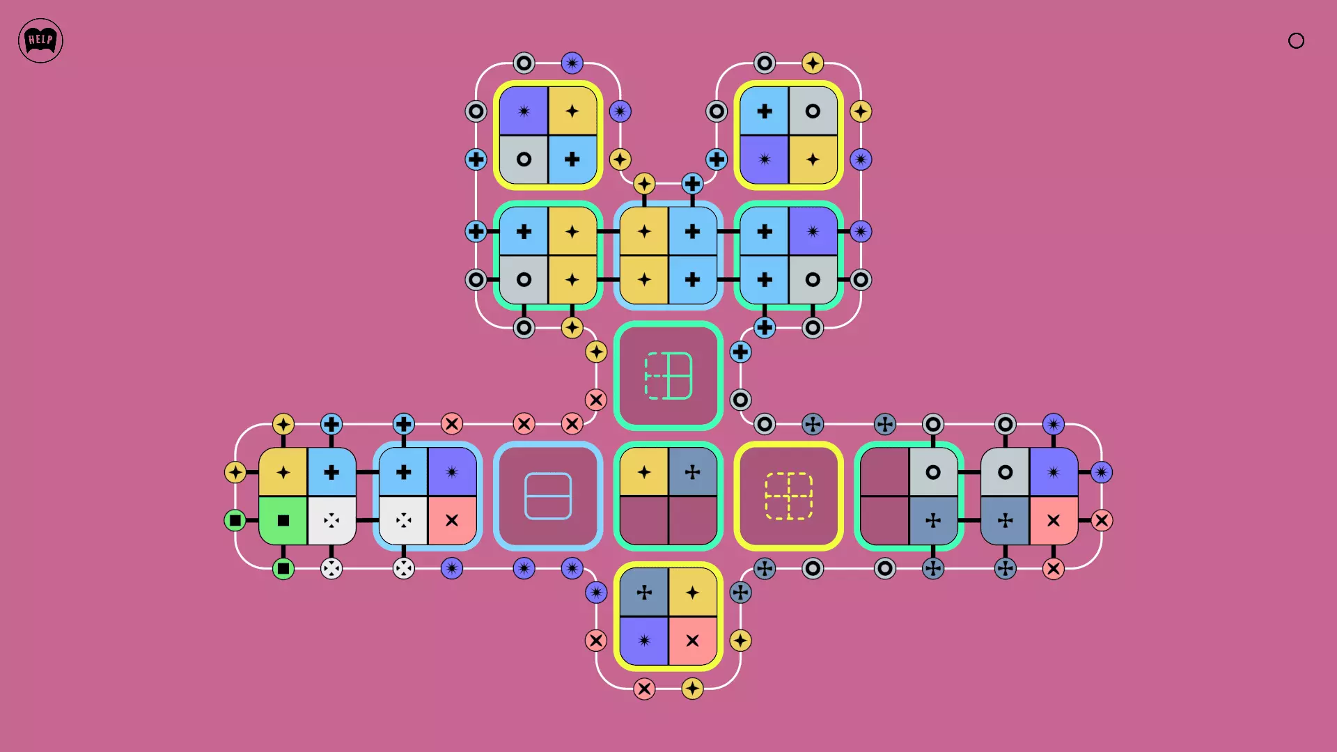 《Lines On Sides》关卡71-84图文攻略 简介 前18个关卡仅提供解决方案,因为解决这些关卡只需旋转或交换方块。 第19关及后续关卡包含步骤说明,解释如何分割、复制和转移方块。 由于Steam的限制,我不得不将本攻略分为两部分。 规则 旋转方块,直到方块上的图标与线条上或相邻方块上的符号匹配。当符号匹配时,它们之间会绘制一条线。 第7关引入了交换被绿线圈住的方块的功能。第14关新增了无法旋转或移动的方块,这类方块外有粗黑线环绕。 第19关新增了分裂平台,该平台外有蓝色线条环绕。此平台可将方块分裂为两个,或将两个方块合并为一个。