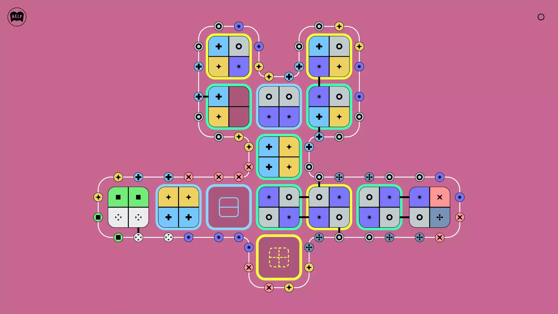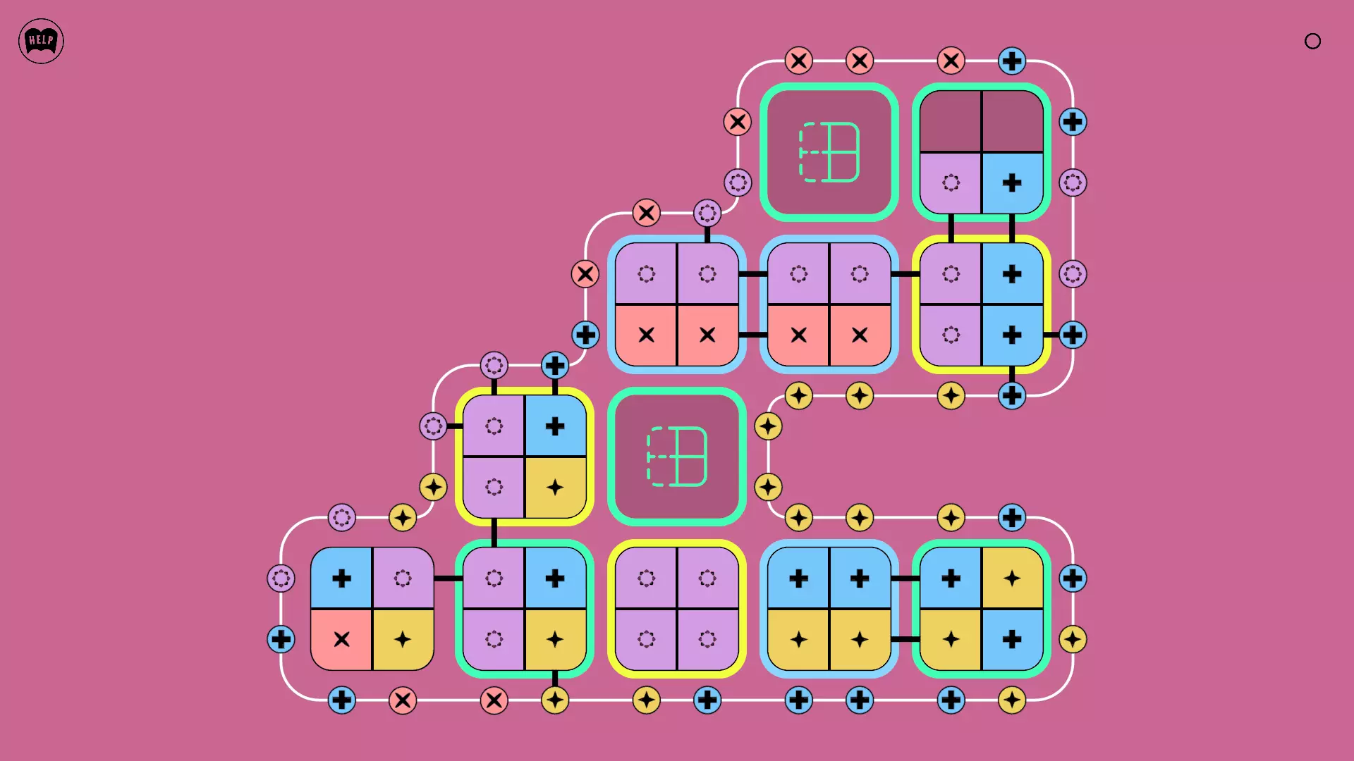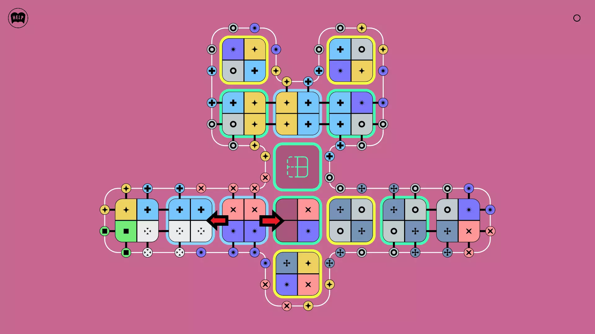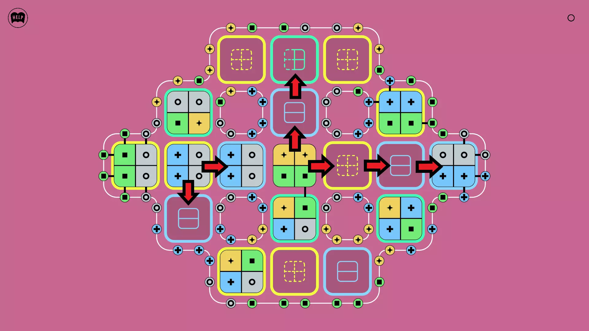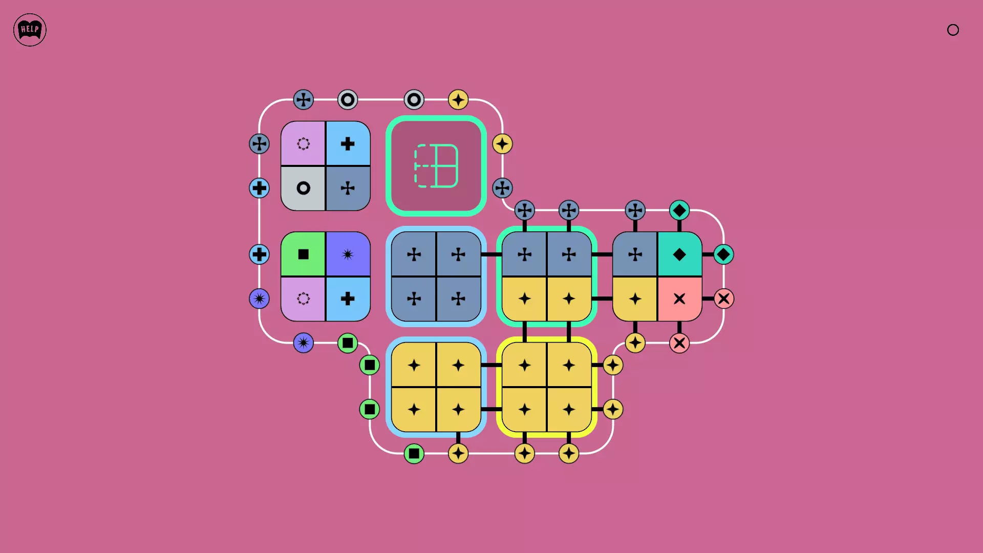 《Lines On Sides》关卡71-84图文攻略 简介 前18个关卡仅提供解决方案,因为解决这些关卡只需旋转或交换方块。 第19关及后续关卡包含步骤说明,解释如何分割、复制和转移方块。 由于Steam的限制,我不得不将本攻略分为两部分。 规则 旋转方块,直到方块上的图标与线条上或相邻方块上的符号匹配。当符号匹配时,它们之间会绘制一条线。 第7关引入了交换被绿线圈住的方块的功能。第14关新增了无法旋转或移动的方块,这类方块外有粗黑线环绕。 第19关新增了分裂平台,该平台外有蓝色线条环绕。此平台可将方块分裂为两个,或将两个方块合并为一个。