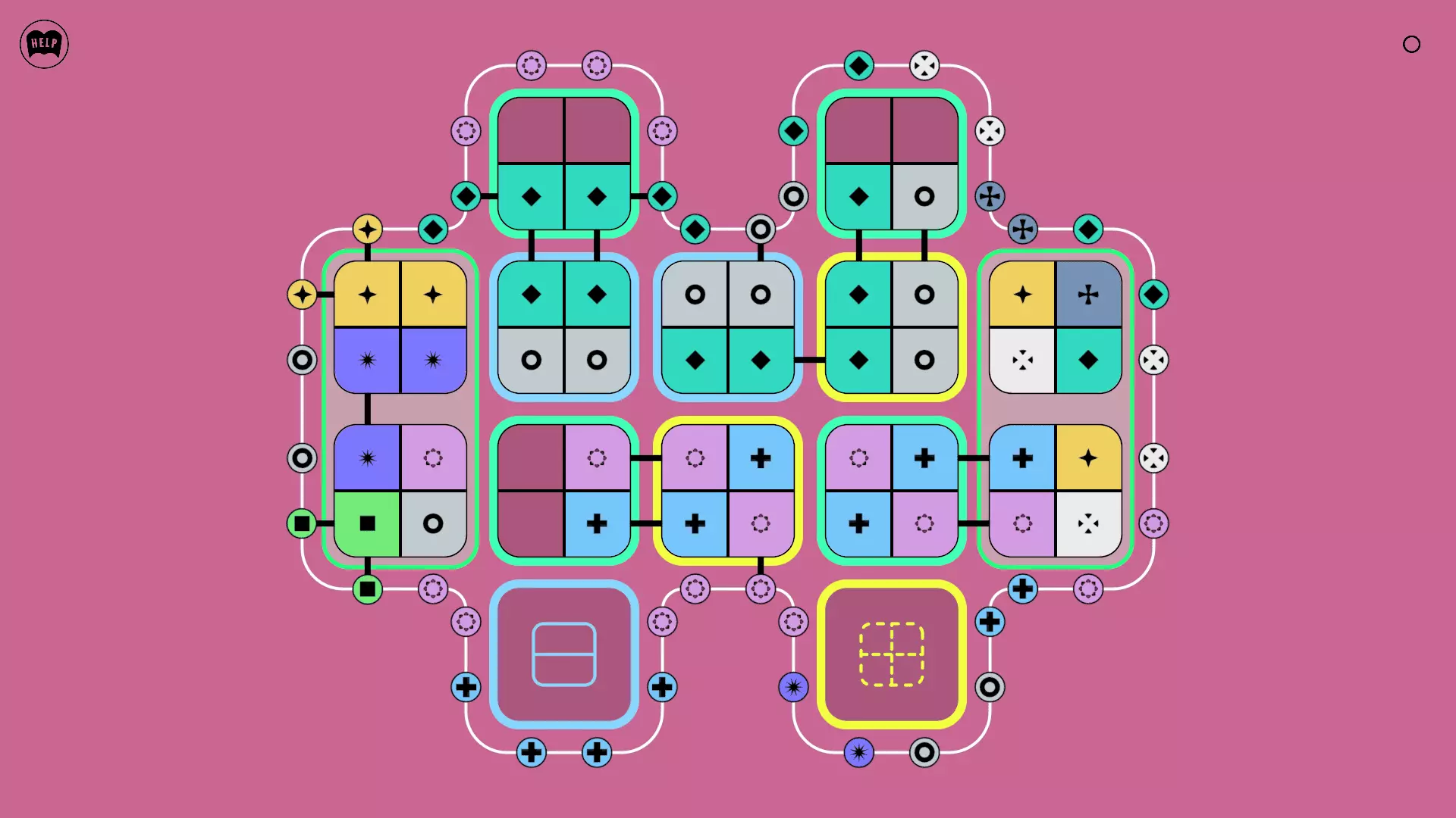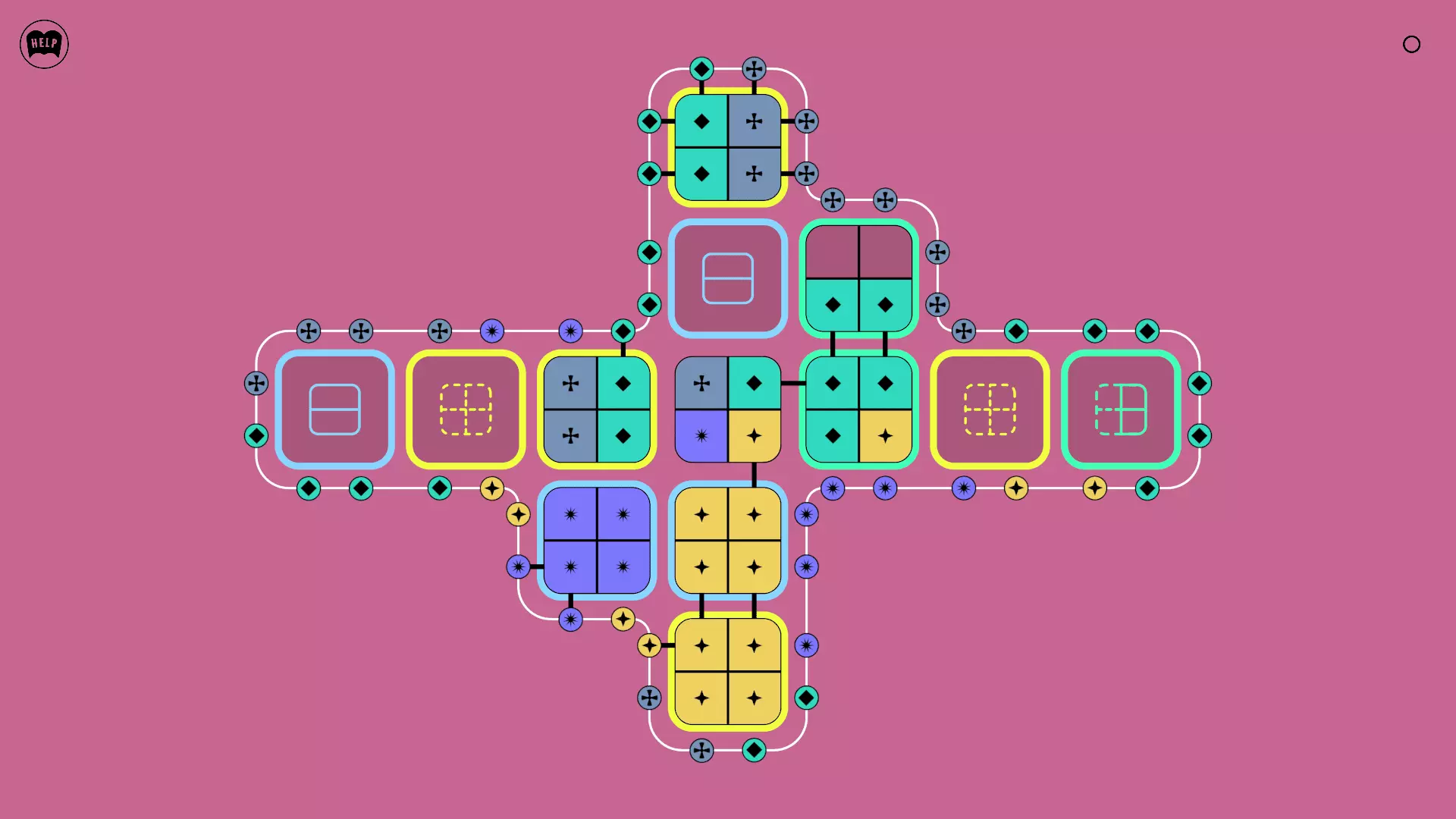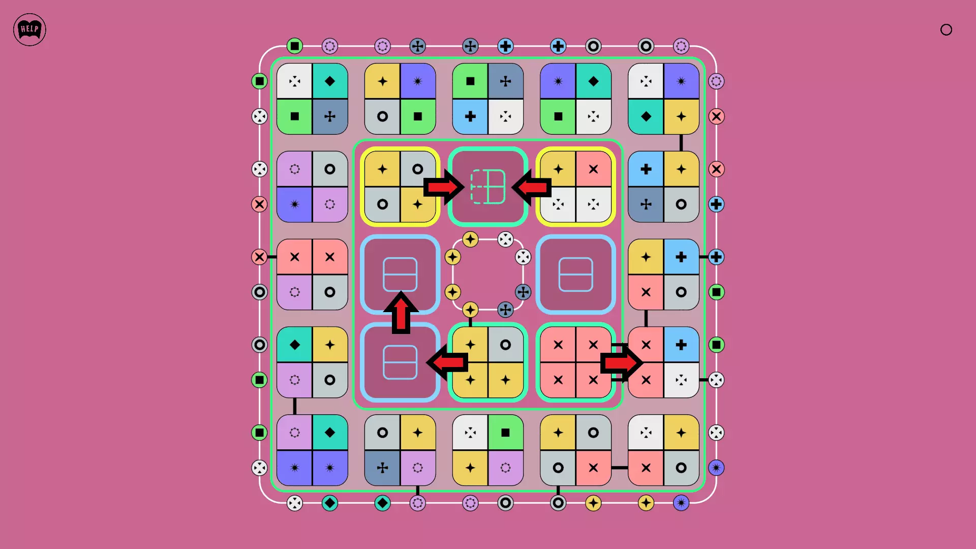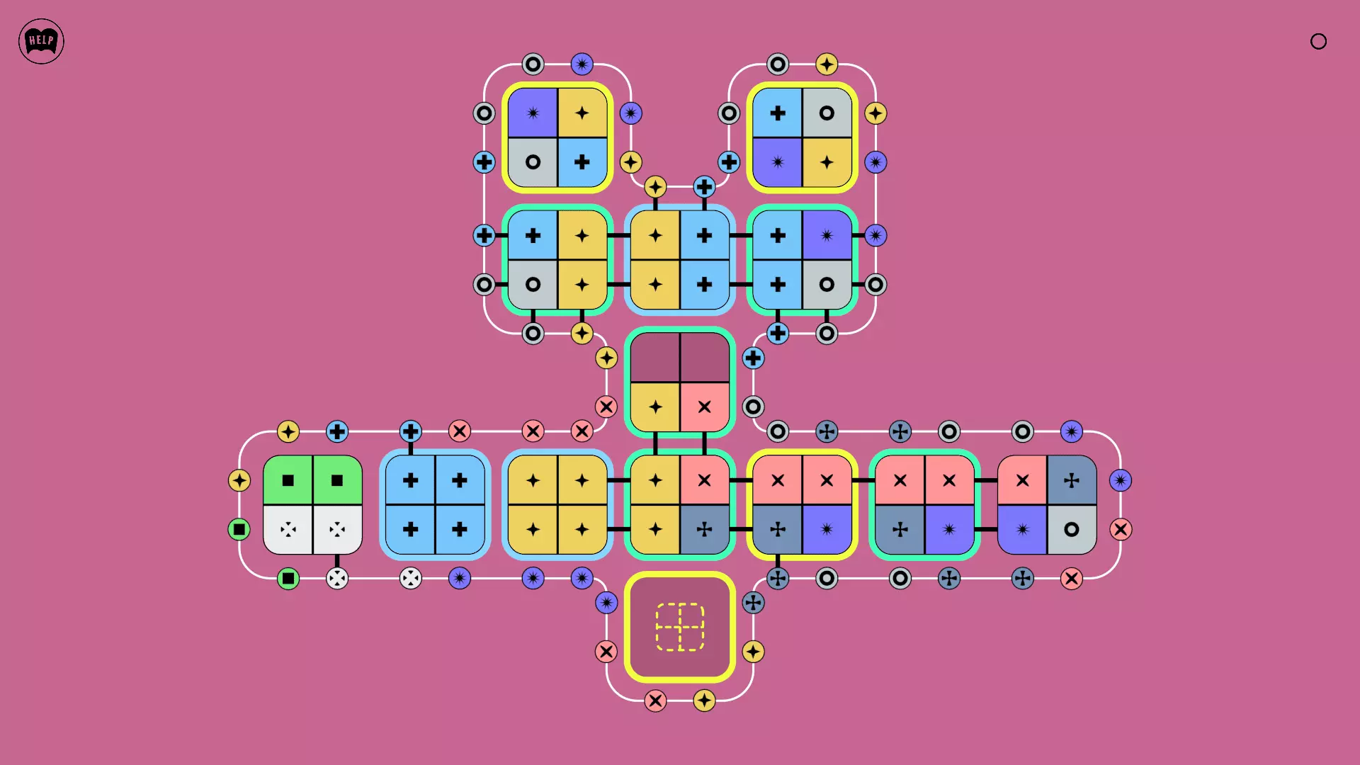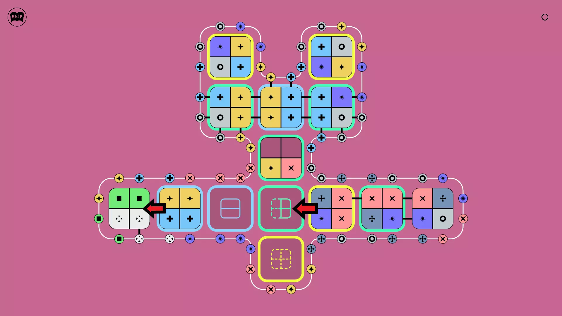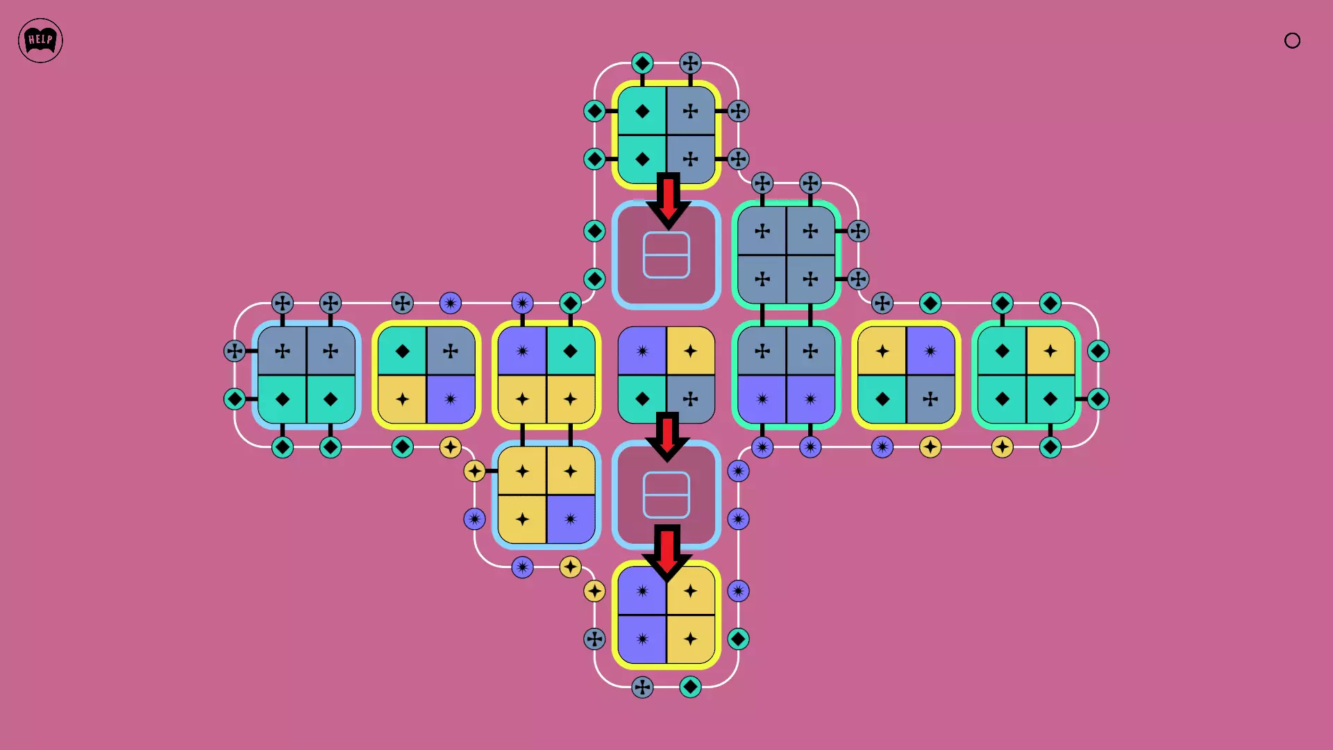 《Lines On Sides》关卡71-84图文攻略 简介 前18个关卡仅提供解决方案,因为解决这些关卡只需旋转或交换方块。 第19关及后续关卡包含步骤说明,解释如何分割、复制和转移方块。 由于Steam的限制,我不得不将本攻略分为两部分。 规则 旋转方块,直到方块上的图标与线条上或相邻方块上的符号匹配。当符号匹配时,它们之间会绘制一条线。 第7关引入了交换被绿线圈住的方块的功能。第14关新增了无法旋转或移动的方块,这类方块外有粗黑线环绕。 第19关新增了分裂平台,该平台外有蓝色线条环绕。此平台可将方块分裂为两个,或将两个方块合并为一个。