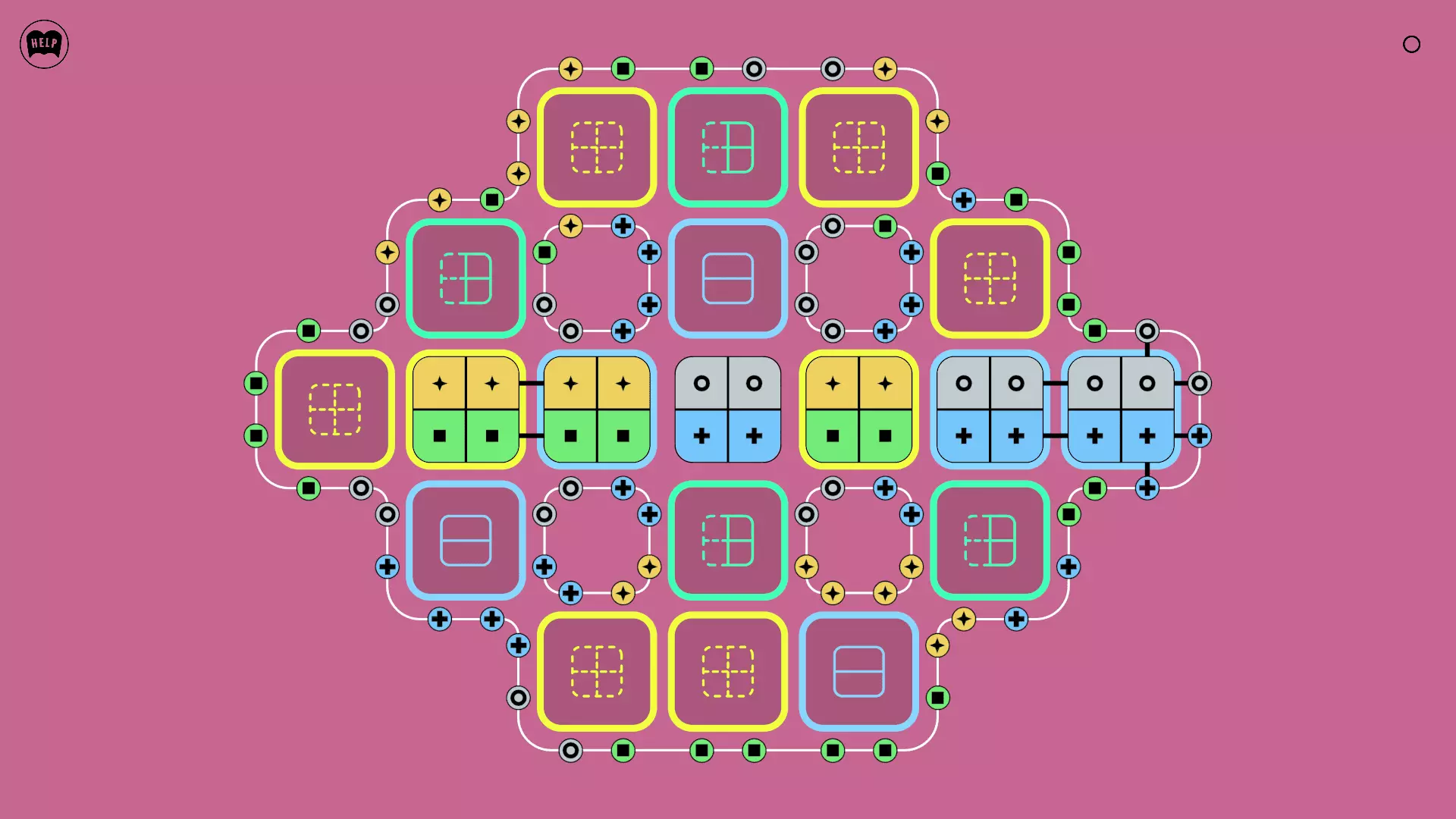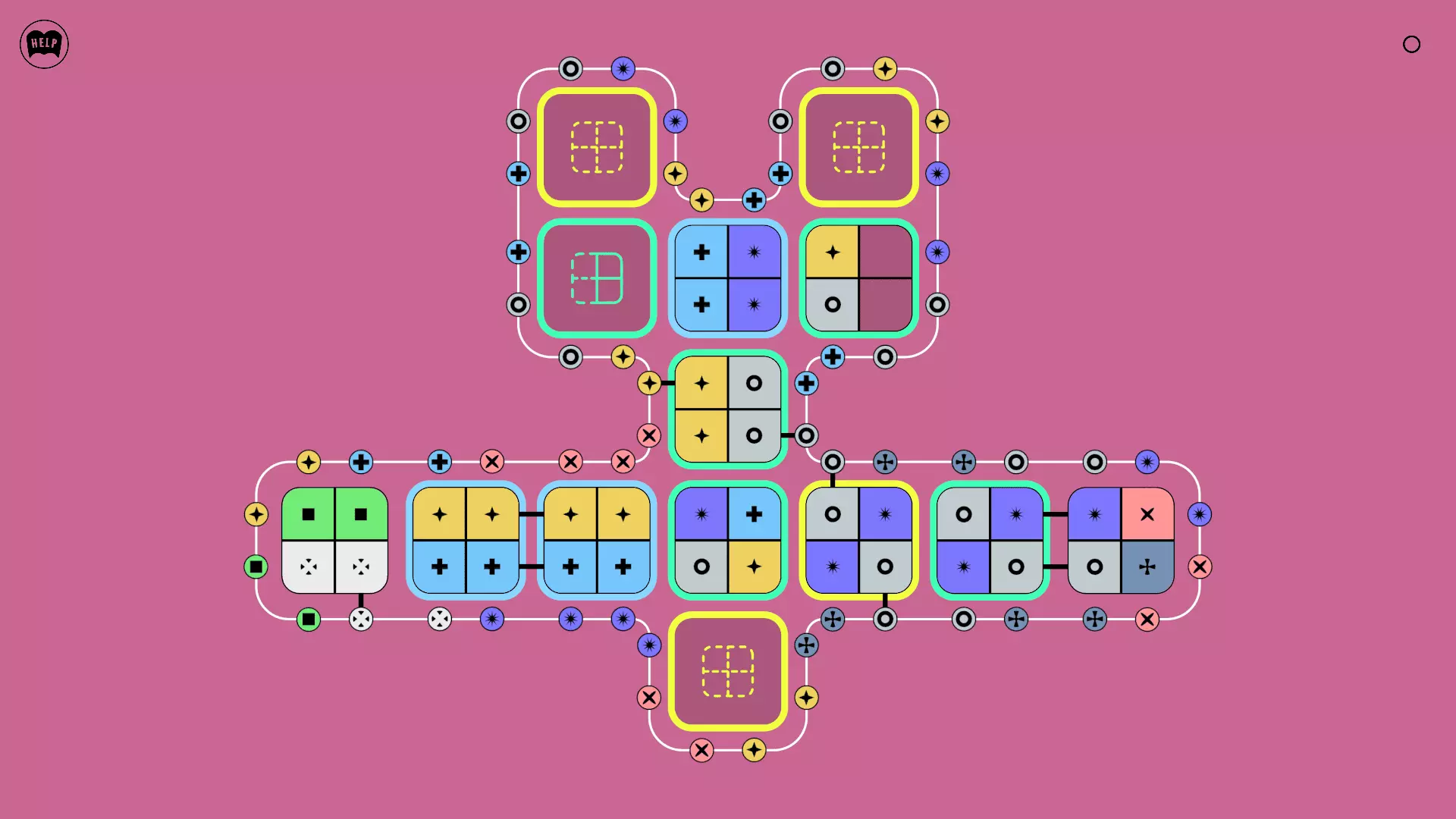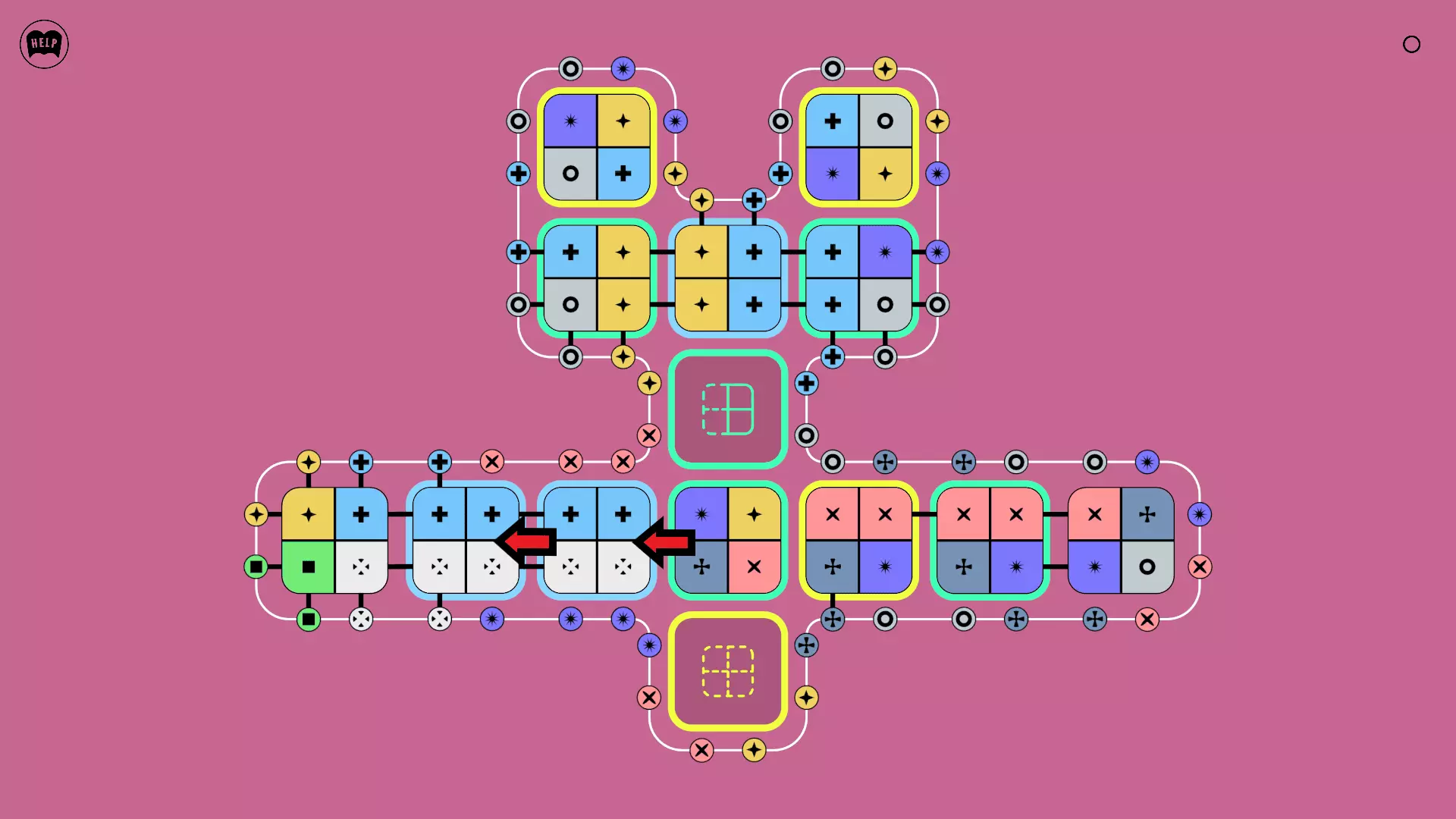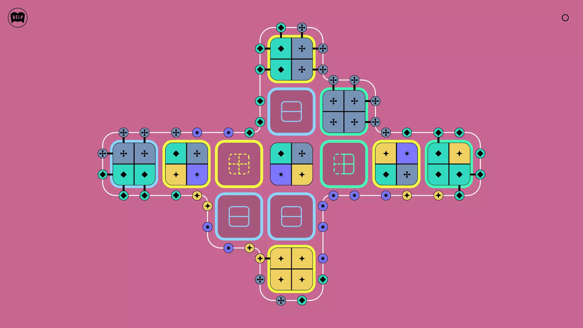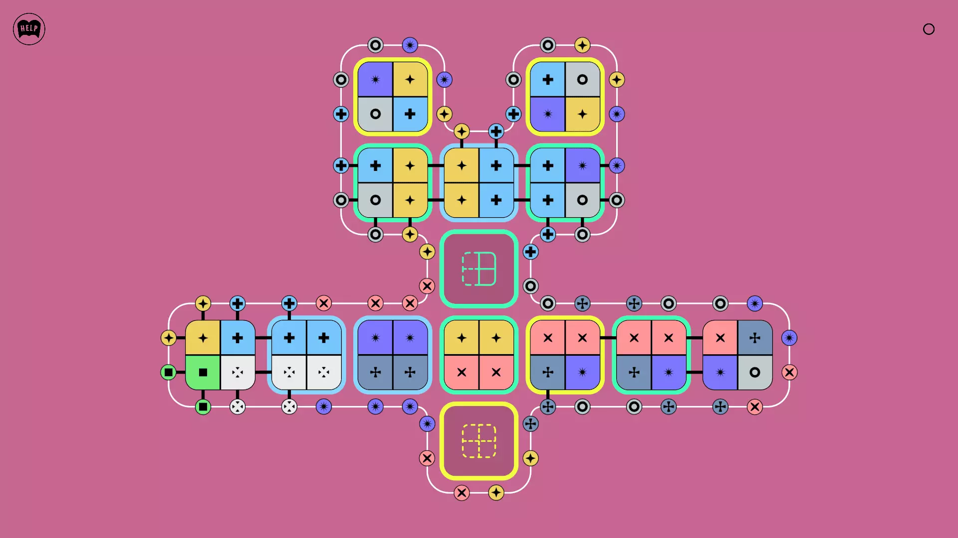 《Lines On Sides》关卡71-84图文攻略 简介 前18个关卡仅提供解决方案,因为解决这些关卡只需旋转或交换方块。 第19关及后续关卡包含步骤说明,解释如何分割、复制和转移方块。 由于Steam的限制,我不得不将本攻略分为两部分。 规则 旋转方块,直到方块上的图标与线条上或相邻方块上的符号匹配。当符号匹配时,它们之间会绘制一条线。 第7关引入了交换被绿线圈住的方块的功能。第14关新增了无法旋转或移动的方块,这类方块外有粗黑线环绕。 第19关新增了分裂平台,该平台外有蓝色线条环绕。此平台可将方块分裂为两个,或将两个方块合并为一个。